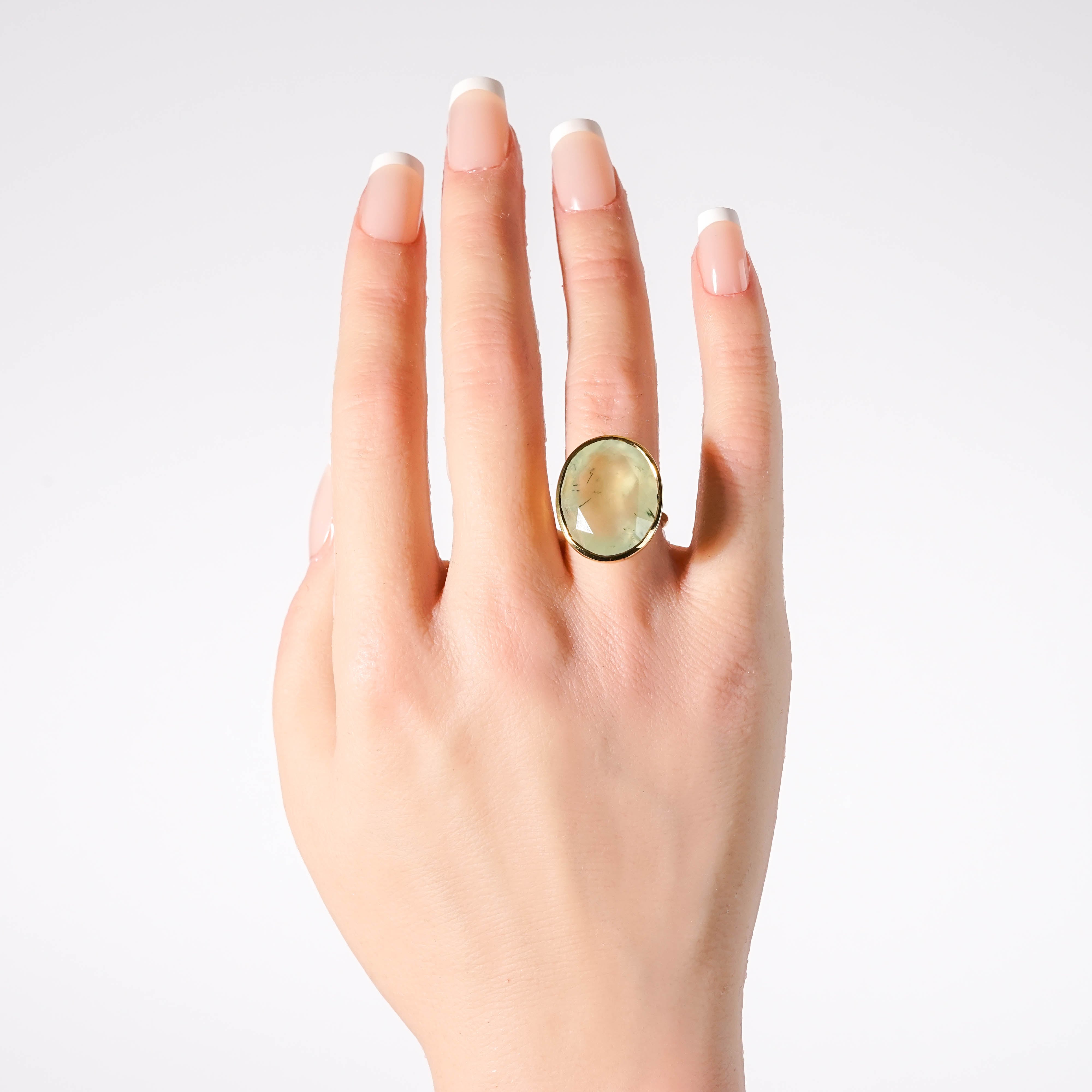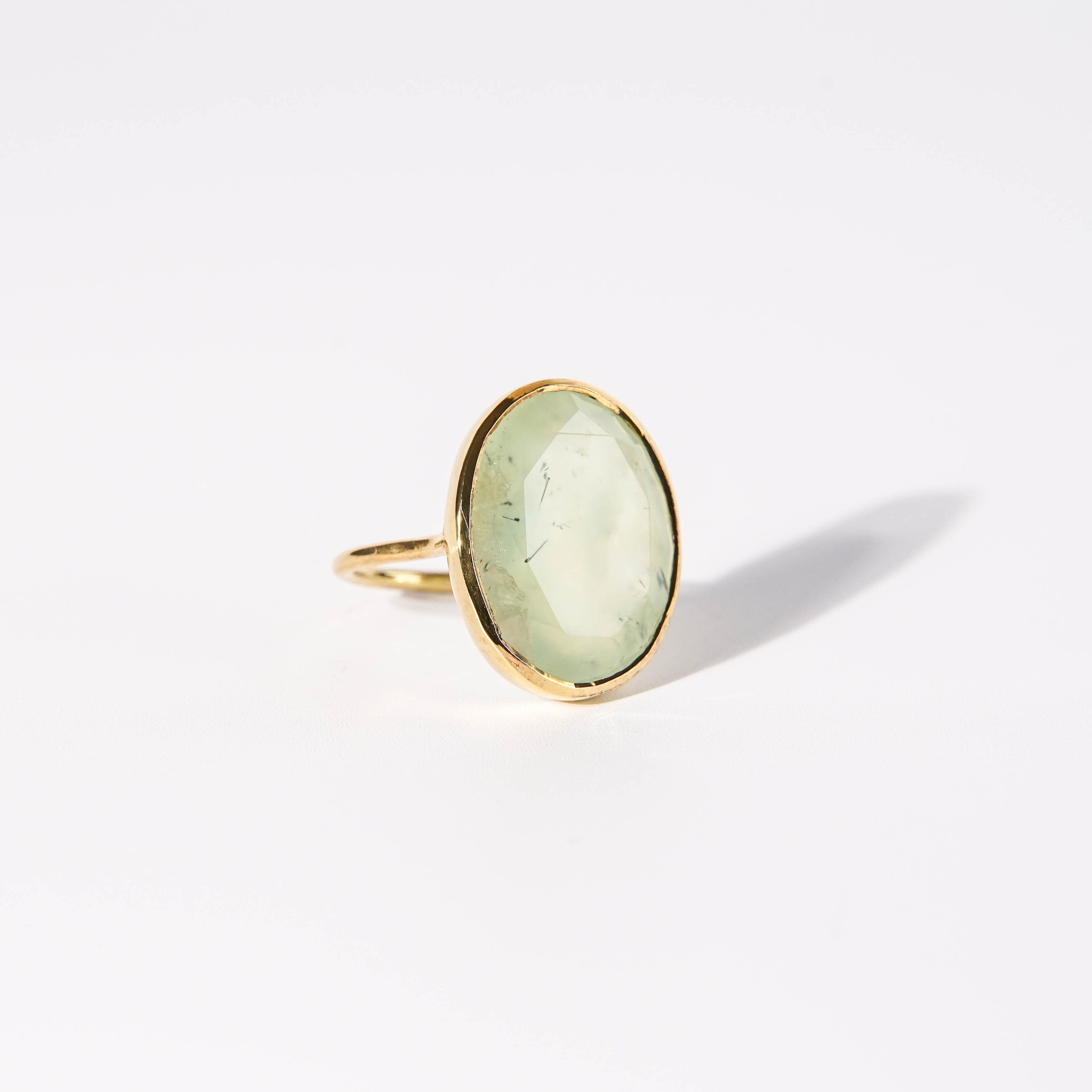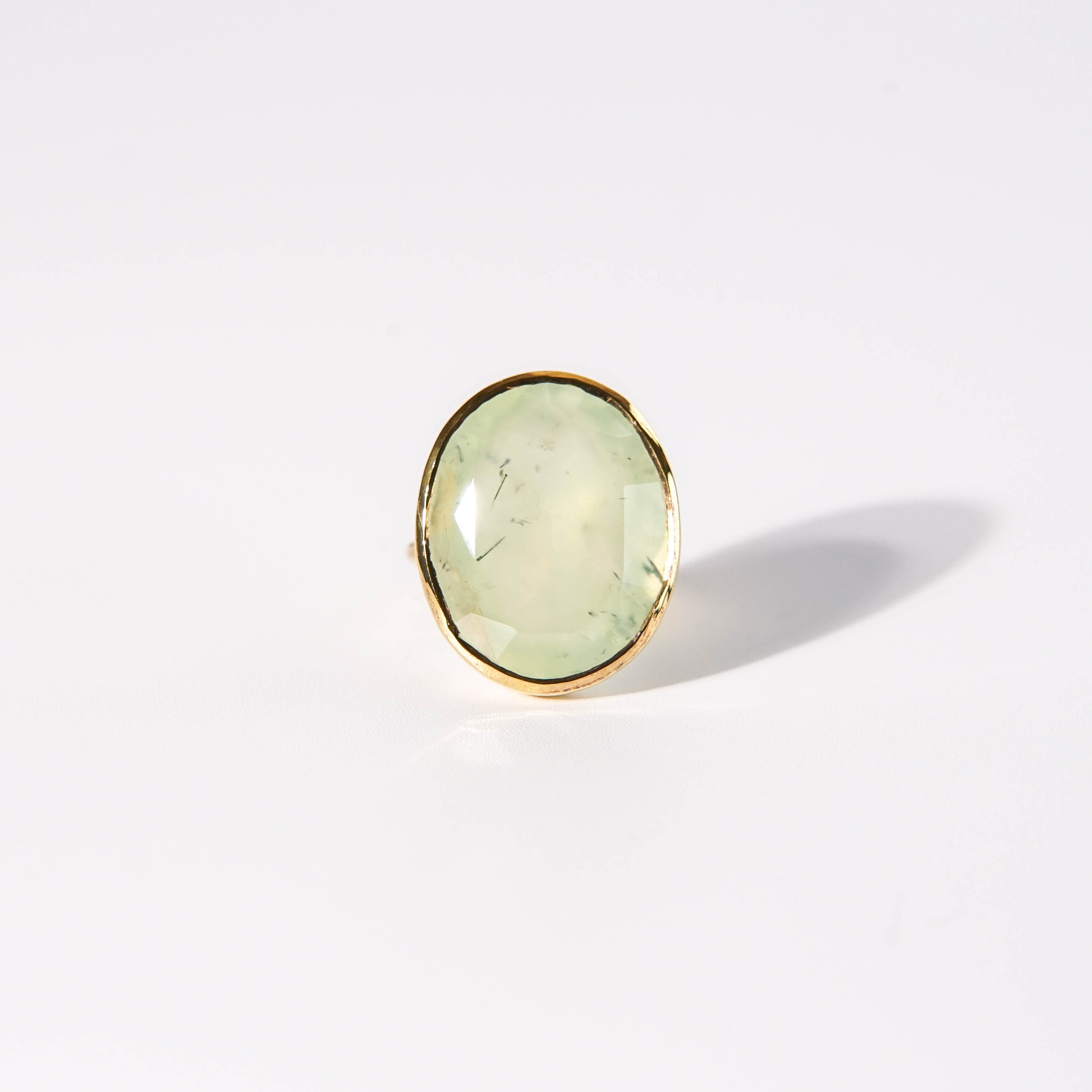 淡く優しい色合いが特徴のプレナイトは、ほんのりインクルージョン(内包物)鉱物感のある天然石ピースでお仕立てしています。手元に自然を感じられるリングです。 【素材】 ヴェルメイユ(SV925+18金マイクロコーティング) 天然石:プレナイト 【サイズ 】 9号 モチーフ:21.6x17.7mm 【石言葉】 安らぎと健康の石 ※ご購入の前に【GUIDE】を必ずご一読お願いいたします。