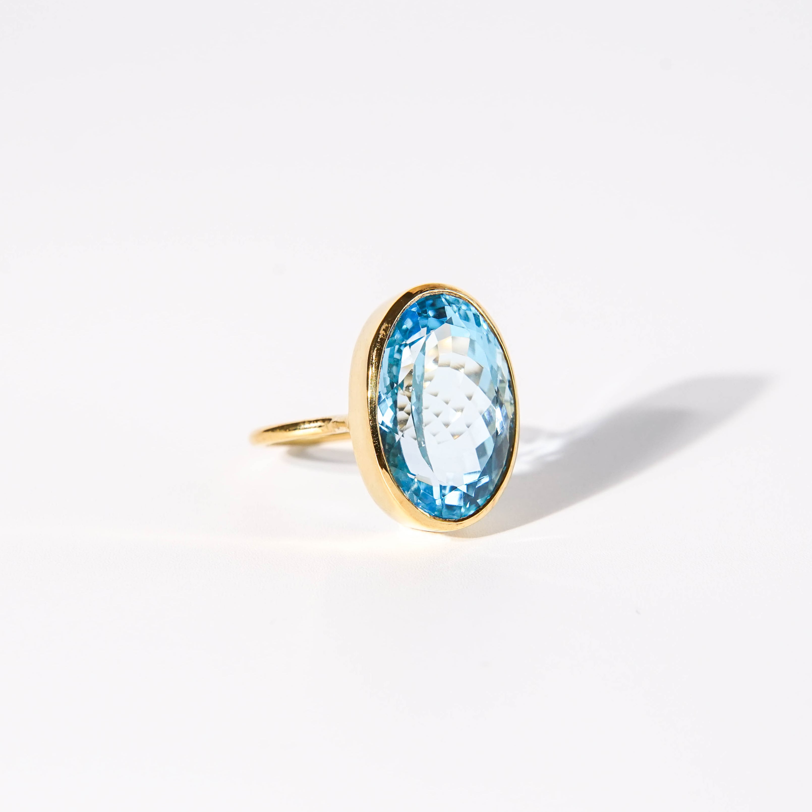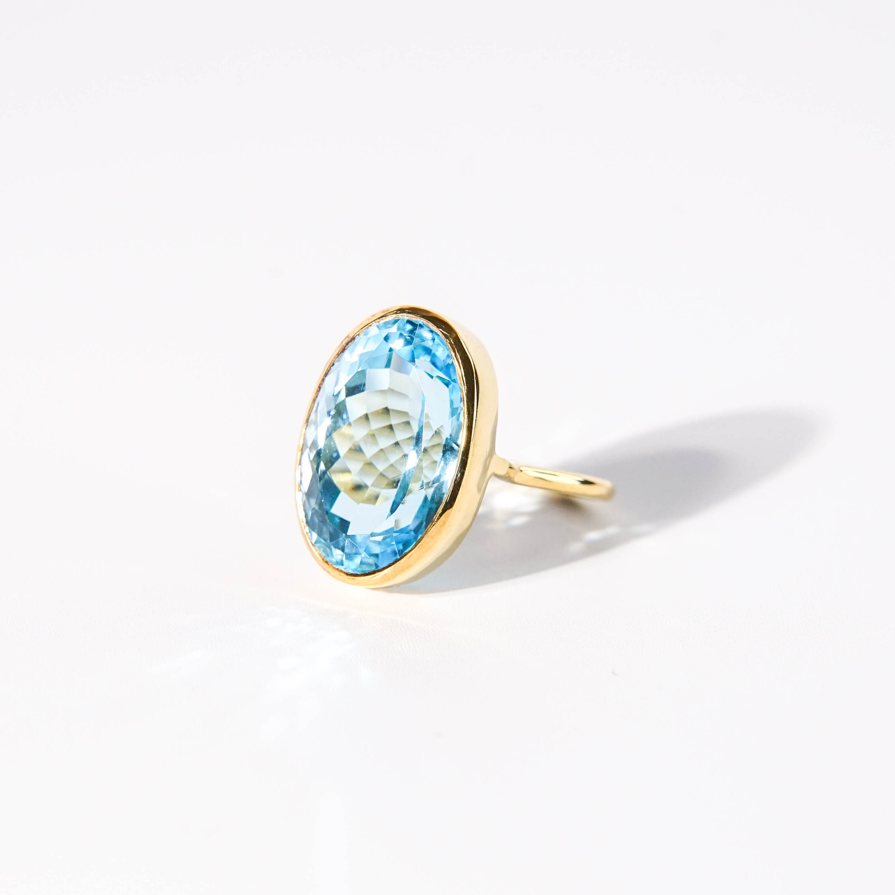 存在感がある大粒のブルートパーズは、優美で透き通るような青色が魅力的で、手元を一気に華やかにしてくれる特別感のある天然石リングです。 【素材】 ヴェルメイユ(SV925+18金マイクロコーティング) 天然石:ブルートパーズ 【サイズ 】 10号 モチーフ:21.4x15.0mm 【石言葉】 自分に必要なものやチャンスを引き寄せる石 ※ご購入の前に【GUIDE】を必ずご一読お願いいたします。