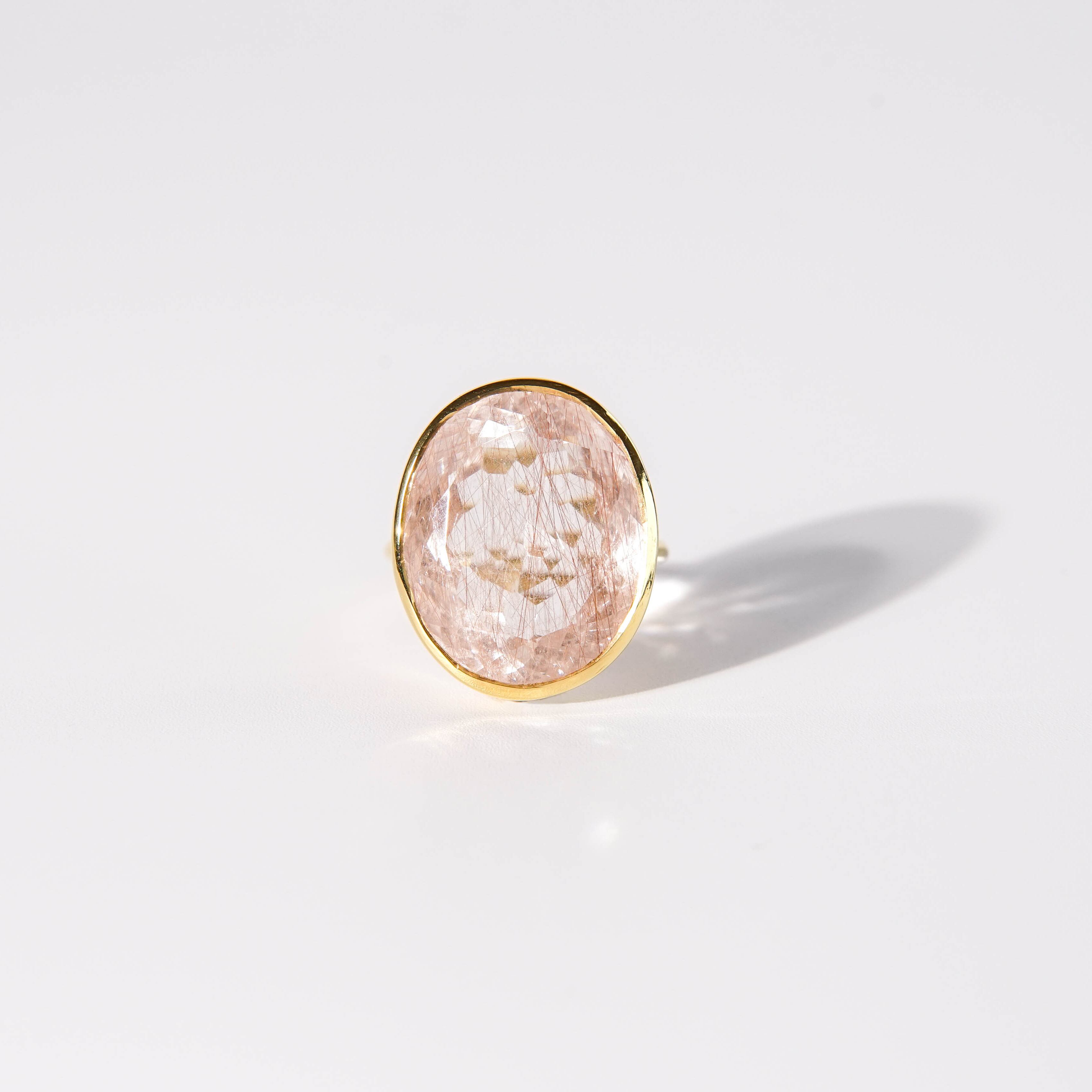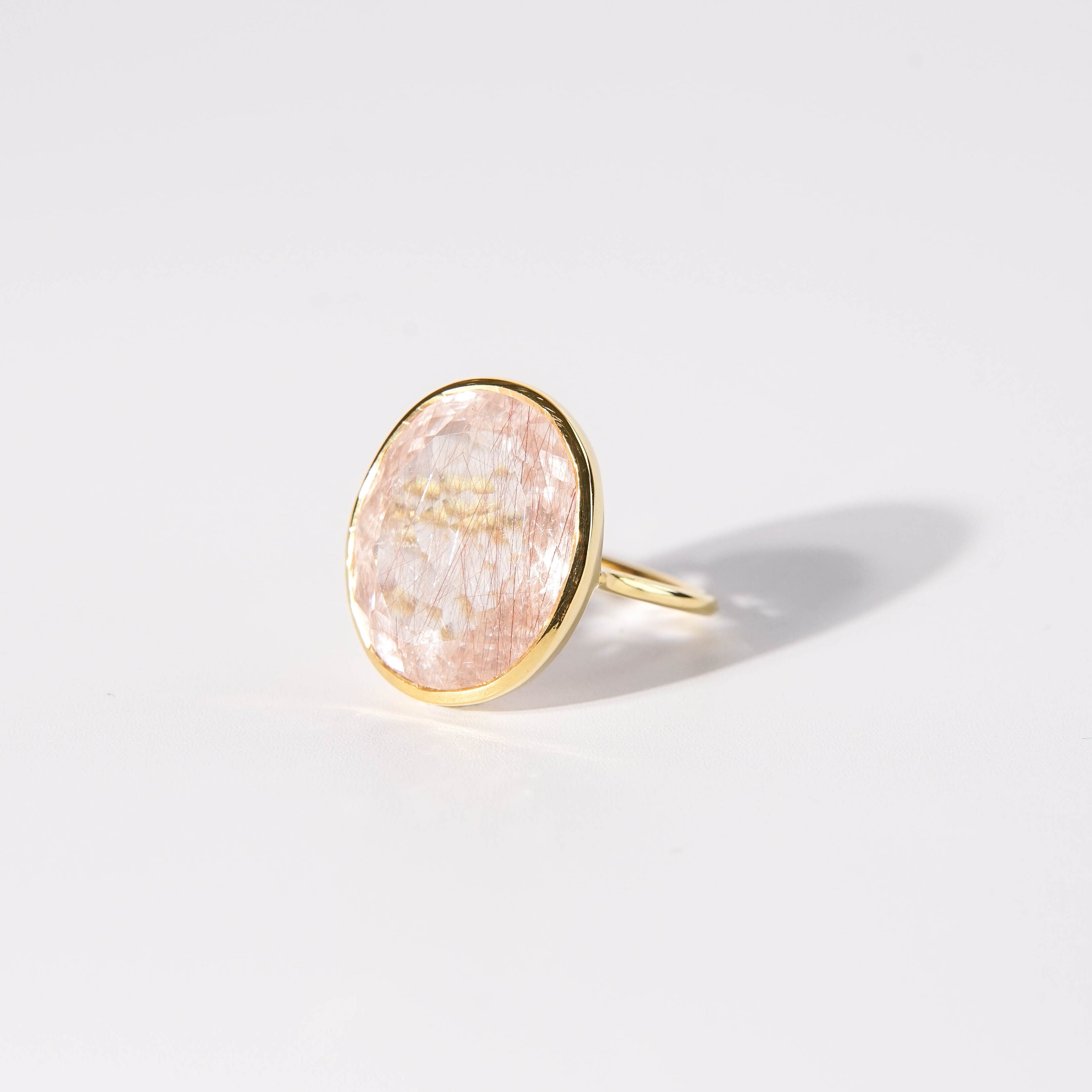 クォーツ(水晶)の中に幾つものルチル(針)が入ったルチルクォーツは、一つ一つ表情が違い、同じものはありません。特にピンク色の淡くて優しい印象のルチルはなかなか出逢えません。出逢ったその表情が、運命の天然石ピースです。 【素材】 天然石:ピンクルチルクォーツ ヴェルメイユ(SV925+18金マイクロコーティング) 【サイズ 】 13号 モチーフ:21.4x17.1mm 【石言葉】 金運と強運を運ぶ石 ※ご購入の前に【GUIDE】を必ずご一読お願いいたします。