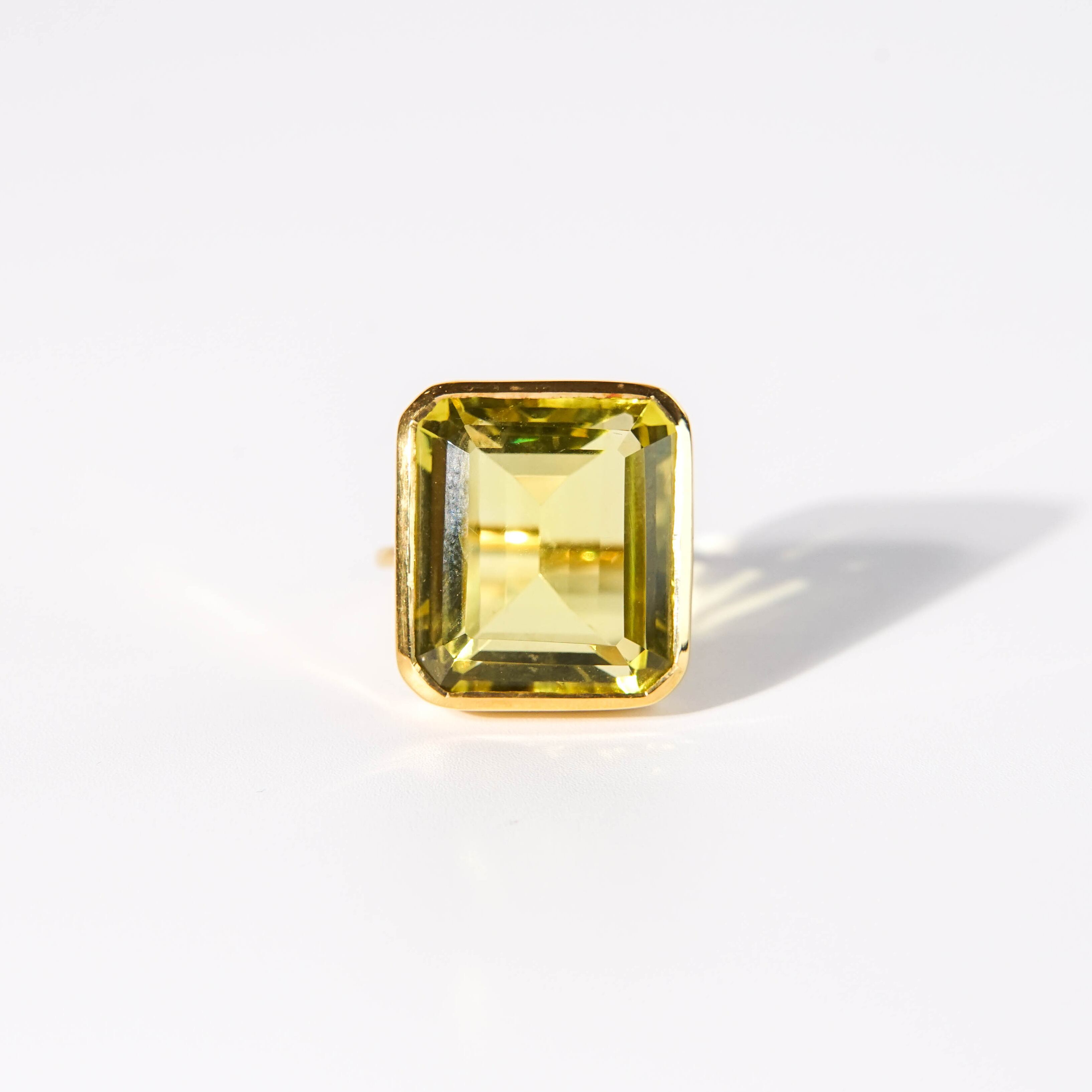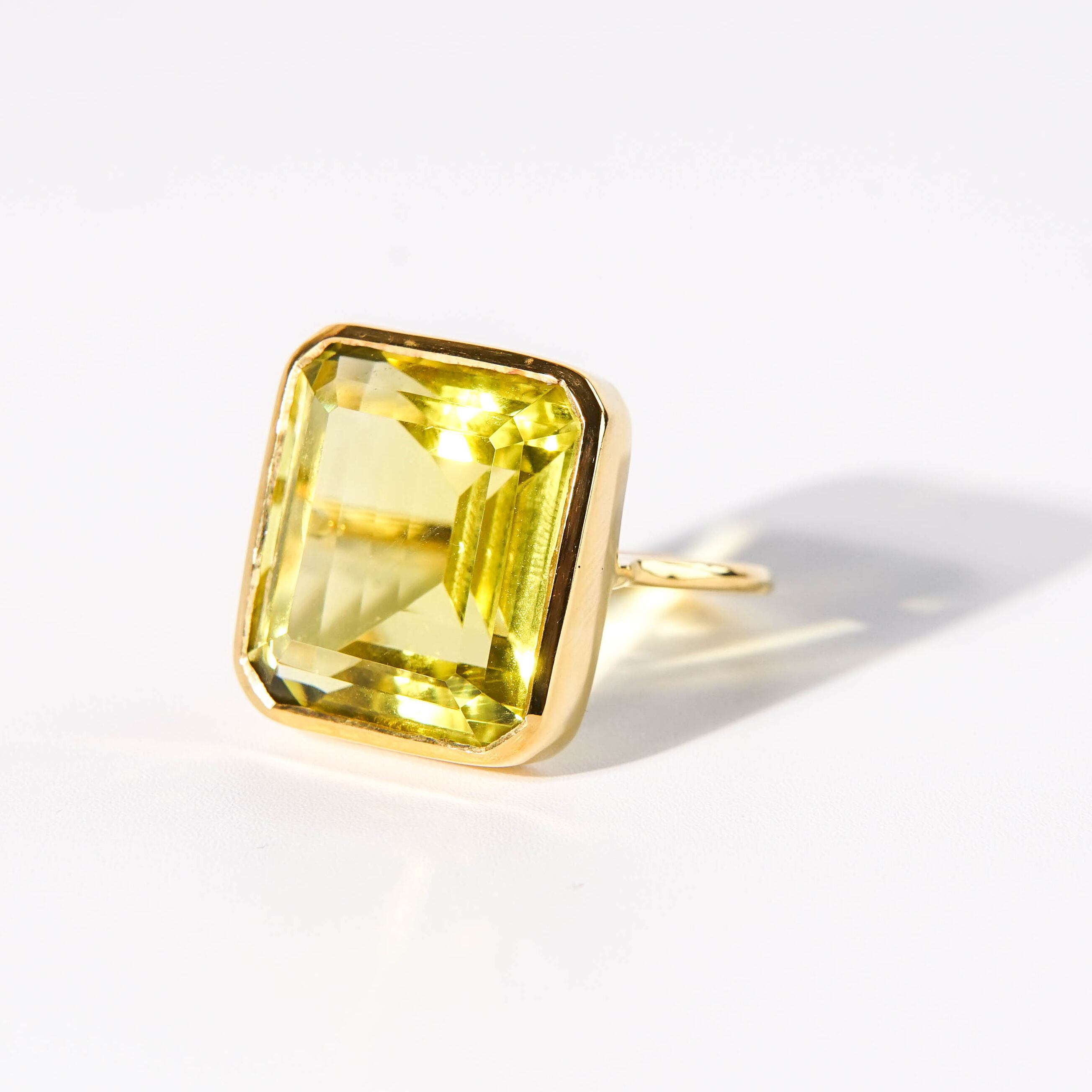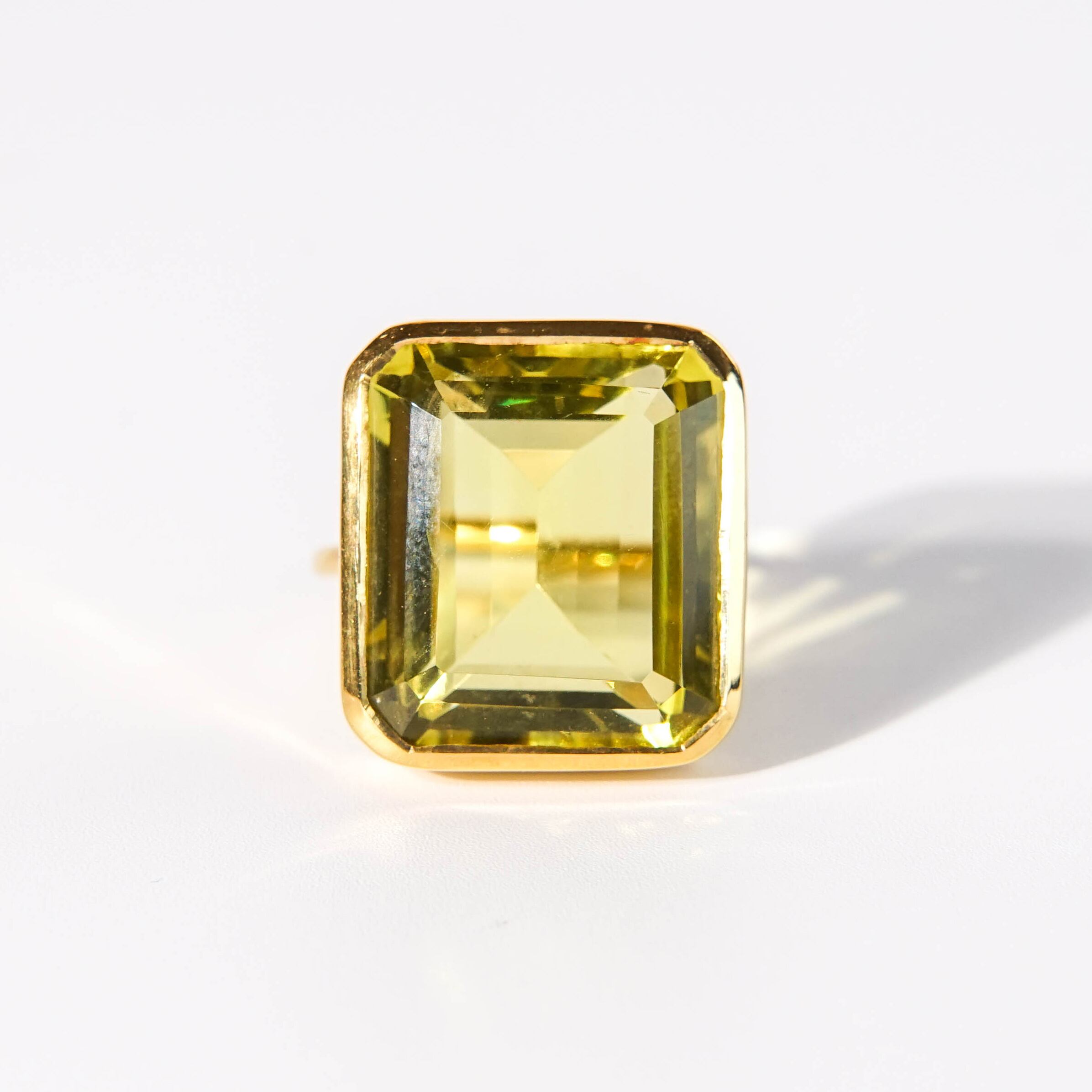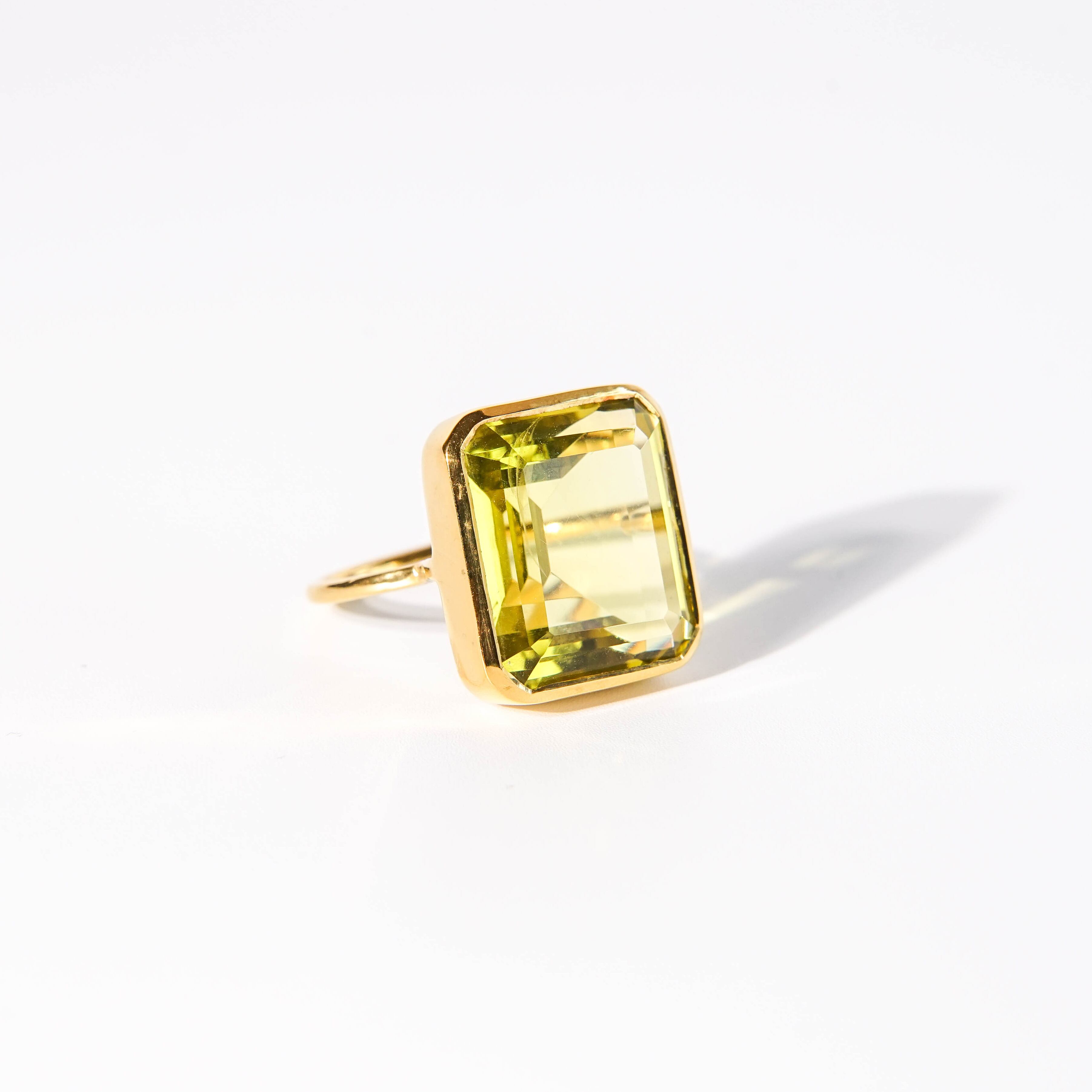 【15号-B】グリーンゴールドレモンクォーツ リング(グラン)