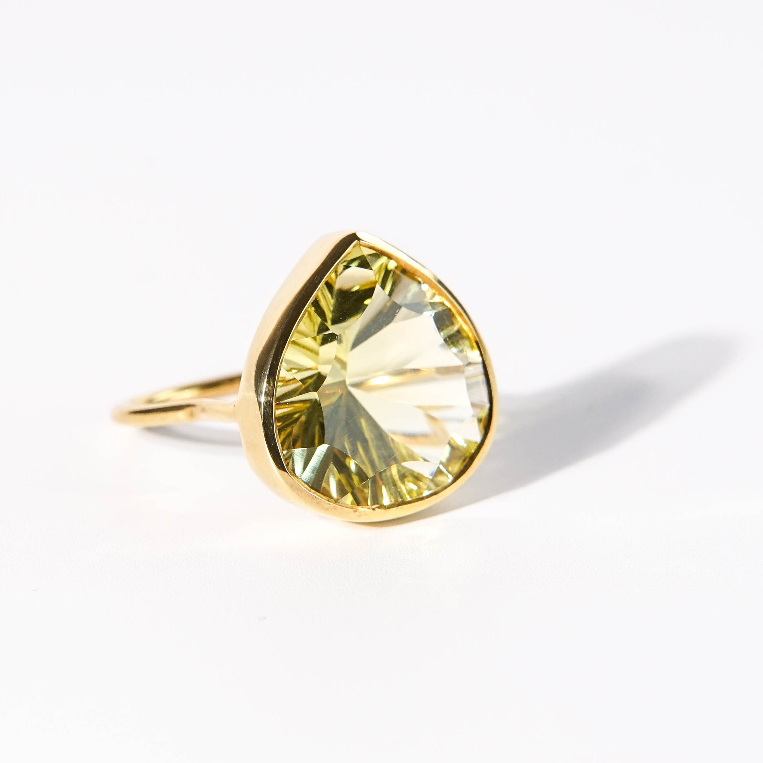 【15号-A】グリーンゴールドレモンクォーツ リング(グラン)