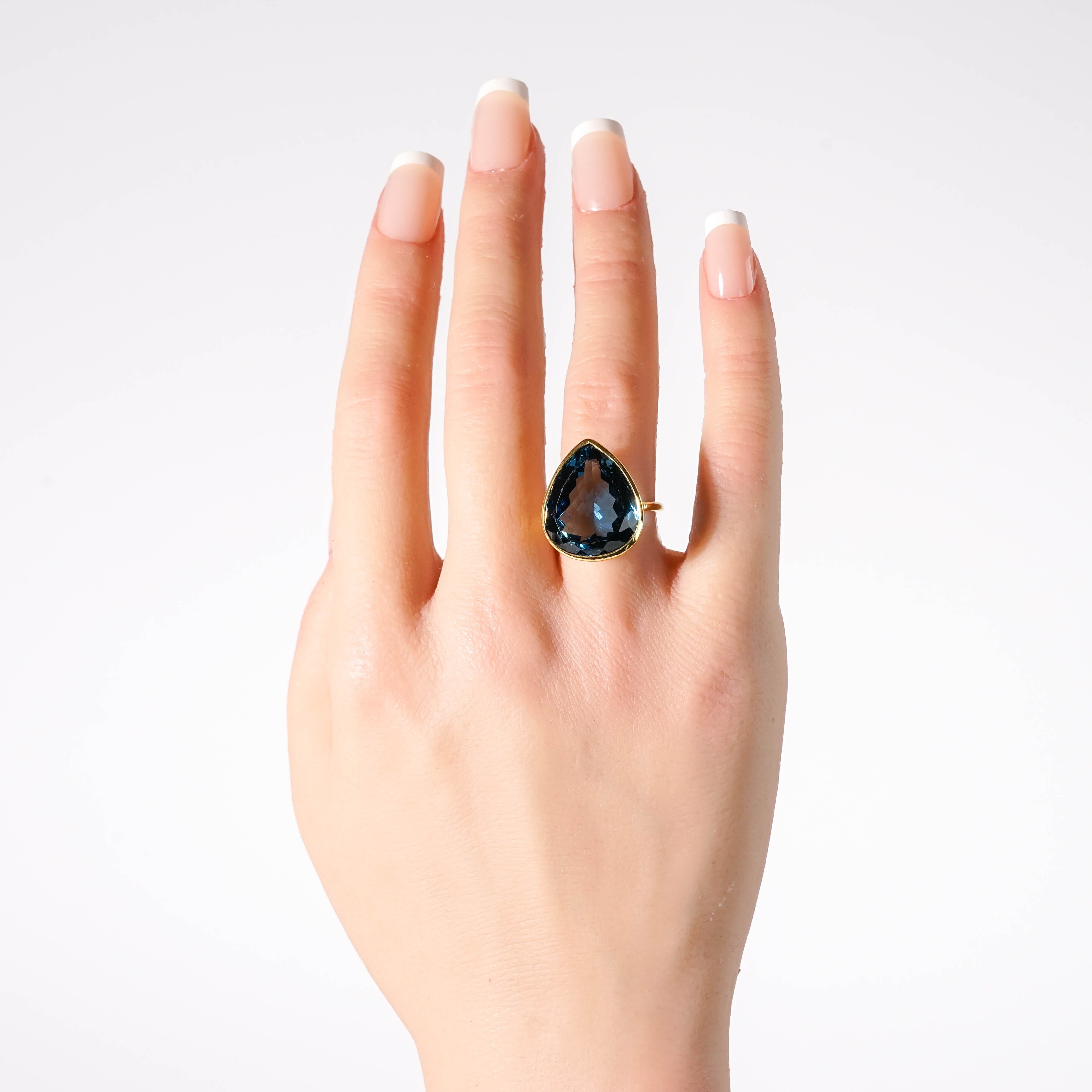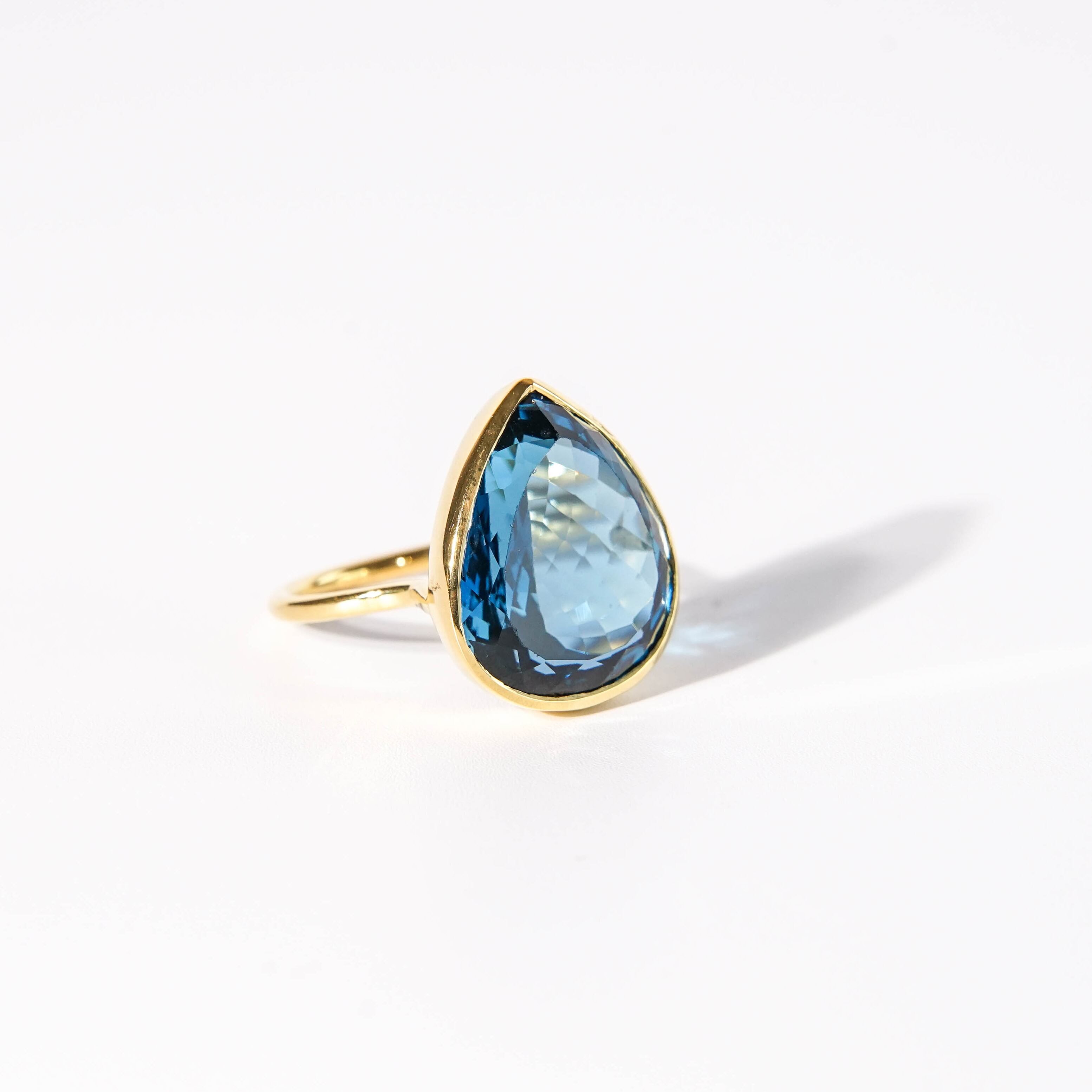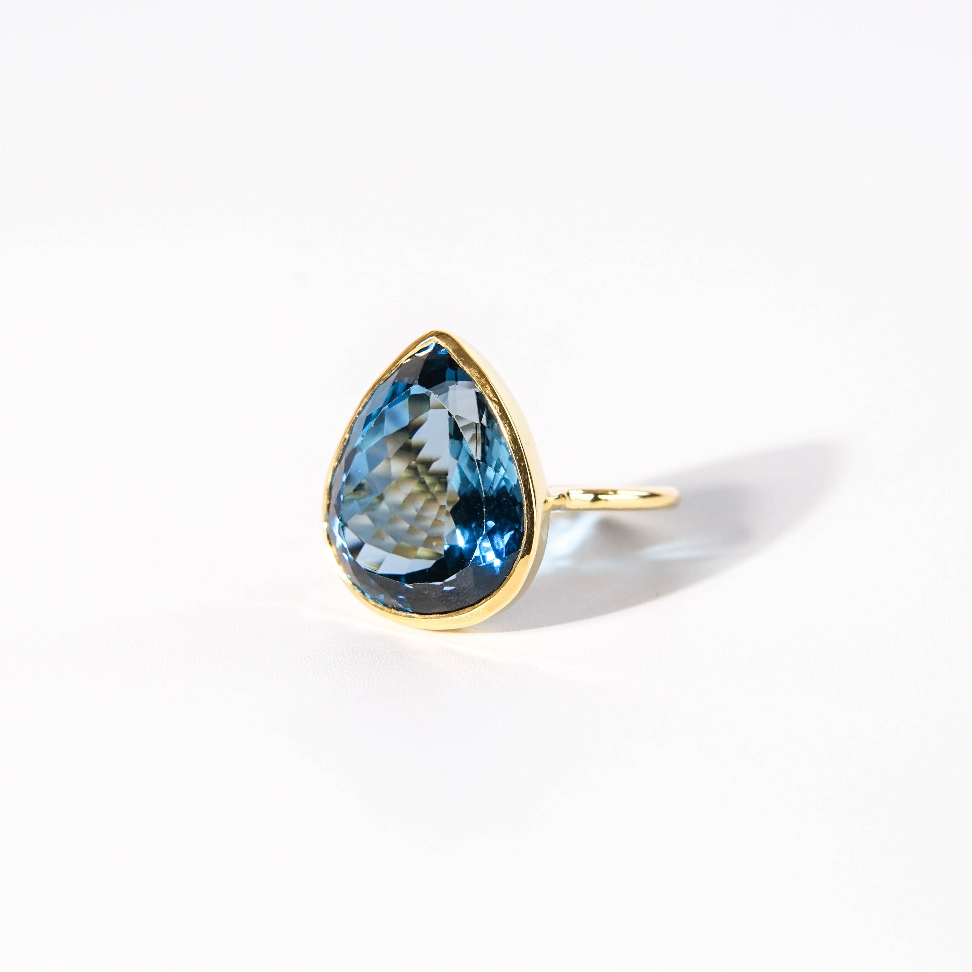 青色トパーズの中で最高峰とされロンドンブルートパーズは、しっとりとした深い青ながらも、透明感が高く、上品なきらめきを感じられる天然石ピース。他ではなかなか見られない、贅沢な一品に仕上がっています。 【素材】 ヴェルメイユ(SV925+18金マイクロコーティング) 天然石:ロンドンブルートパーズ 【サイズ 】 12号 モチーフ:20.0X17.0mm 【石言葉】 誠実、知性の石 ※ご購入の前に【GUIDE】を必ずご一読お願いいたします。