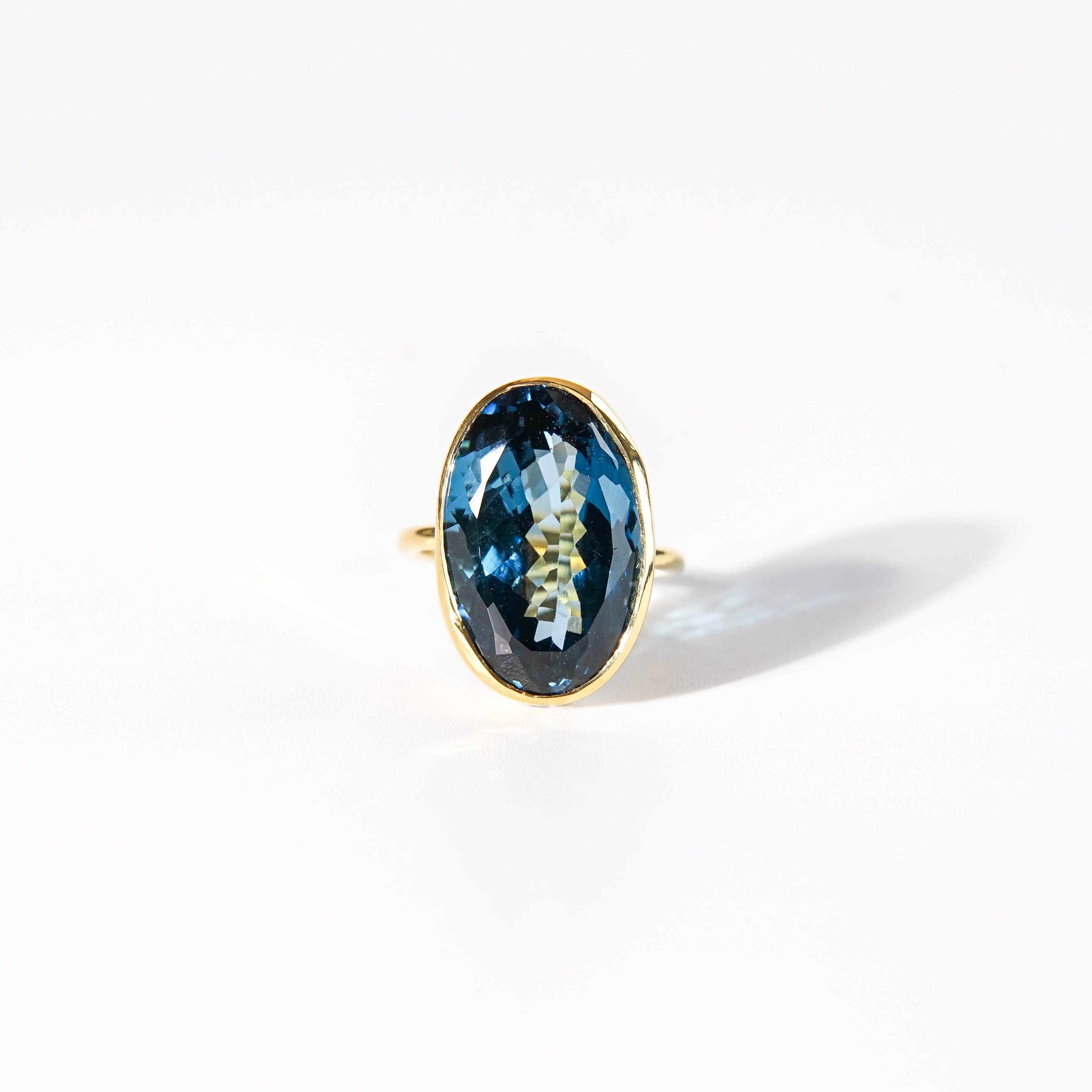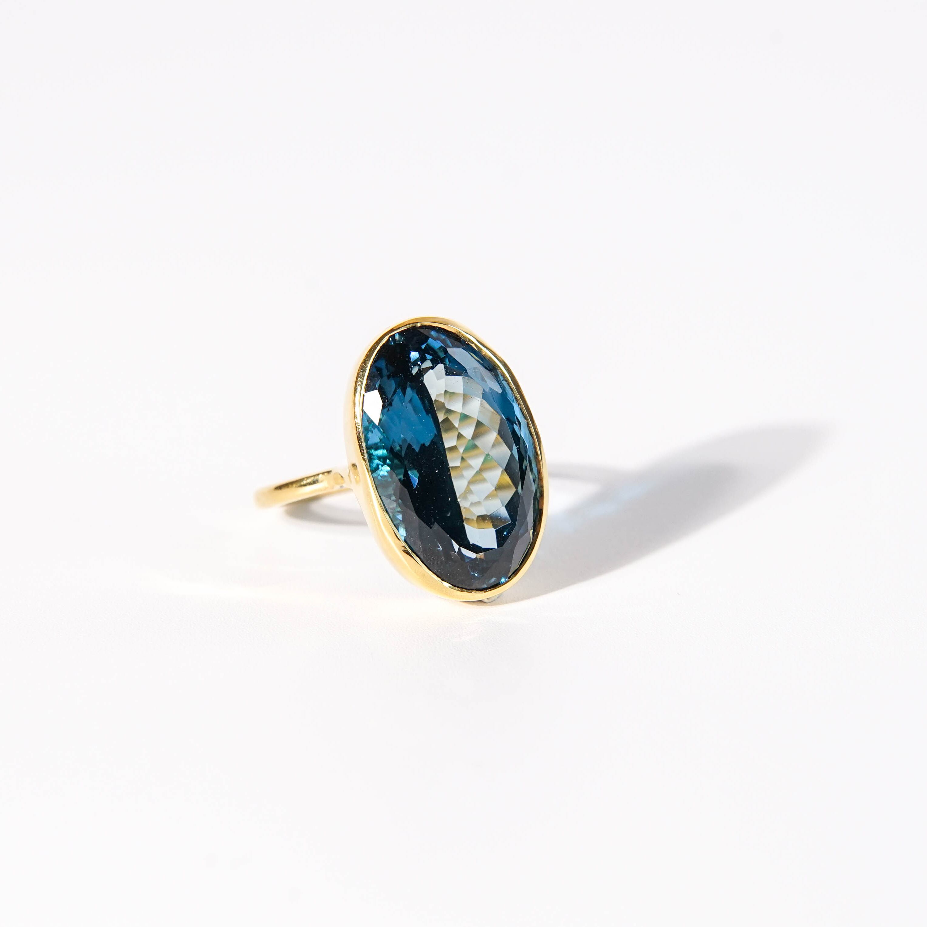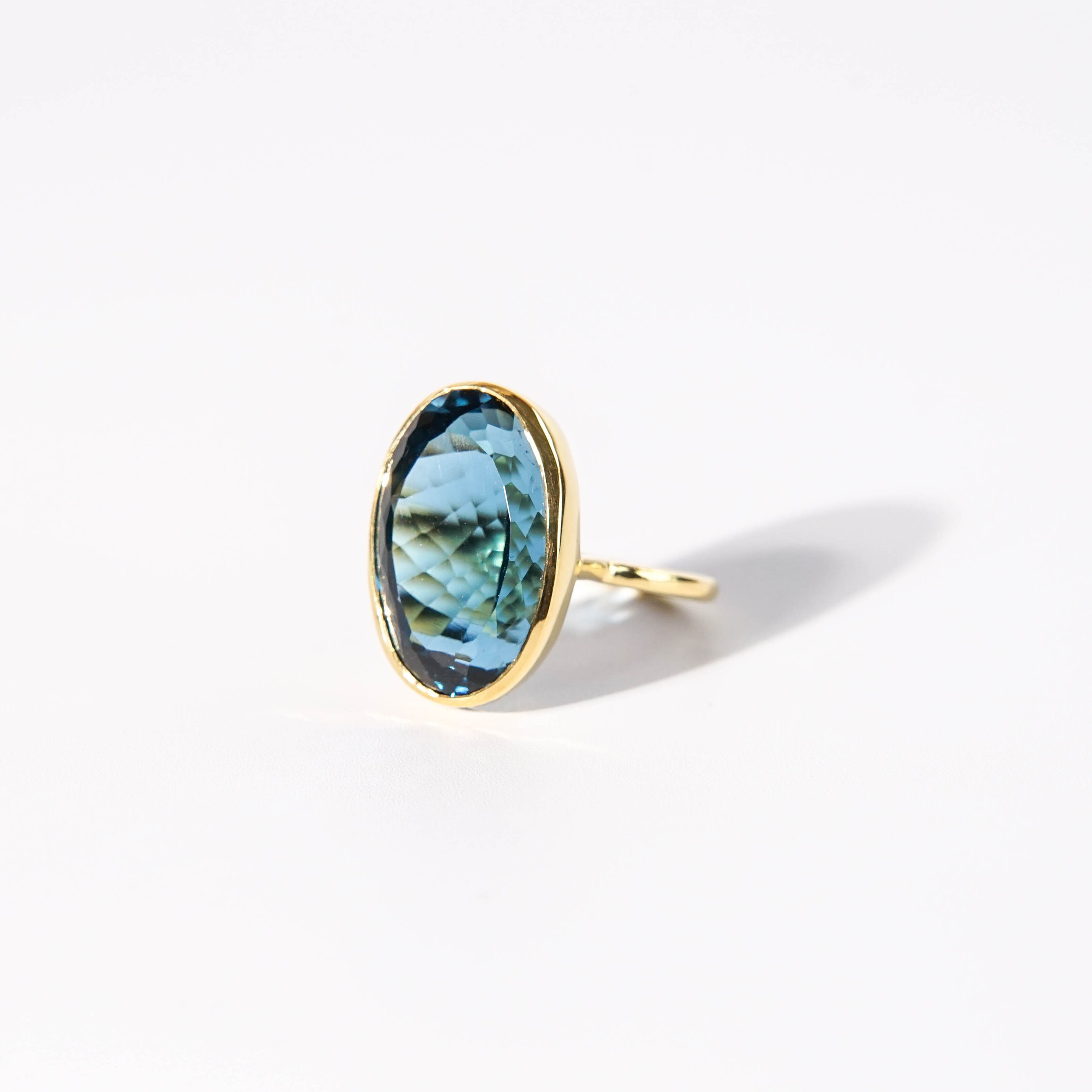 青色トパーズの中で最高峰とされロンドンブルートパーズは、しっとりとした深い青ながらも、透明感が高く、上品なきらめきを感じられる天然石ピース。他ではなかなか見られない、贅沢な一品に仕上がっています。 【素材】 ヴェルメイユ(SV925+18金マイクロコーティング) 天然石:ロンドンブルートパーズ 【サイズ 】 11号 モチーフ:20.8X14.0mm 【石言葉】 誠実、知性の石 ※ご購入の前に【GUIDE】を必ずご一読お願いいたします。
