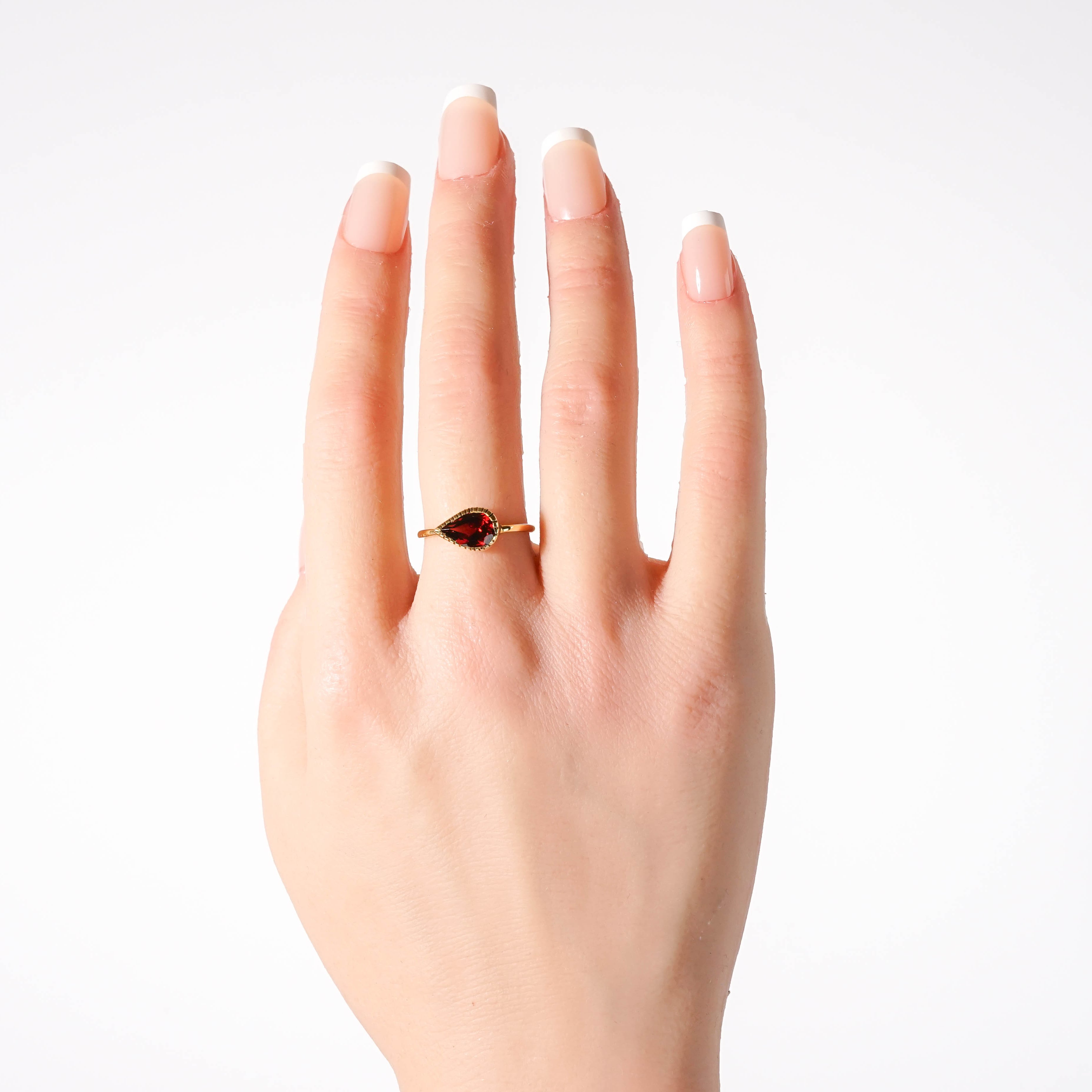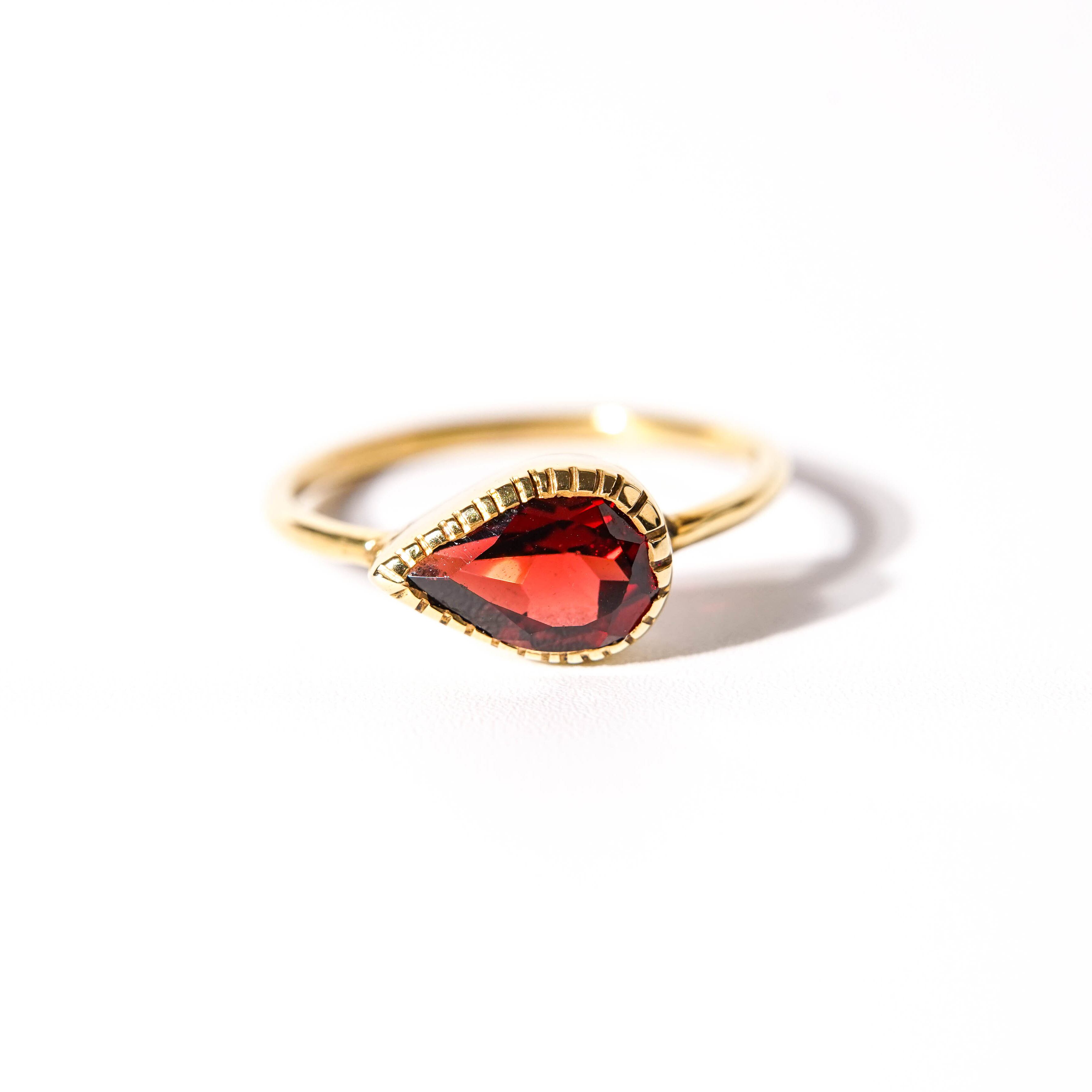 【素材】 ヴェルメイユ(SV925+18金マイクロコーティング) 天然石:ガーネット 【サイズ 】 13号 モチーフ:10.6x7.2mm 【石言葉】 変わらぬ愛情と深い絆をもたらす実りの象徴、信頼と愛情の石 ※ご購入の前に【GUIDE】を必ずご一読お願いいたします。