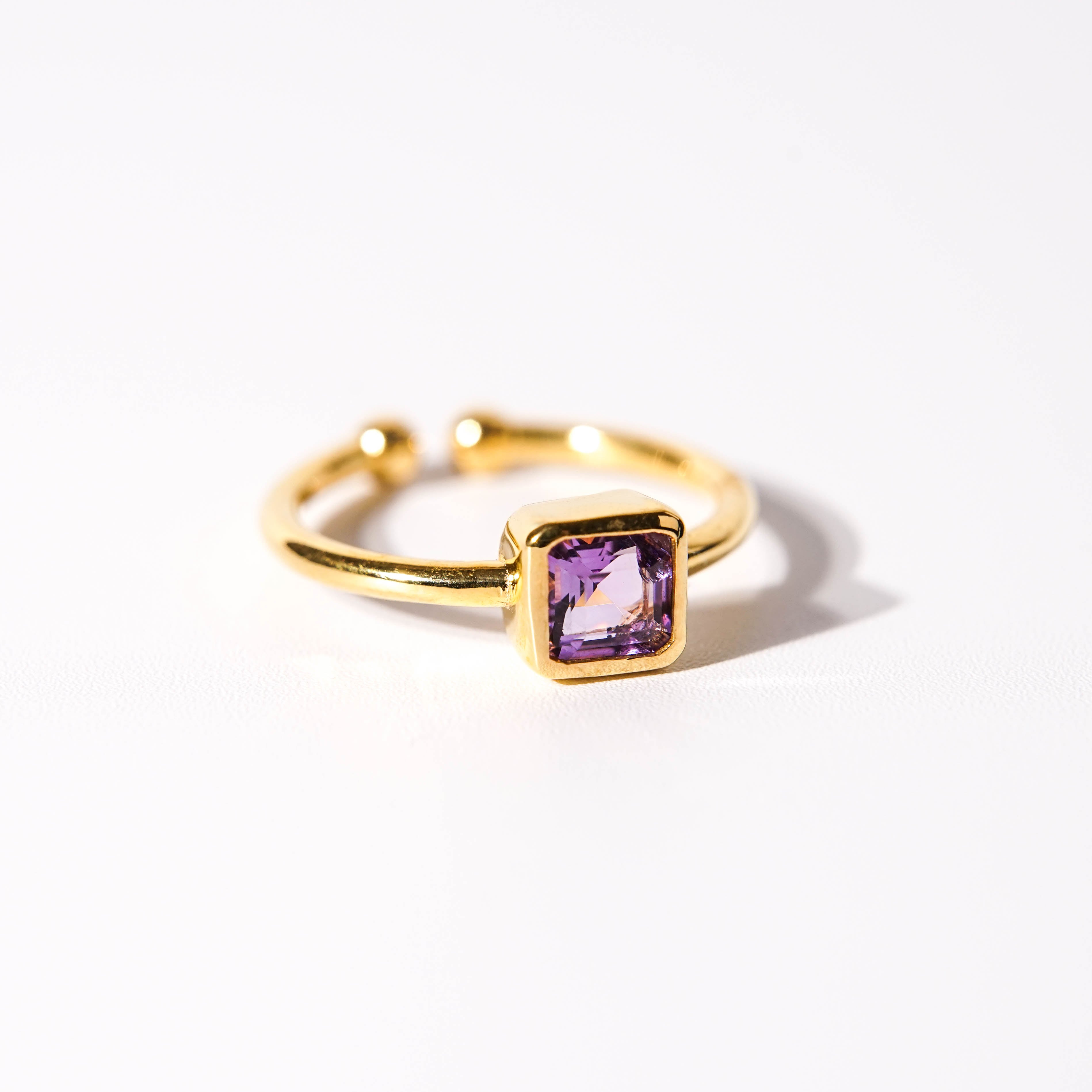 【素材】 18kgf(SV925+18金ゴールドフィルド) 天然石:アメシスト 【サイズ 】 11号~(+2号まで可) モチーフ:6.5x6.5mm 【石言葉】 隠れた魅力を引き出し、開花させてくれる魅力開花の石 ※ご購入の前に【GUIDE】を必ずご一読お願いいたします。