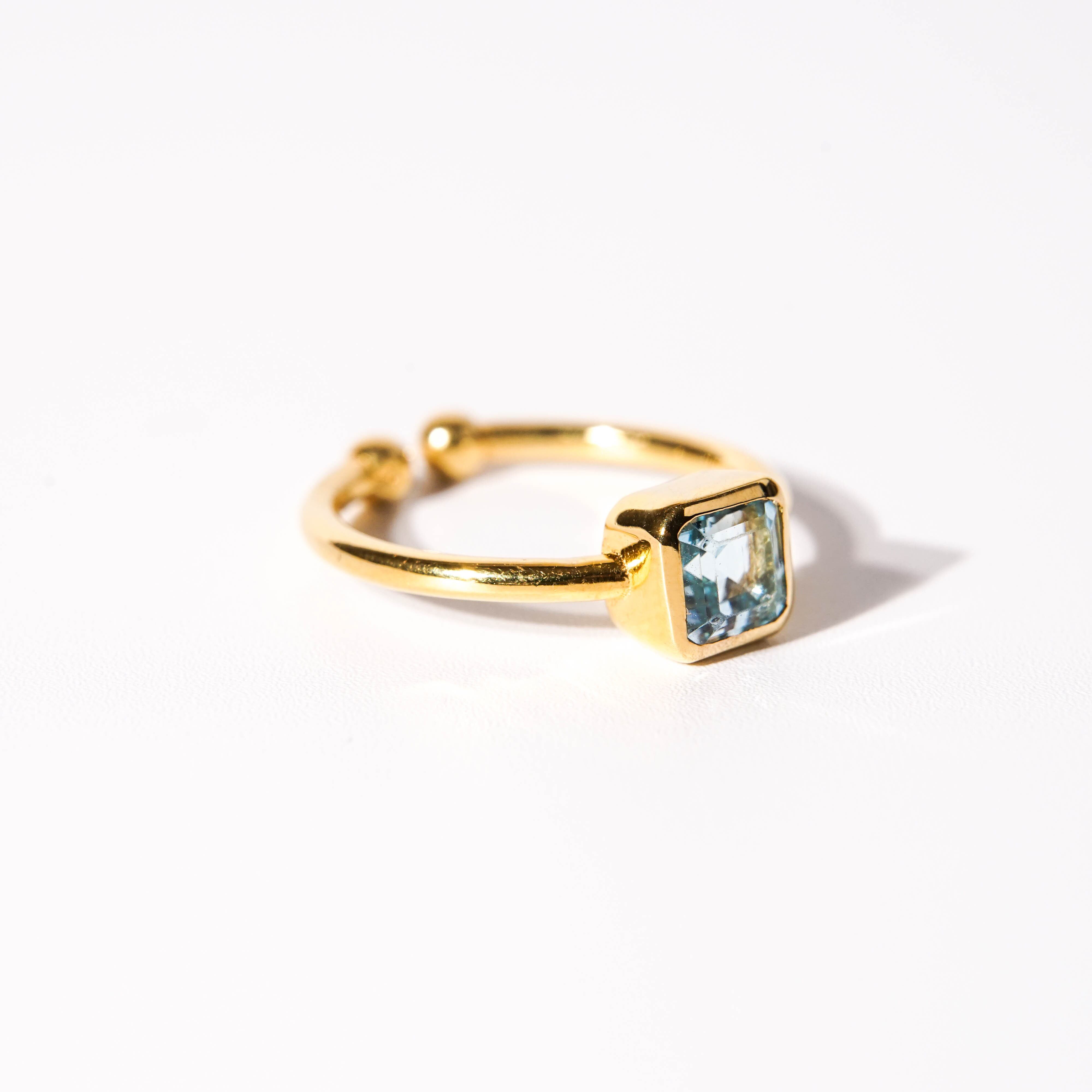 【素材】 18kgf(SV925+18金ゴールドフィルド) 天然石:ブルートパーズ 【サイズ 】 11号~(+2号まで可) モチーフ:6.5x6.5mm 【石言葉】 自分に必要なものやチャンスを引き寄せる石 ※ご購入の前に【GUIDE】を必ずご一読お願いいたします。