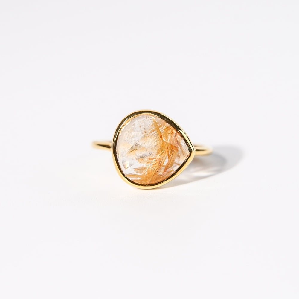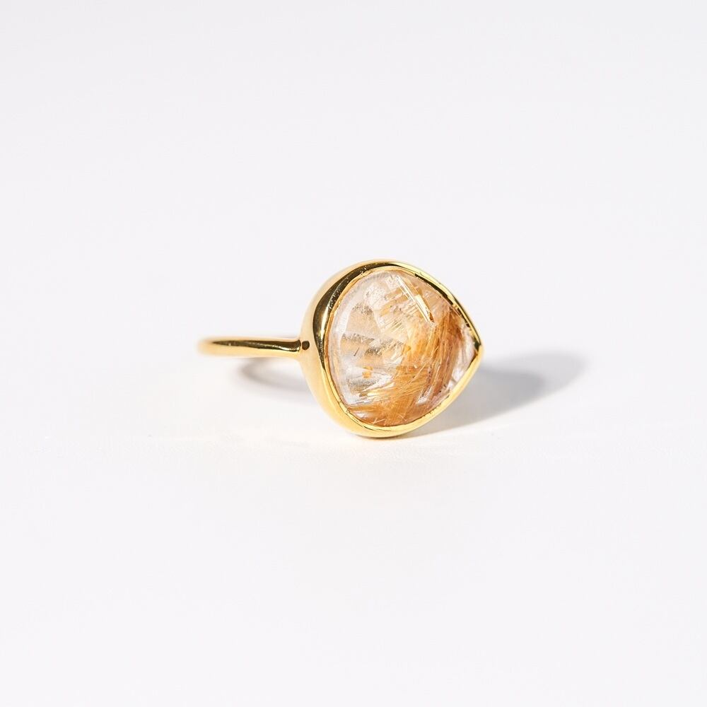 【素材】 ヴェルメイユ(SV925+18金マイクロコーティング) 天然石:ルチルクォーツ 【サイズ 】 11号 モチーフ:12.5x11.9mm 【石言葉】 金運と強運を運ぶ石 ※ご購入の前に【GUIDE】を必ずご一読お願いいたします。