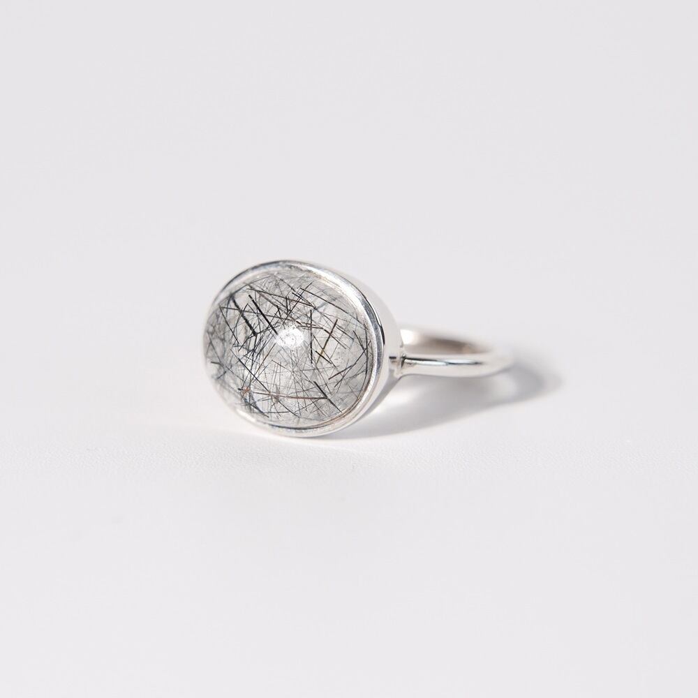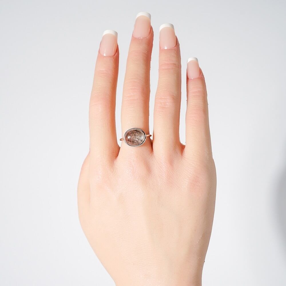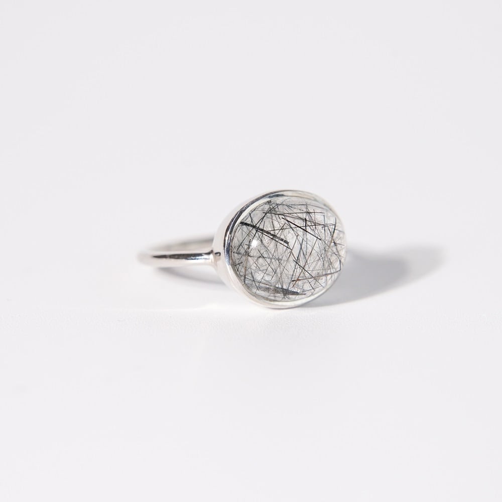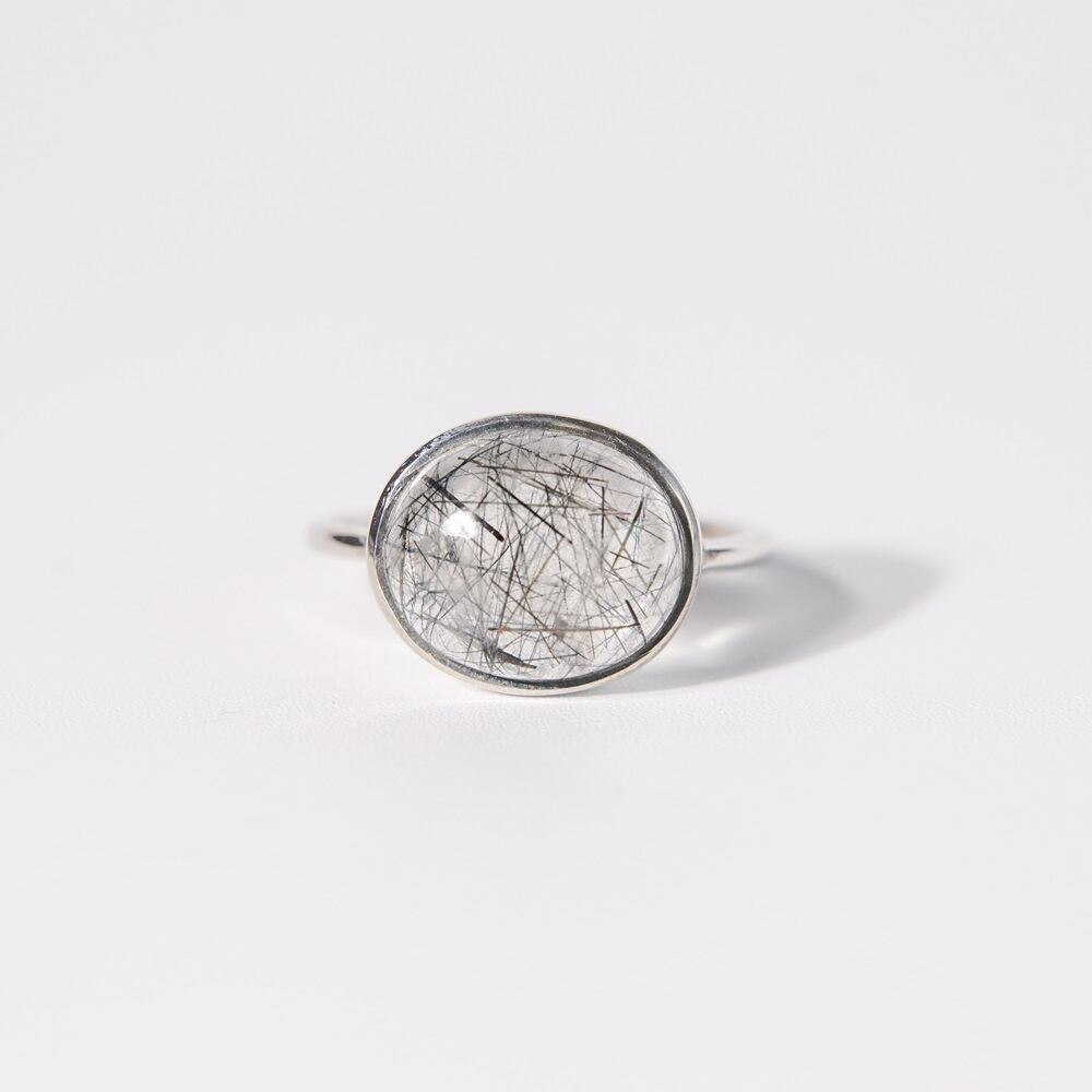 【13号-A】ブラックルチルクォーツ リング(SV)