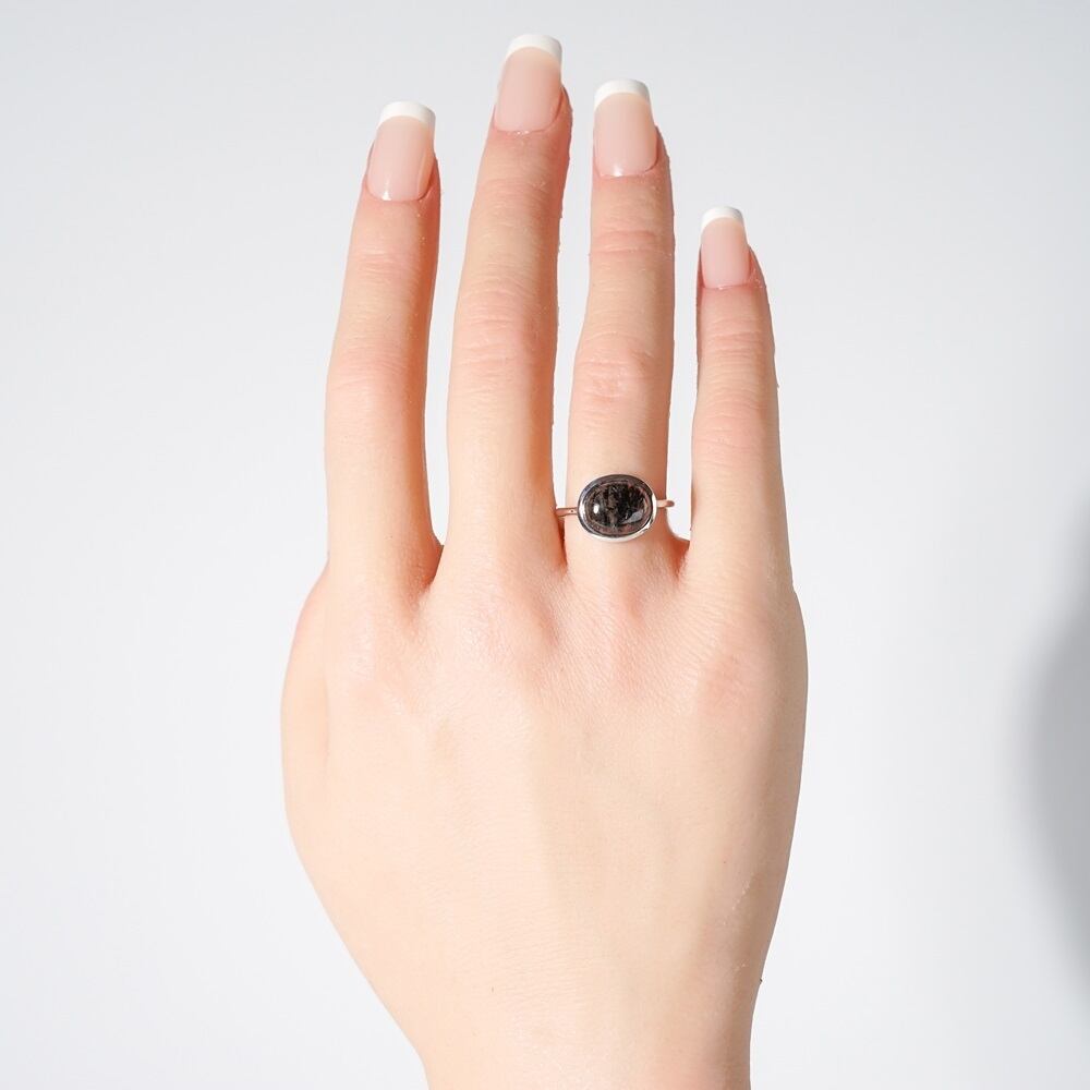 【10号】ブラックルチルクォーツ リング(SV)