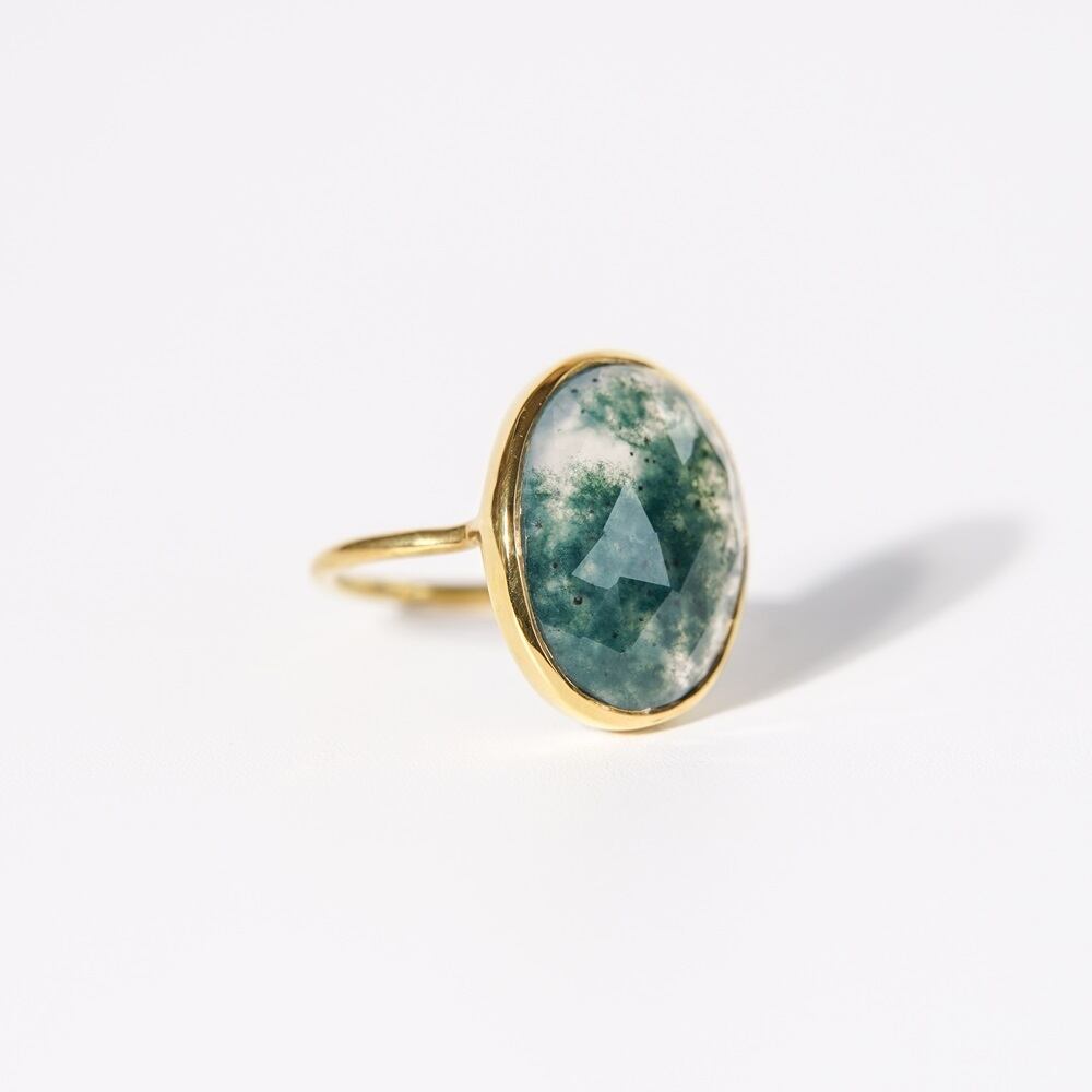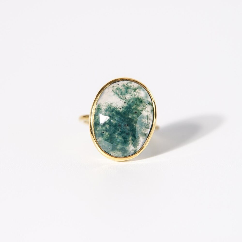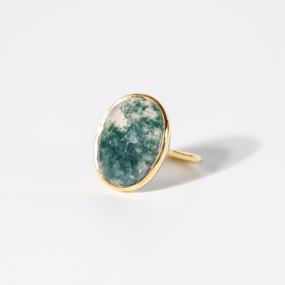 【素材】 ヴェルメイユ(SV925+18金マイクロコーティング) 天然石:モスアゲート 【サイズ 】 9号 モチーフ:18x14.3mm 【石言葉】 癒しの石 ※ご購入の前に【GUIDE】を必ずご一読お願いいたします。