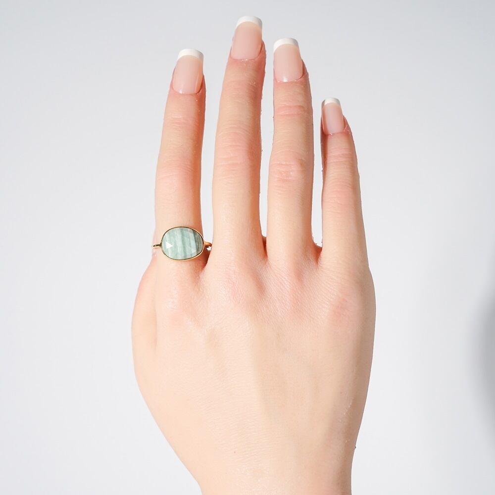 【16号】グリーンストライプオパール リング