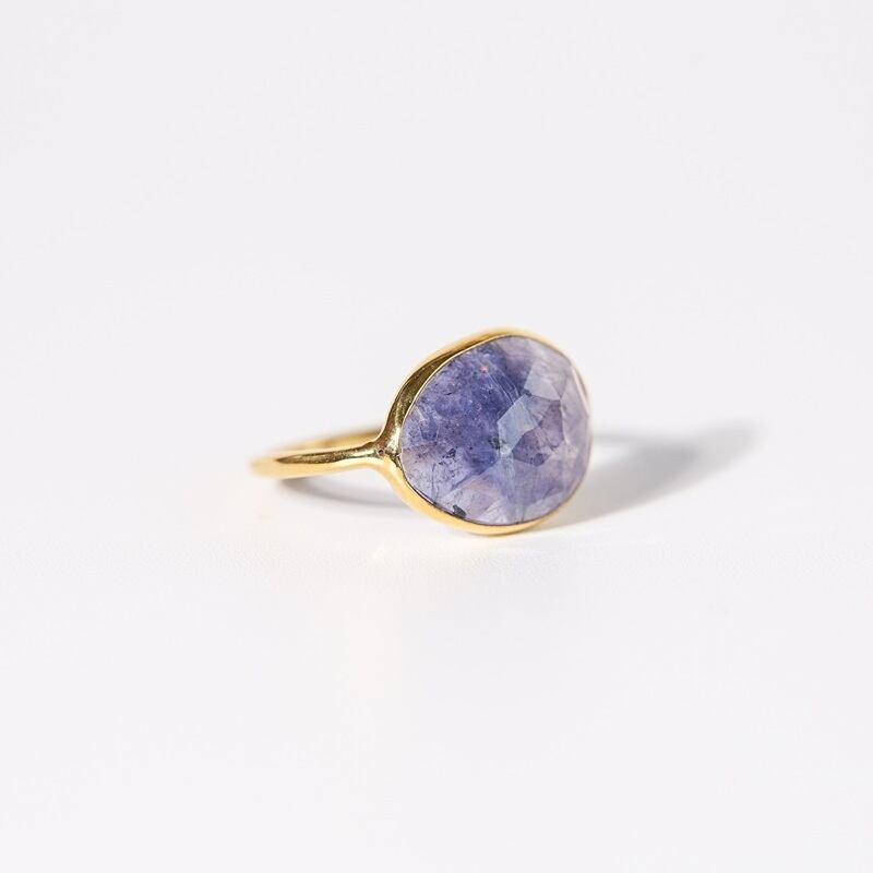 【素材】 ヴェルメイユ(SV925+18金マイクロコーティング) 天然石:アイオライト 【サイズ 】 8号 モチーフ:13.3x10.8mm 【石言葉】 進むべき道を示してくれる石 【私のお気に入り】シリーズ 1つ1つが誰かの【私のお気に入り】リング。デザイナーが厳選した様々な天然石ピースをシンプルに仕立てたリングです。 人差し指にアクセントに身につけて、おしゃれに可愛らしくコーディネートしたり、少しずつ増やして重ね付けを楽しんだり、お守りの様に日々身に付けたり。 あなたの毎日に、お気に入りが増えますように。 ※天然石は1点、1点、色味・形・インクルージョン(内包物)が異なります。世界で1つしかない石をお楽しみ下さい。 天然石は石の成長過程によりできたクラック(亀裂・筋目)や、インクルージョン(内包物)がございます。 また制作上、カットによる天然石ならではの亀裂や、穴あけの欠け(石の硬度によるもの)もございますが、天然石ならではの表情になりますので、ご了承下さい。 ※ヴェルメイユとは、金属がSV925のものに金張りを施したもののことで、HLINEではK18(18金)を厚く金張りしており、他のコーティングに比べて?げにくくなっております。 お取り扱い、お手入れ方法は他の金属同様、水を避けて頂き、使用後は目の細かい布(メガネ拭きのような)で拭き上げてください。研磨剤が入っている布をご使用になると金の塗装が剥げてしまうので、ご注意ください。 ※大変繊細な作りとなっておりますので、無理に力を加えたりされないよう、お取扱いにはご注意願います。 ※こちらの商品は一つ一つ手作業で制作しておりますので、多少の風合いの違いはご了承下さい。
