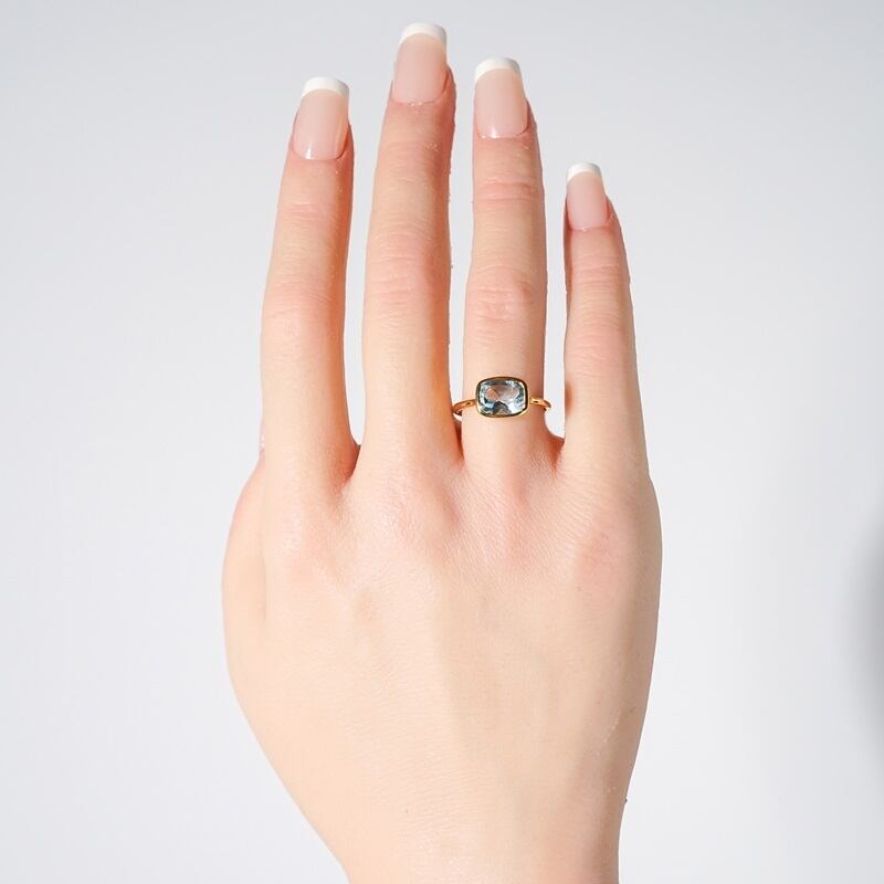 【素材】 ヴェルメイユ(SV925+18金マイクロコーティング) 天然石:ブルートパーズ 【サイズ 】 12号 モチーフ:10.3x8.1mm 【石言葉】 自分に必要なものやチャンスを引き寄せる石 ※ご購入の前に【GUIDE】を必ずご一読お願いいたします。