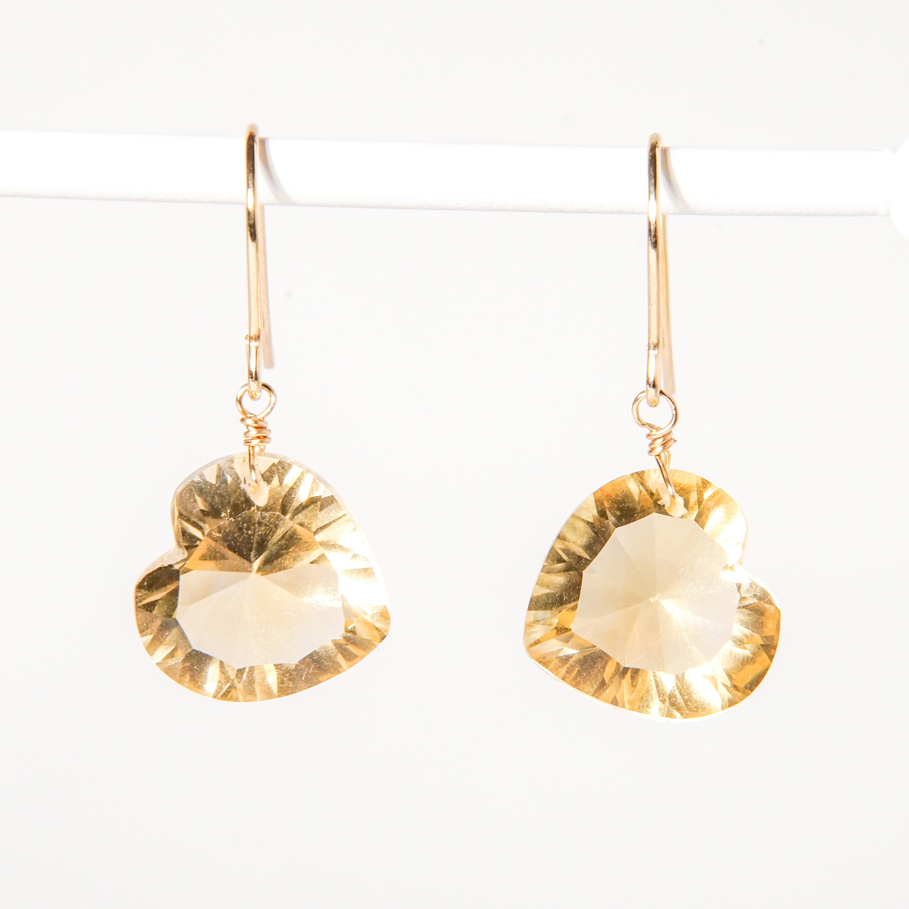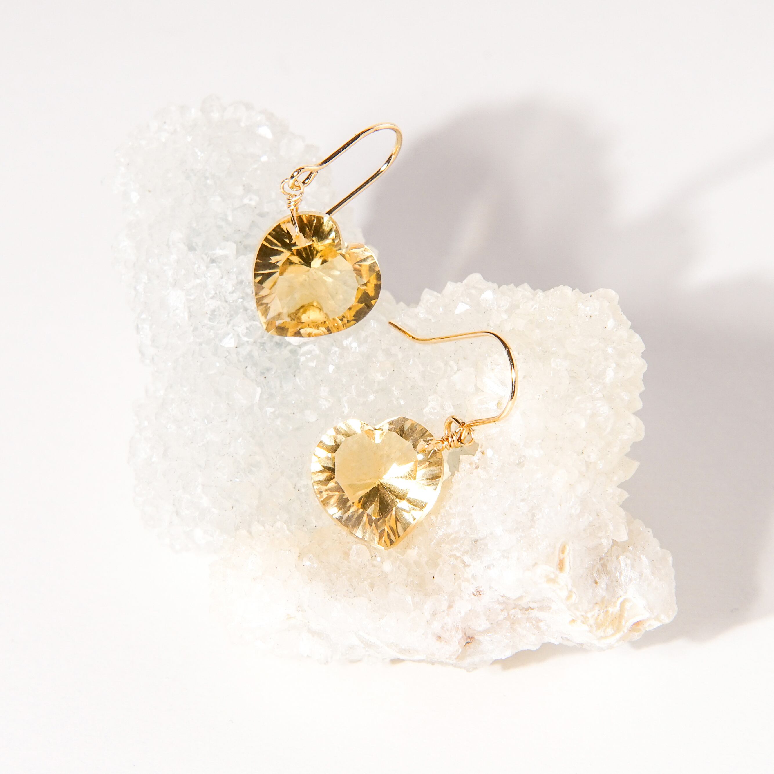 ハートカットをブラッシュアップしました。 ハートにカットされた立体感のある天然石は、淡いお色でも美しいカットにより、艶感がしっかりと出て、存在感があります。シンプルなデザインなので、甘すぎず、大人可愛い耳飾りです。 【サイズ 】 天然石:シトリン / 約12mm 【素材】 ピアス:14kgf(ゴールドフィルド) イヤリング金具:ゴールドコーティング 【石言葉】 富と財宝と幸運の石 ※ご購入の前に【GUIDE】を必ずご一読お願いいたします。