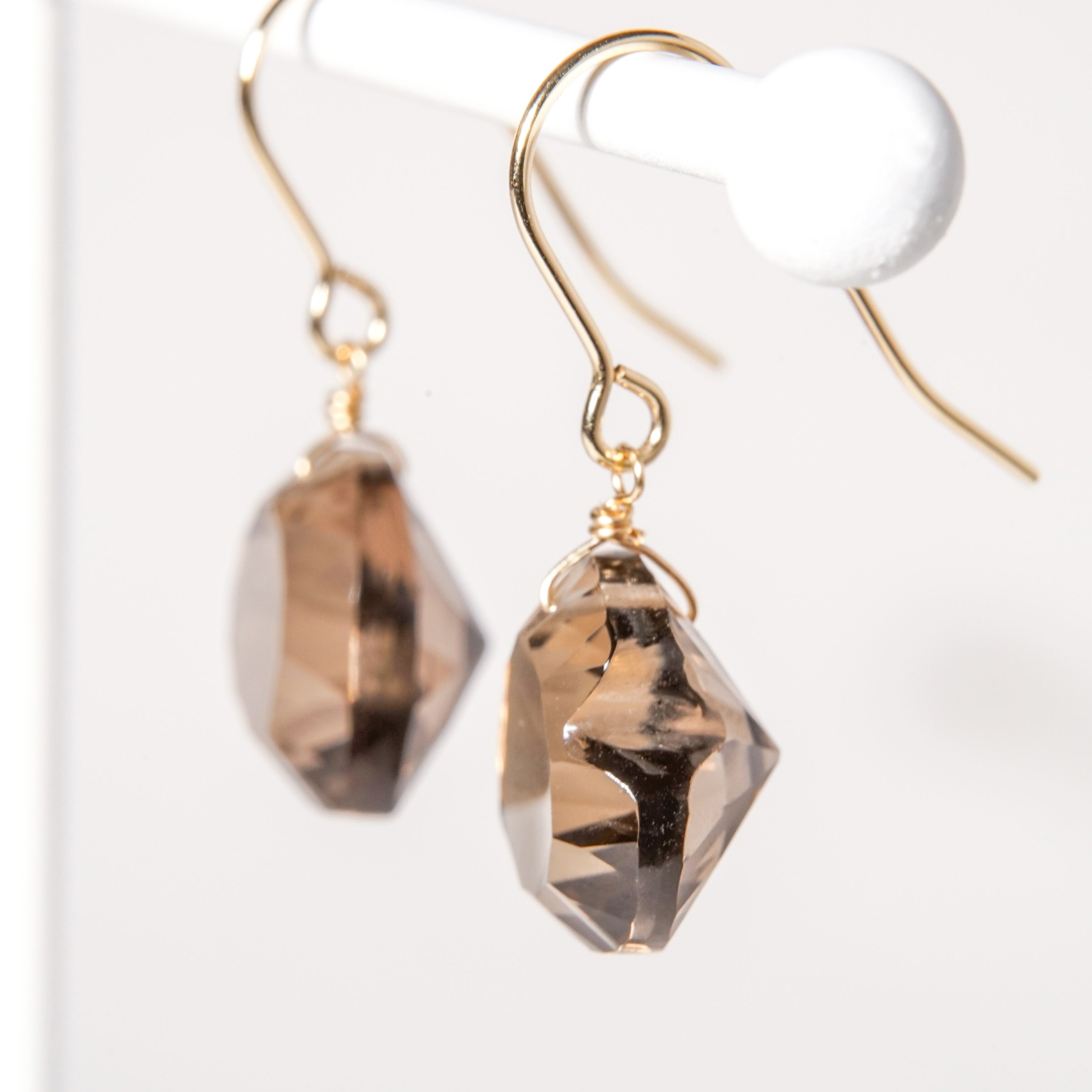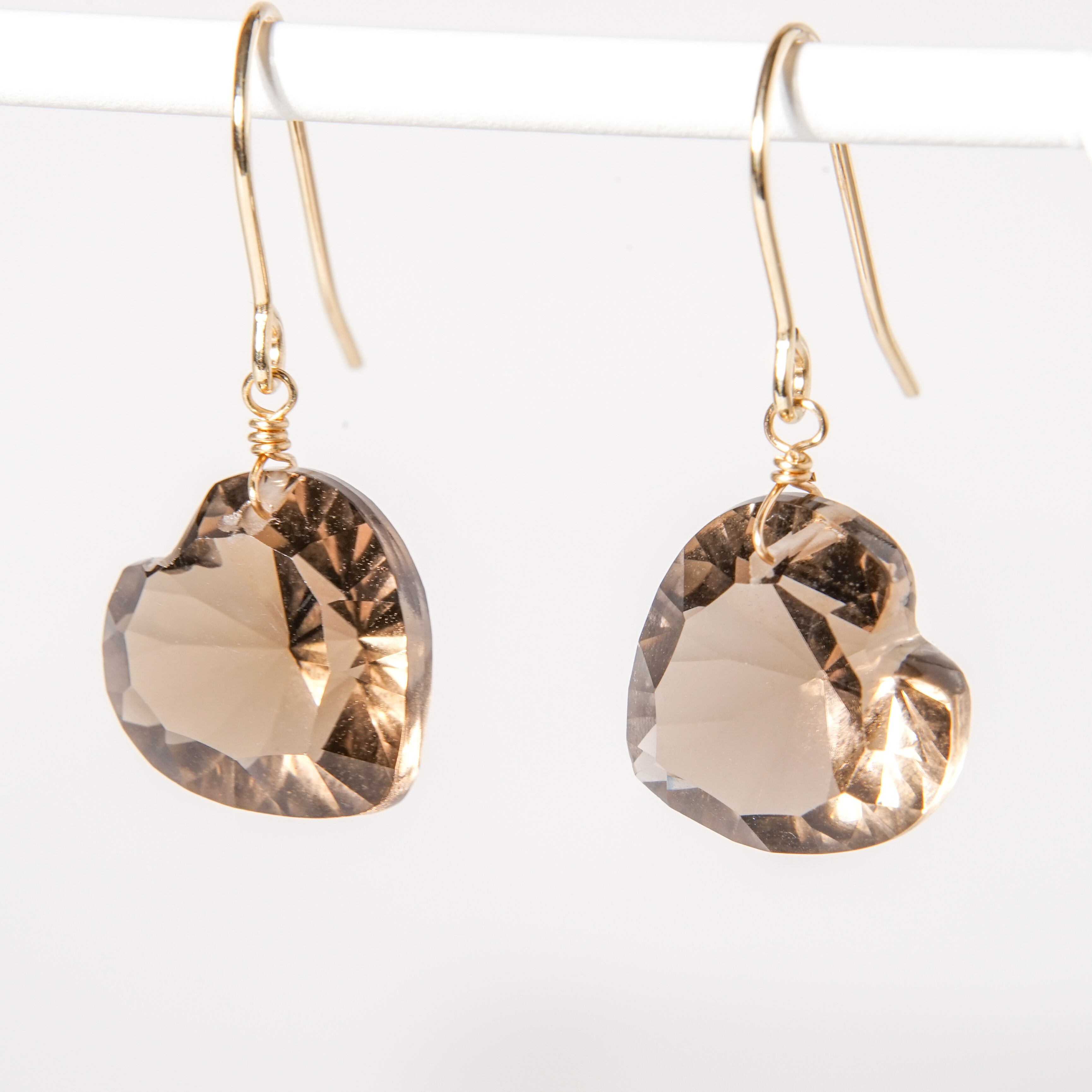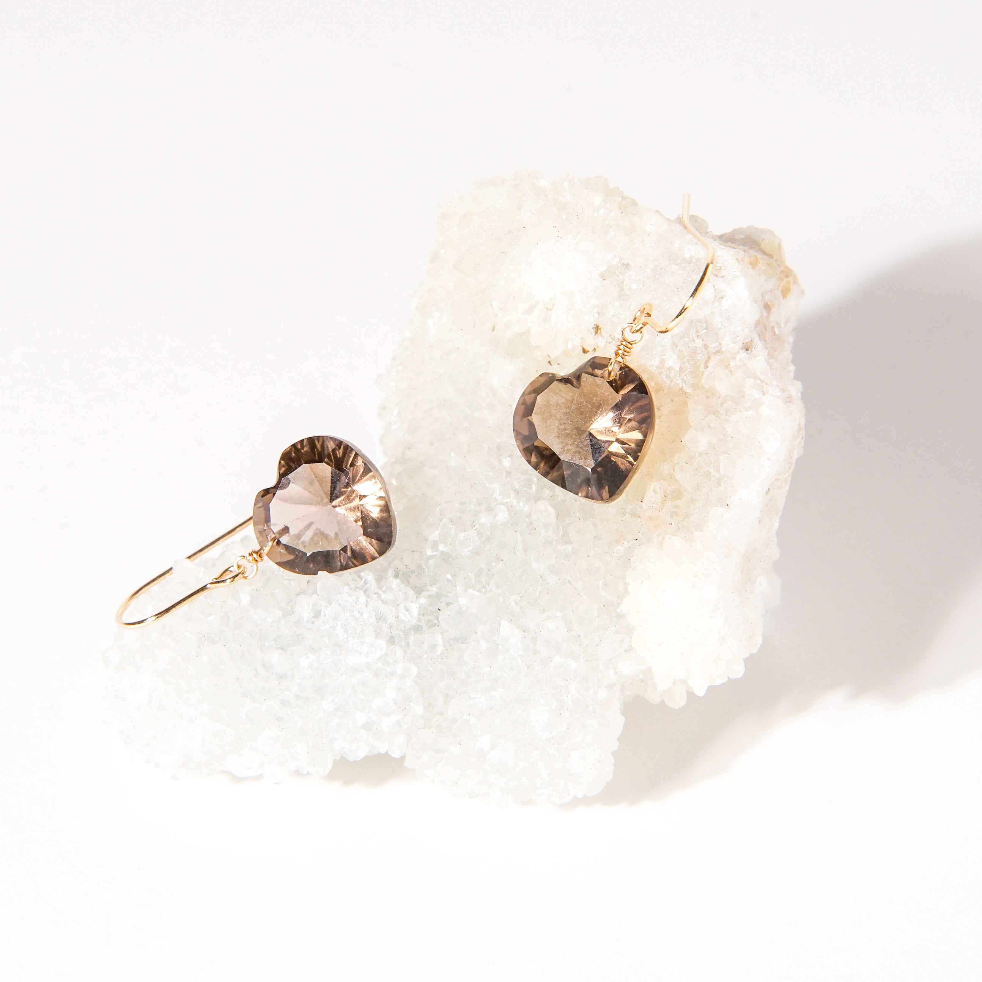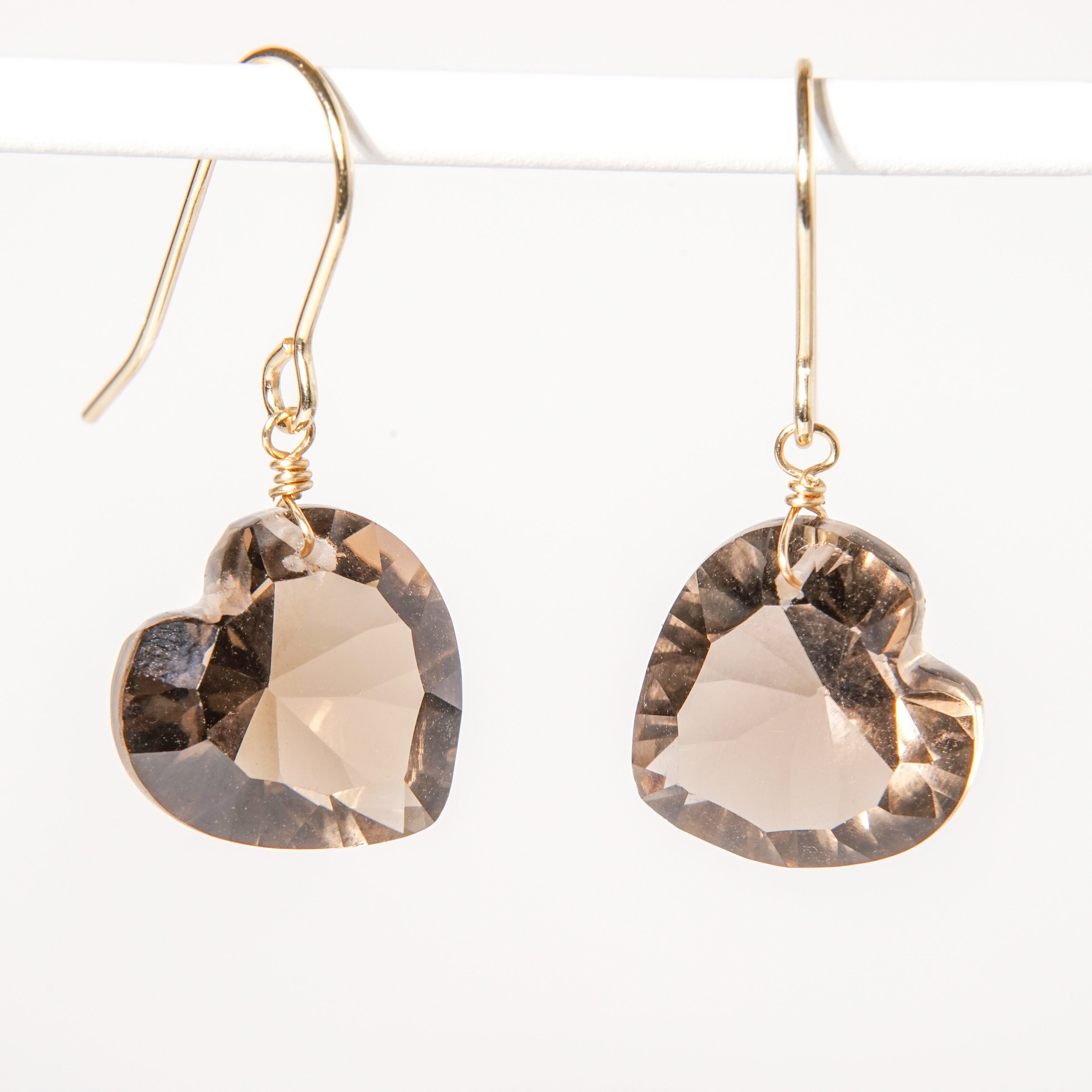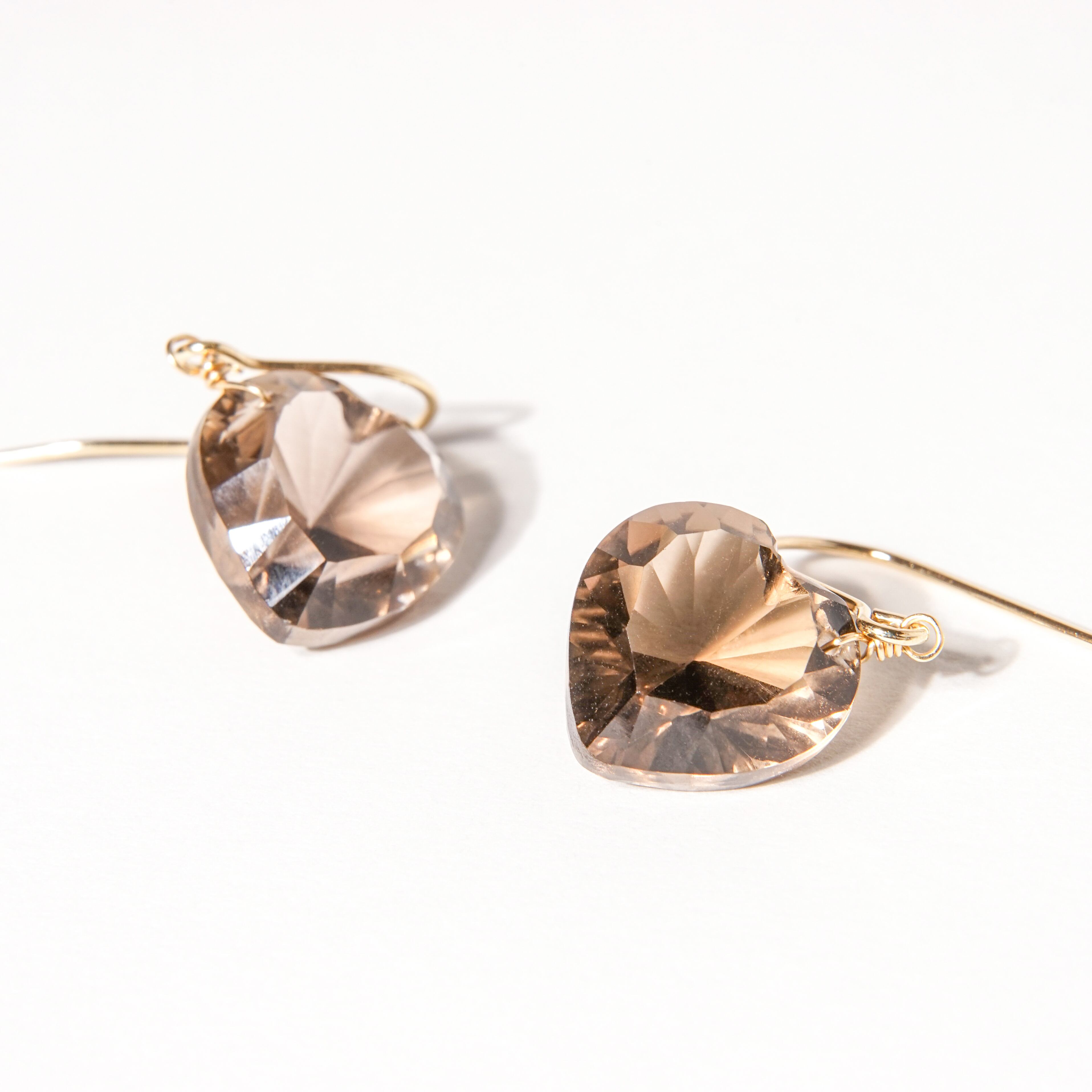 ハートカットをブラッシュアップしました。 ハートにカットされた立体感のある天然石は、淡いお色でも美しいカットにより、艶感がしっかりと出て、存在感があります。シンプルなデザインなので、甘すぎず、大人可愛い耳飾りです。 【サイズ 】 天然石:スモーキークォーツ / 約12mm 【素材】 ピアス:14kgf(ゴールドフィルド) イヤリング金具:ゴールドコーティング 【石言葉】 最強の魔除け、財産を呼ぶ石 ※ご購入の前に【GUIDE】を必ずご一読お願いいたします。