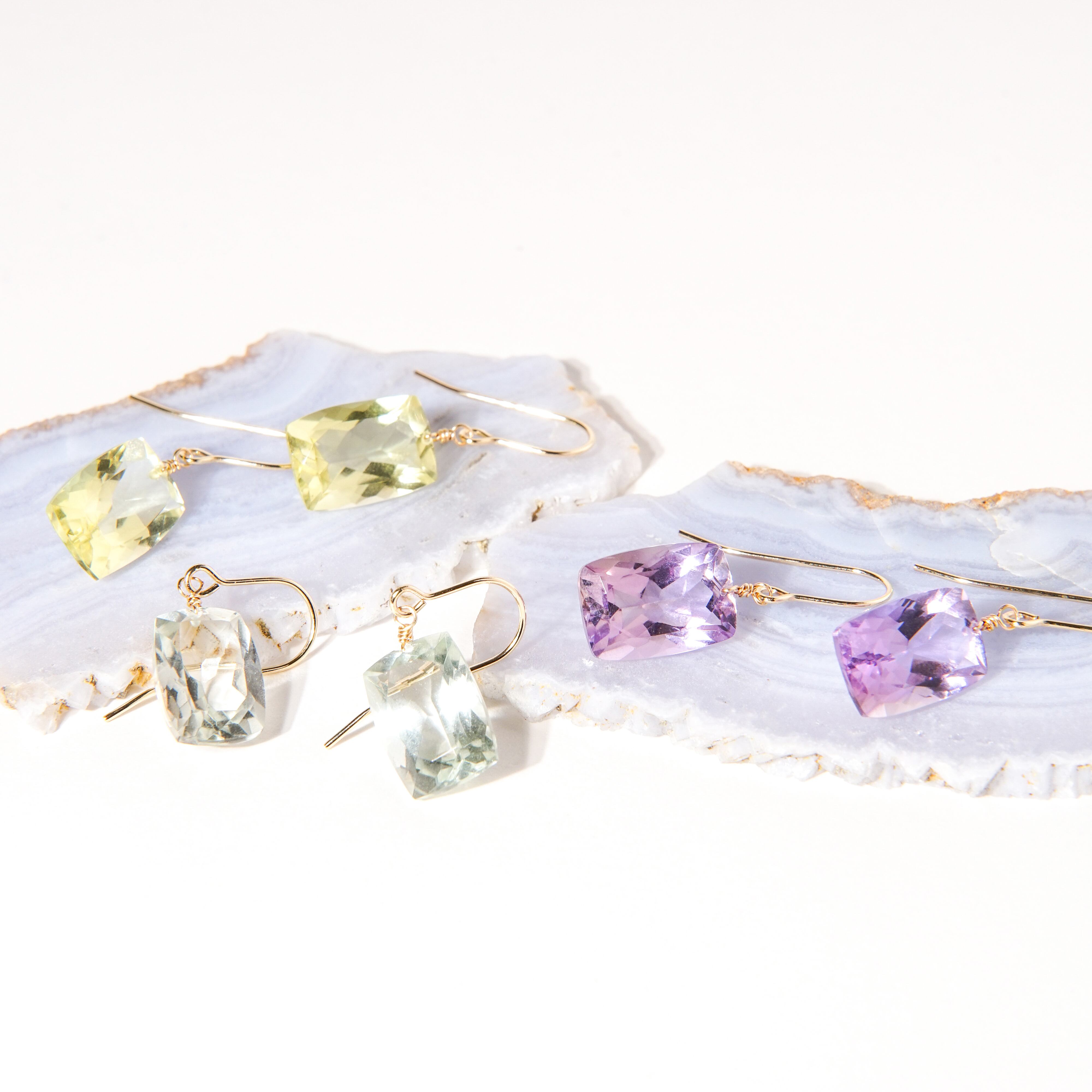 【グリーンアメシスト】コンケープ 14kgfピアス・イヤリング
