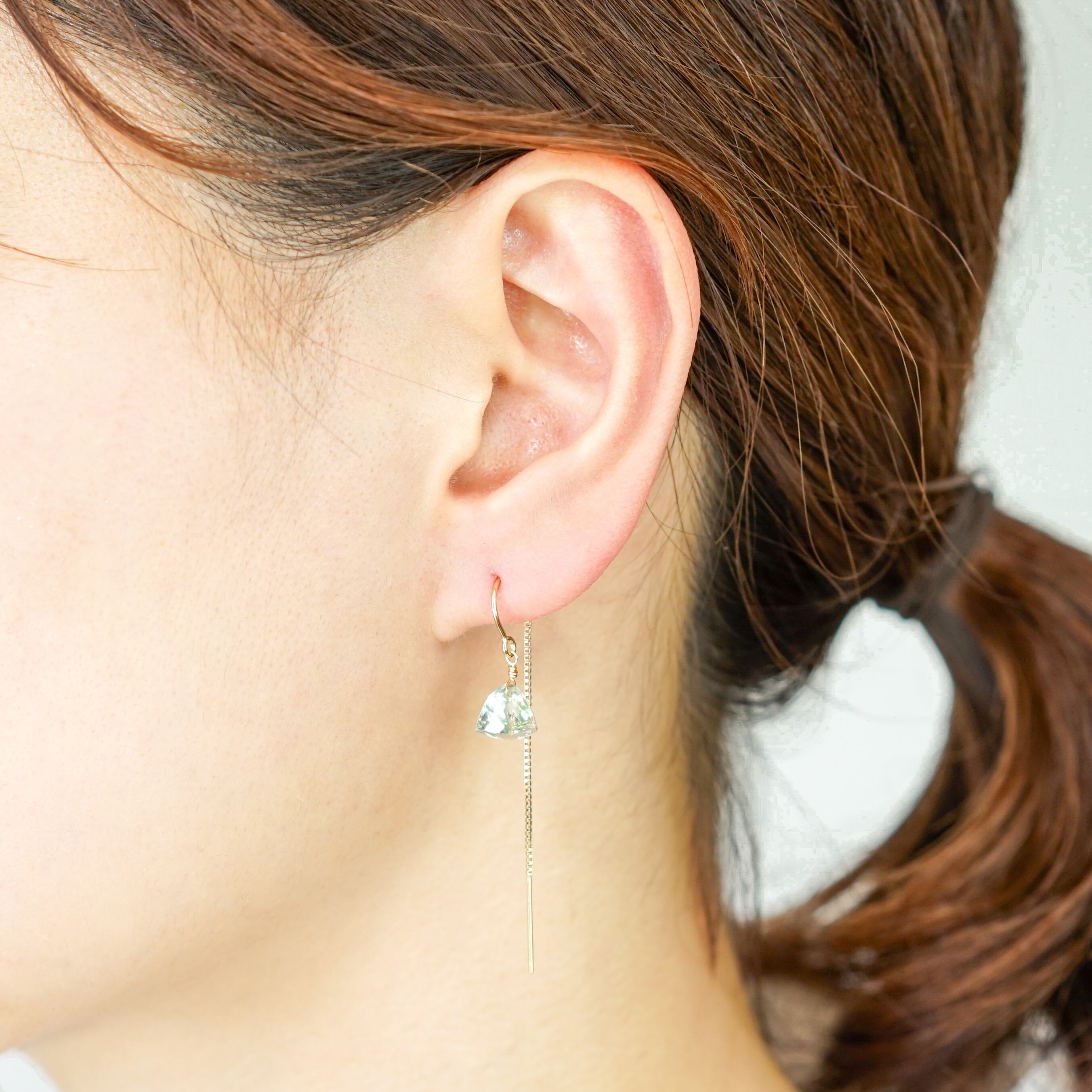 職人技が光るトリリアンカットは360度どんな角度からも光を取り込み輝くカットになり、さりげない発色も輝きが一層増すので、上品と可愛らしさが魅力的なデザインです。 さりげなく揺れるアメリカンピアスのチェーンも光沢感が滑らかに出るように、繋目のないデザインに仕上げています。 << イヤリング交換不可 >> 【サイズ 】 天然石(ピンクアメシスト):8mm前後 全体:約56mm 【素材】 14kgf(ゴールドフィルド) 【石言葉】 隠れた魅力を引き出し、開花させてくれる石 ※ご購入の前に【GUIDE】を必ずご一読お願いいたします。