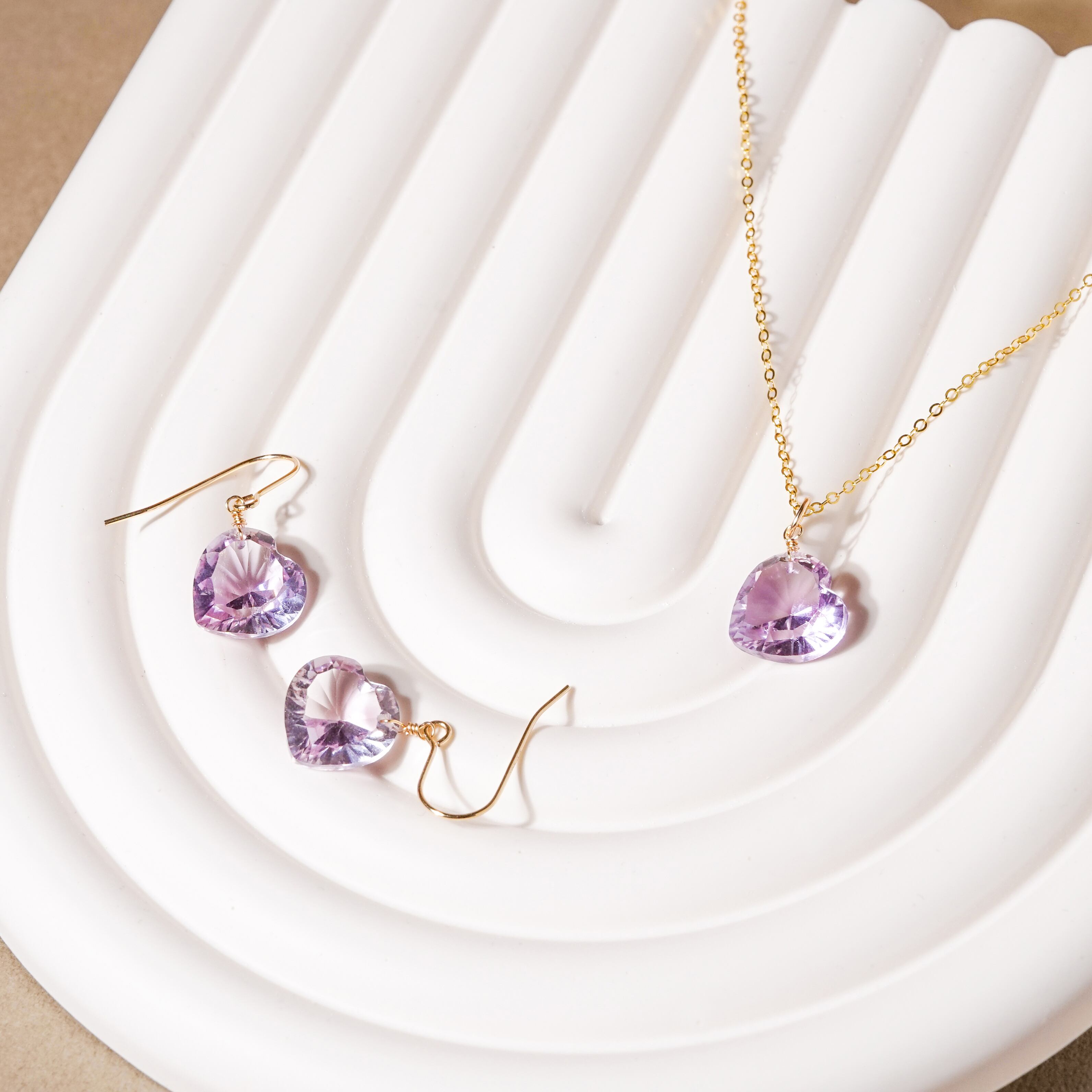 ハートカットをブラッシュアップしました。 ハートにカットされた立体感のある天然石は、淡いお色でも美しいカットにより、艶感がしっかりと出て、存在感があります。シンプルなデザインなので、甘すぎず、大人可愛い耳飾りです。 【サイズ 】 天然石(ピンクアメシスト):12mm ネックレス:〜45cm(スライド調整タイプ) 【素材】 ネックレスチェーン・金具:14kgf(ゴールドフィルド) 【石言葉】 隠れた魅力を引き出し、開花させてくれる石 ※ハートの穴の位置が商品によっては写真と左右が異なる場合がございます。ご了承ください。 ※ご購入の前に【GUIDE】を必ずご一読お願いいたします。