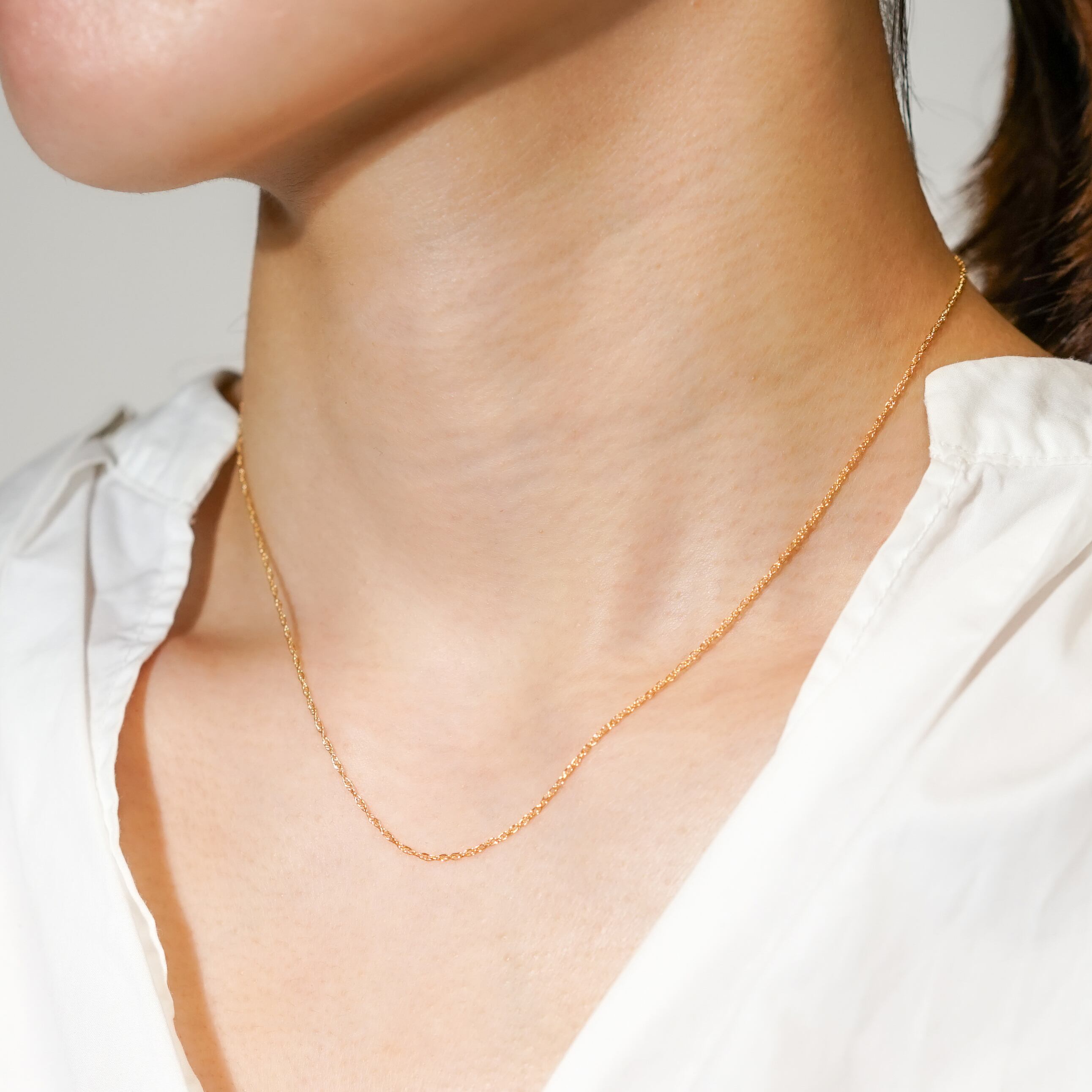 デコルテを美しく見せてくれる繊細なチェーンが織り成すシルエットは、軽やかで華奢なデザインながら長く愛用して頂けるネックレスです。シンプルながらも上品なスタイルを演出し、どんなコーディネートにもマッチします。 また、他のネックレスとのレイヤード使い(重ね付け)もオススメです。 14kgf(ゴールドフィルド)の素材ですべてお作りしているので、肌にも優しい仕上がりになっております。 【素材】 ALL 14kgf(ゴールドフィルド) 【サイズ 】 40cm ※ご購入の前に【GUIDE】を必ずご一読お願いいたします。