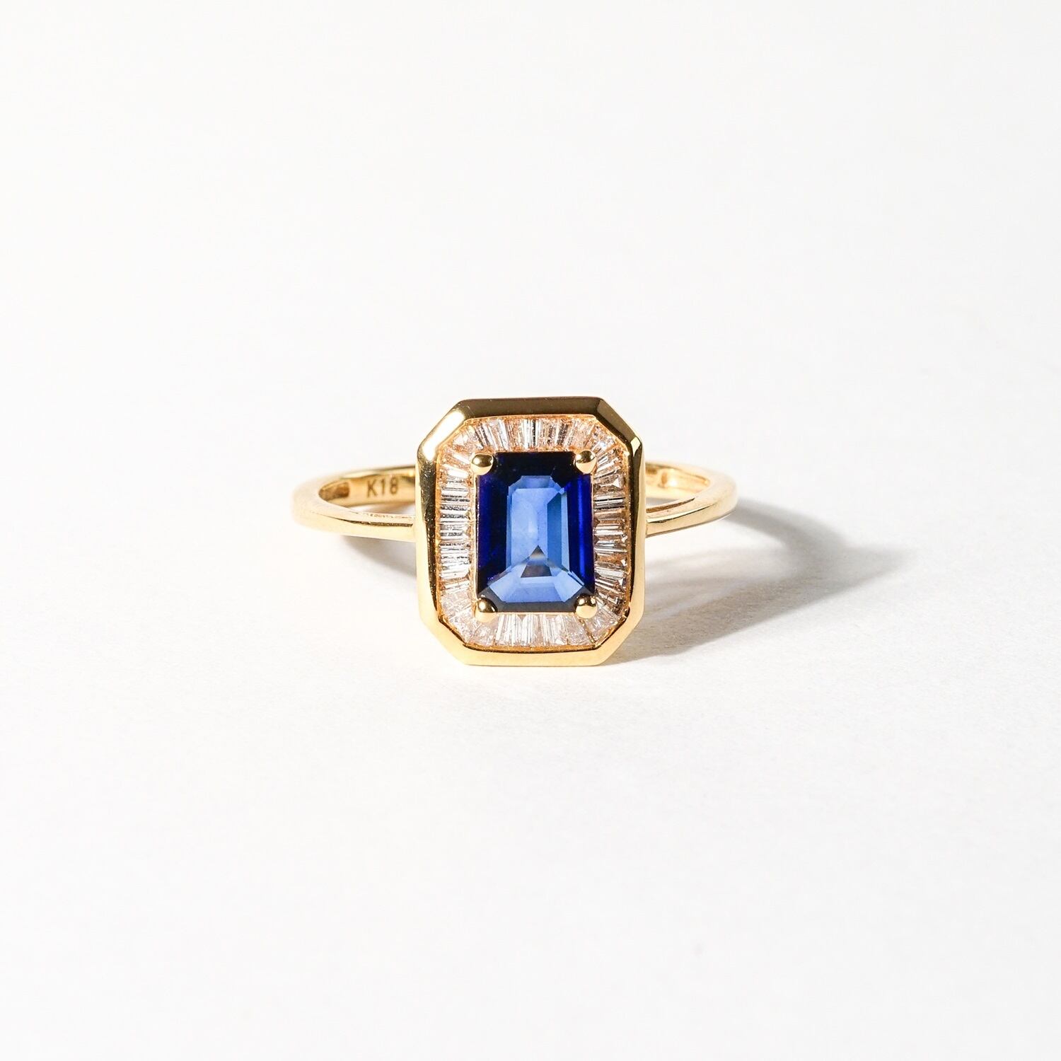 【K18 / 13号】サファイア x ダイヤモンド リング