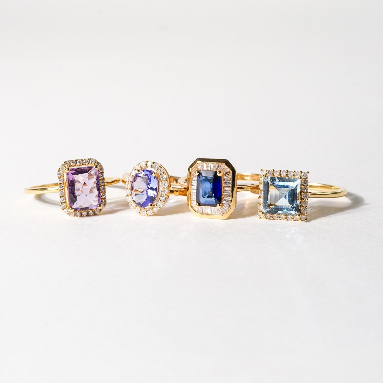 1点モノの厳選された天然石のピースを贅沢にダイヤモンドで取り囲んだ少しレトロで可愛らしいリングです。 美しいカットを最大限生かしたデザインになっております。 人差し指や中指に着けてアクセントに、薬指には可愛らしくおしゃれにお召頂けます。一生モノとしてトレンドに左右されず、長くお召いただけます。 【素材】 天然石:サファイア・ダイヤモンド K18 (18金) 【サイズ 】 13号 モチーフ:11.4x9.5mm サファイア:0.95ct ダイヤモンド:0.13ct 【石言葉】 あらゆる恵みを引きつける叡智の石 ※こちらのリングはサイズ変更可能(無料)の商品となります。 サイズ変更は商品サイズの±3号までになります。ご希望のサイズを購入時の「備考欄」にご記入ください。サイズ変更の場合は納期は約1ヶ月半~いただきますので、ご了承ください。 ※ご購入の前に【GUIDE】を必ずご一読お願いいたします。