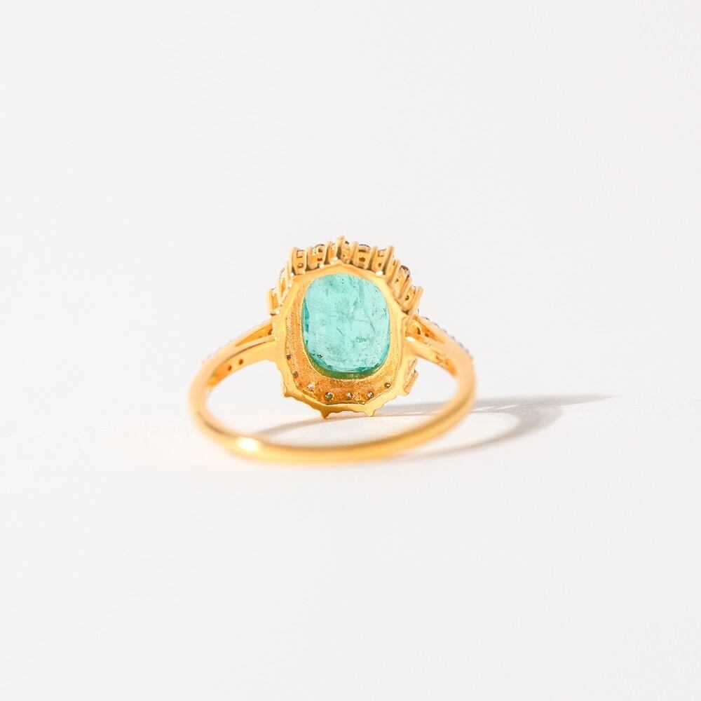 1点モノの厳選された天然石のピースを贅沢にダイヤモンドで取り囲んだ少しレトロで可愛らしいリングです。美しいカットを最大限生かしたデザインになっております。 人差し指や中指に着けてアクセントに、薬指には可愛らしくおしゃれにお召頂けます。一生モノとしてトレンドに左右されず、長くお召いただけます。 【素材】 天然石:エメラルド(コロンビア産)・ダイヤモンド K18 (18金) 【サイズ 】 11号 モチーフ:12.5x10.6mm エメラルド:1.78ct ダイヤモンド:0.32ct 【石言葉】 エメラルド:愛を成就させる石 < 鑑別書付き > ※こちらのリングはサイズ変更可能(無料)の商品となります。 サイズ変更は商品サイズの±3号までになります。ご希望のサイズを購入時の「備考欄」にご記入ください。サイズ変更の場合は納期は約1ヶ月半~いただきますので、ご了承ください。 ※ご購入の前に【GUIDE】を必ずご一読お願いいたします。