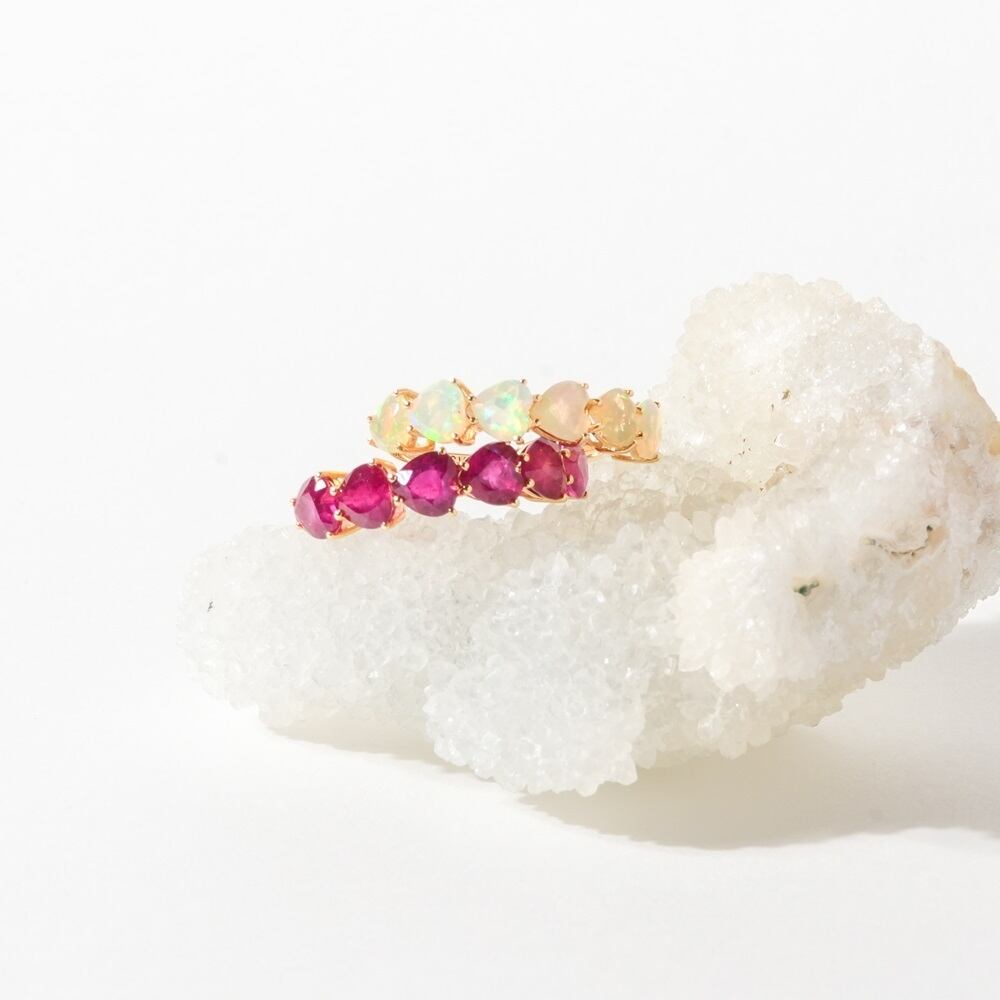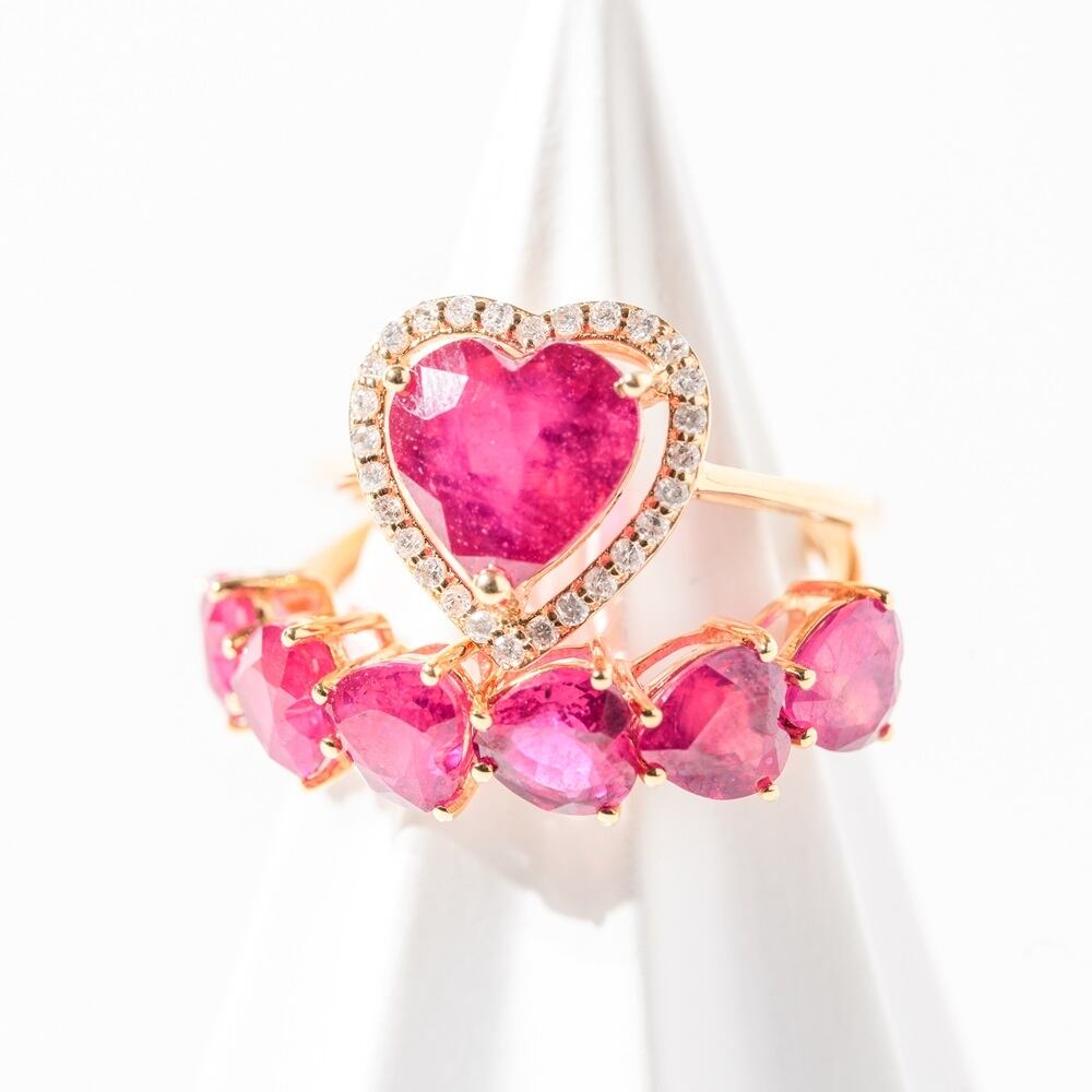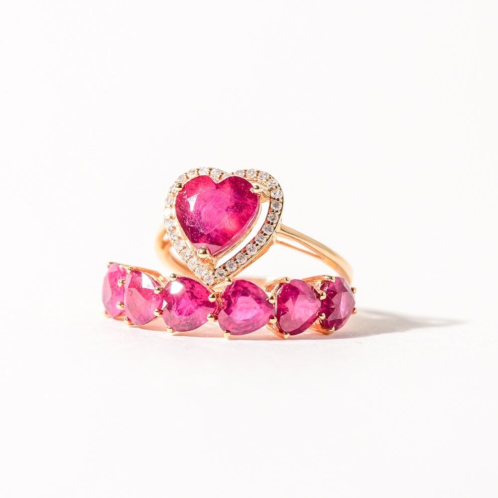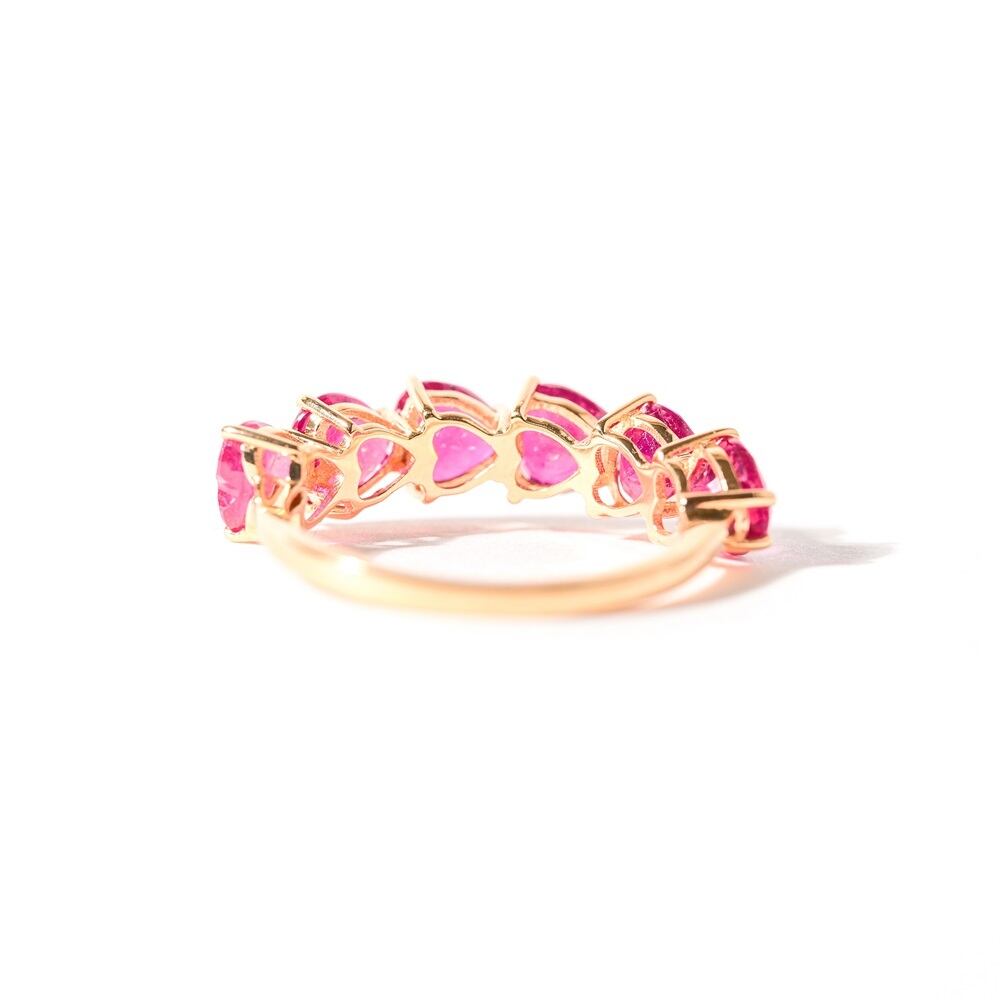 ハートにカットした天然石ピースを贅沢に6連繋げたボリュームのあるリングです。 1本でも存在感があり、デザインがすっきりとしたストレートラインより他のリングとの合わせも相性良くお召いただけます。 人差し指や中指に着けてアクセントに、薬指には可愛らしくおしゃれにお召頂けます。一生モノとしてトレンドに左右されず、長くお召いただけます。 【素材】 天然石:ルビー(モザンビーク産) K18 (18金) 【サイズ 】 12号 モチーフ:5.4x31.2mm / 3.9ct 【石言葉】 勝利と情熱を象徴する石 ※こちらのリングはサイズ変更可能(無料)の商品となります。 サイズ変更は商品サイズの±3号までになります。ご希望のサイズを購入時の「備考欄」にご記入ください。サイズ変更の場合は納期は約1ヶ月半~いただきますので、ご了承ください。 ※ご購入の前に【GUIDE】を必ずご一読お願いいたします。