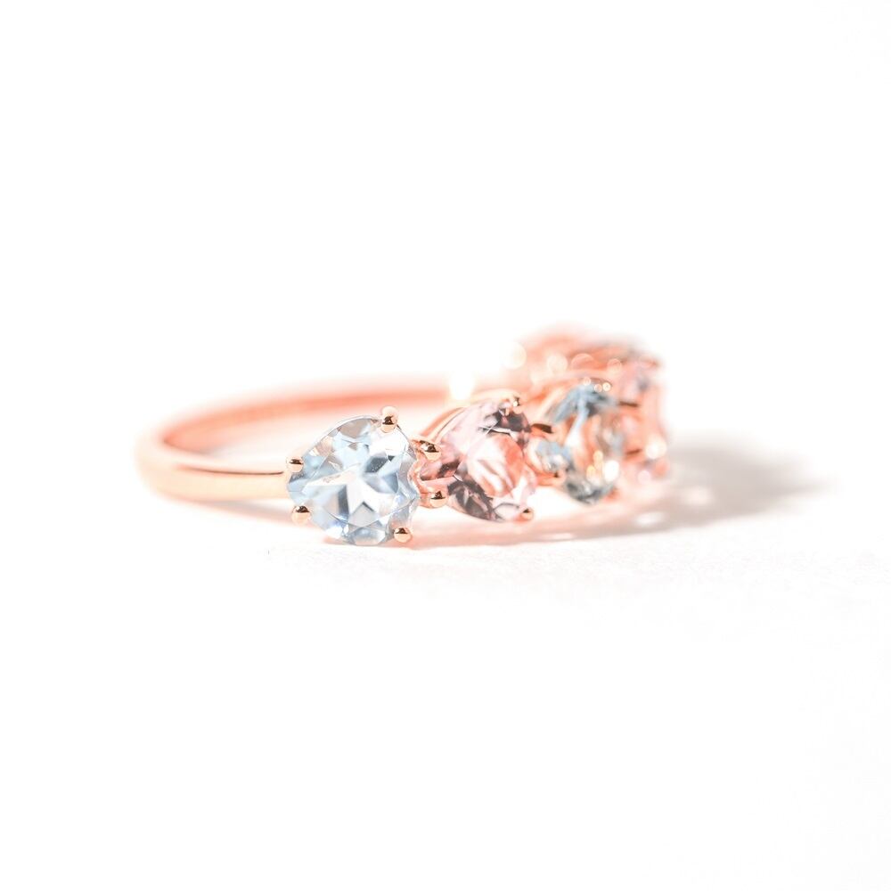 【K18 / 12号】アクアマリン x モルガナイト ハート連 リング