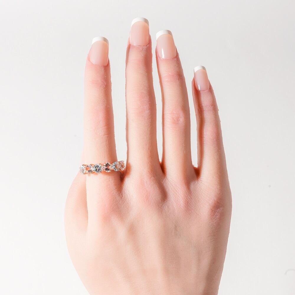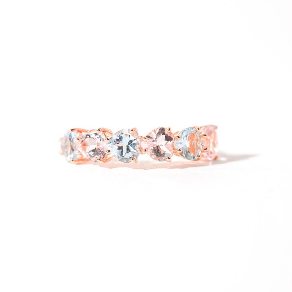 ハートにカットした天然石ピースを贅沢に6連繋げたボリュームのあるリングです。 1本でも存在感があり、デザインがすっきりとしたストレートラインより他のリングとの合わせも相性良くお召いただけます。 人差し指や中指に着けてアクセントに、薬指には可愛らしくおしゃれにお召頂けます。一生モノとしてトレンドに左右されず、長くお召いただけます。 【素材】 天然石:アクアマリン・モルガナイト K18 (18金) 【サイズ 】 12号 モチーフ:5.4x31.2mm / 2.3ct 【石言葉】 アクアマリン:健康や幸福を導く、幸福な人生の象徴石 モルガナイト:愛情、清純の石 ※こちらのリングはサイズ変更可能(無料)の商品となります。 サイズ変更は商品サイズの±3号までになります。ご希望のサイズを購入時の「備考欄」にご記入ください。サイズ変更の場合は納期は約1ヶ月半~いただきますので、ご了承ください。 ※ご購入の前に【GUIDE】を必ずご一読お願いいたします。
