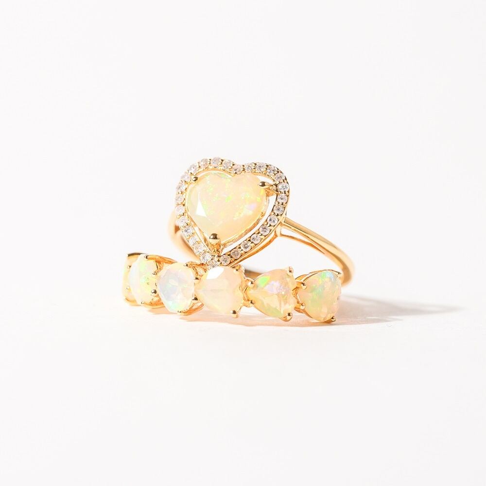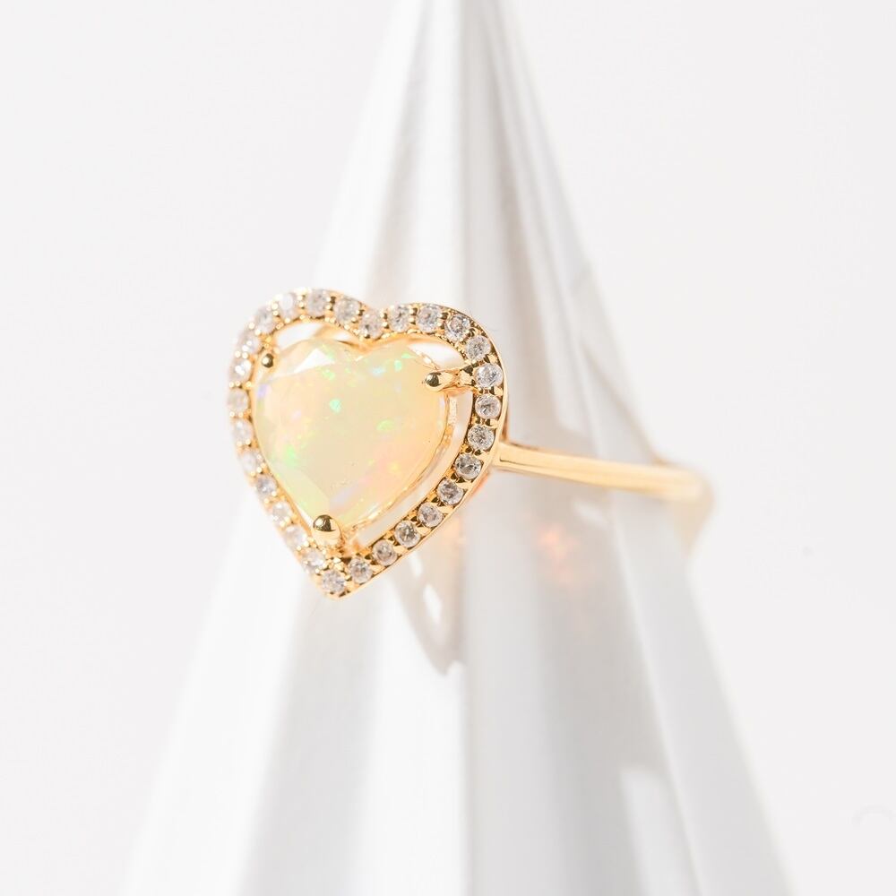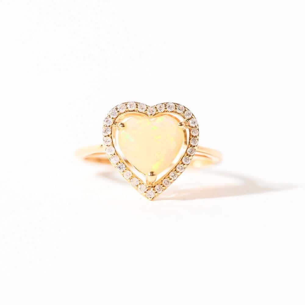 【K18 / 12号】オパール x ダイヤモンド ハートリング