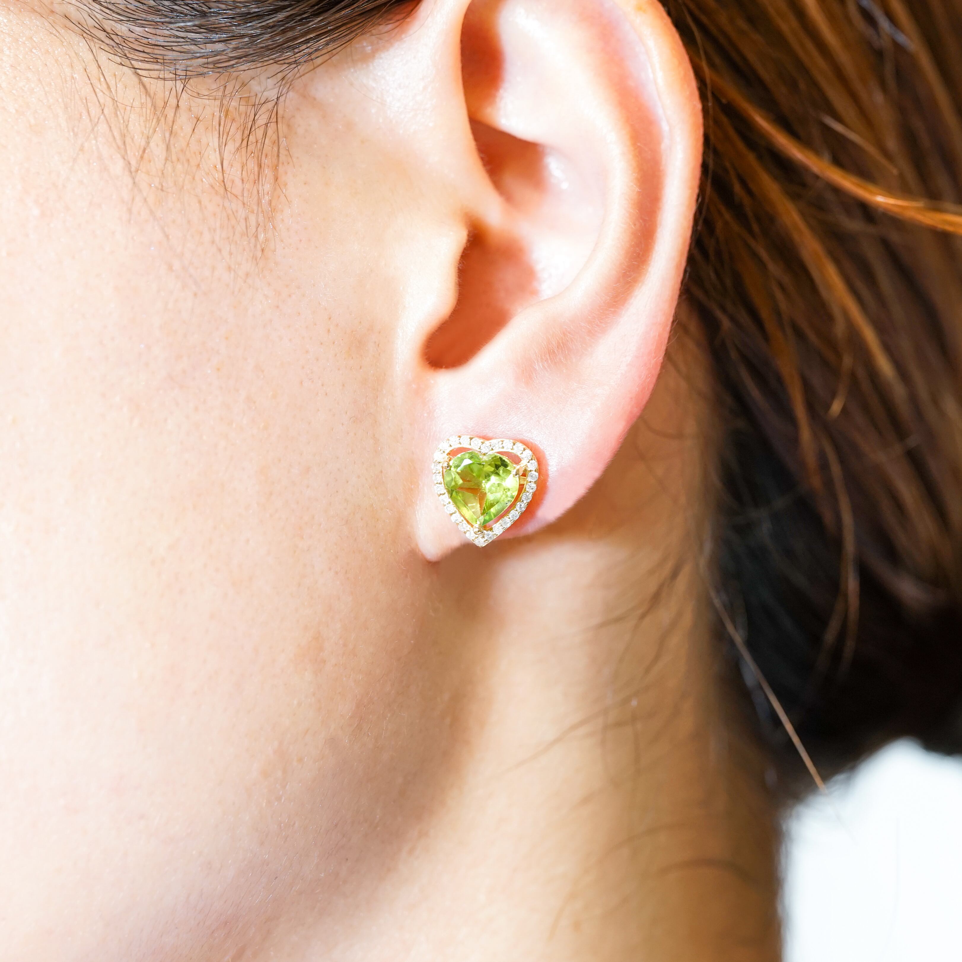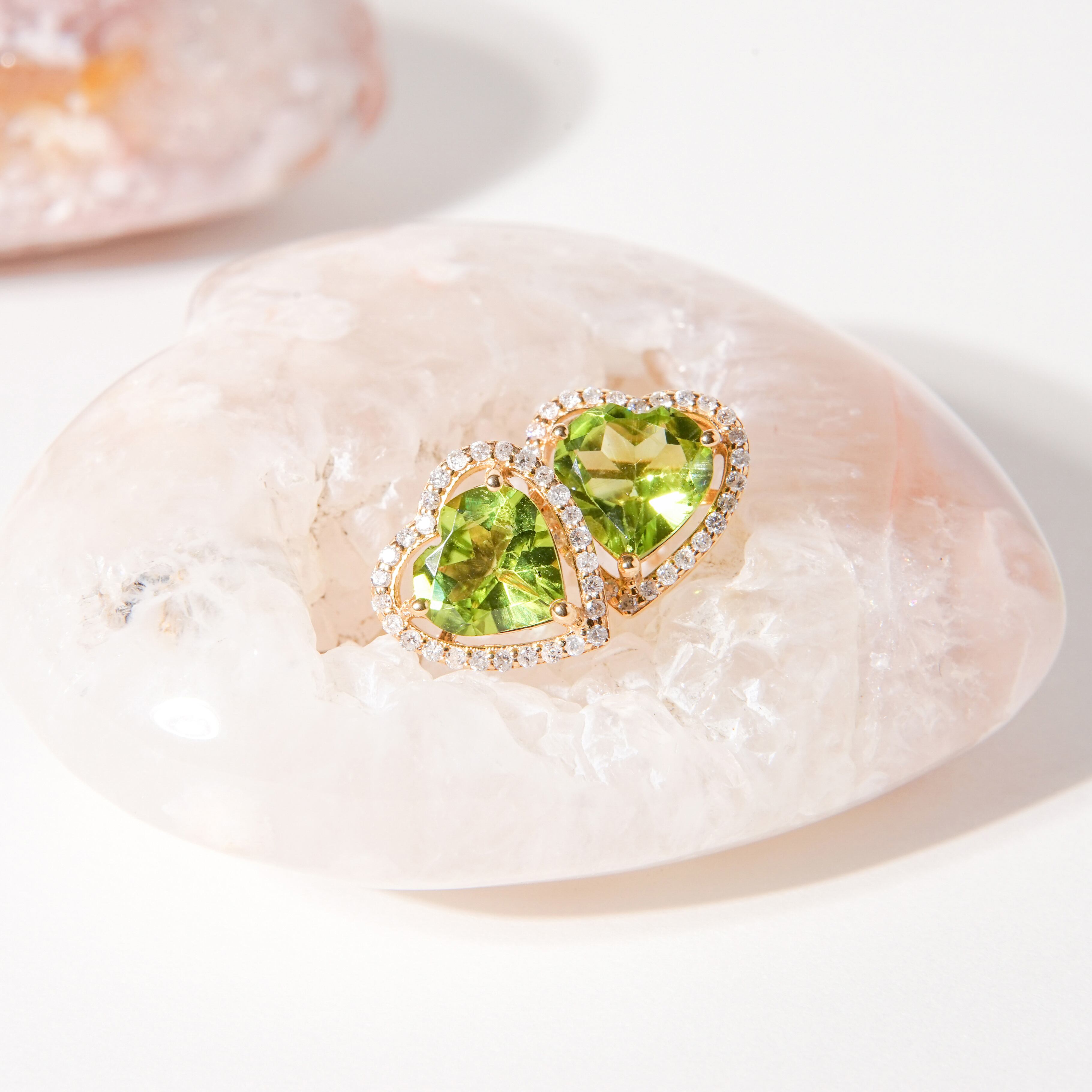 【K18】ペリドット x ダイヤモンド ハートピアス