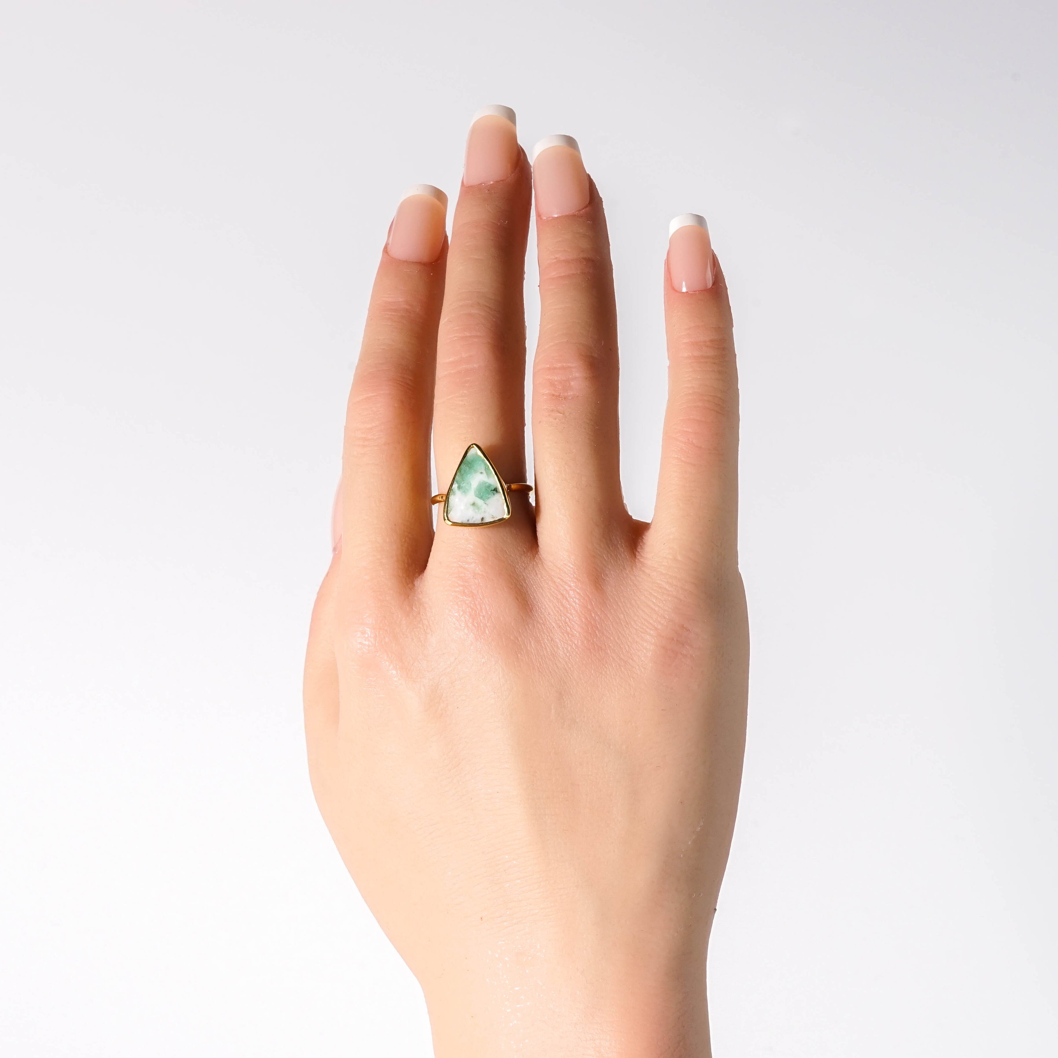 【素材】 ヴェルメイユ(SV925+18金マイクロコーティング) 天然石:エメラルドインクォーツ 【サイズ 】 12号 モチーフ:15.5x12.6mm 【石言葉】 愛を成就させる石 ※ご購入の前に【GUIDE】を必ずご一読お願いいたします。