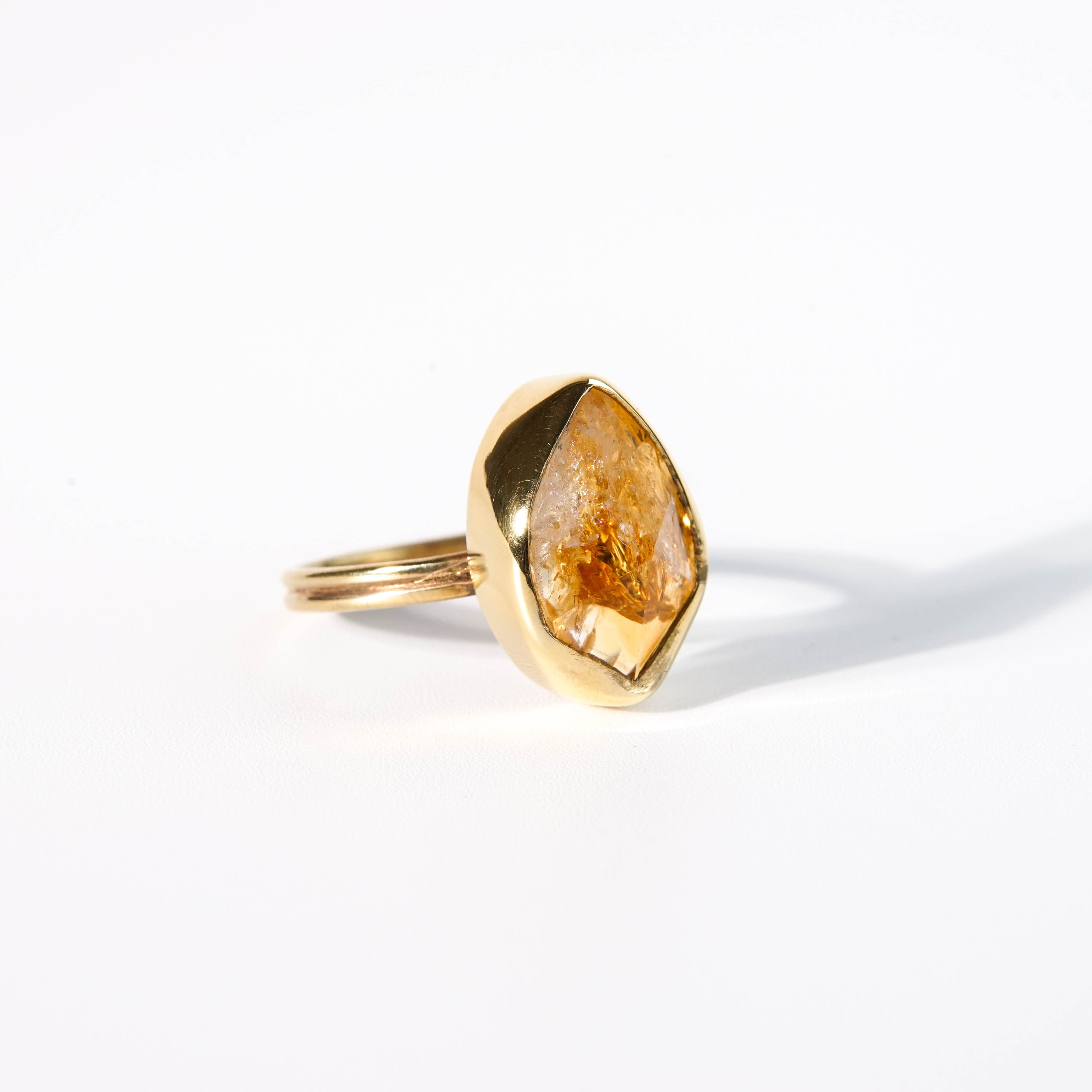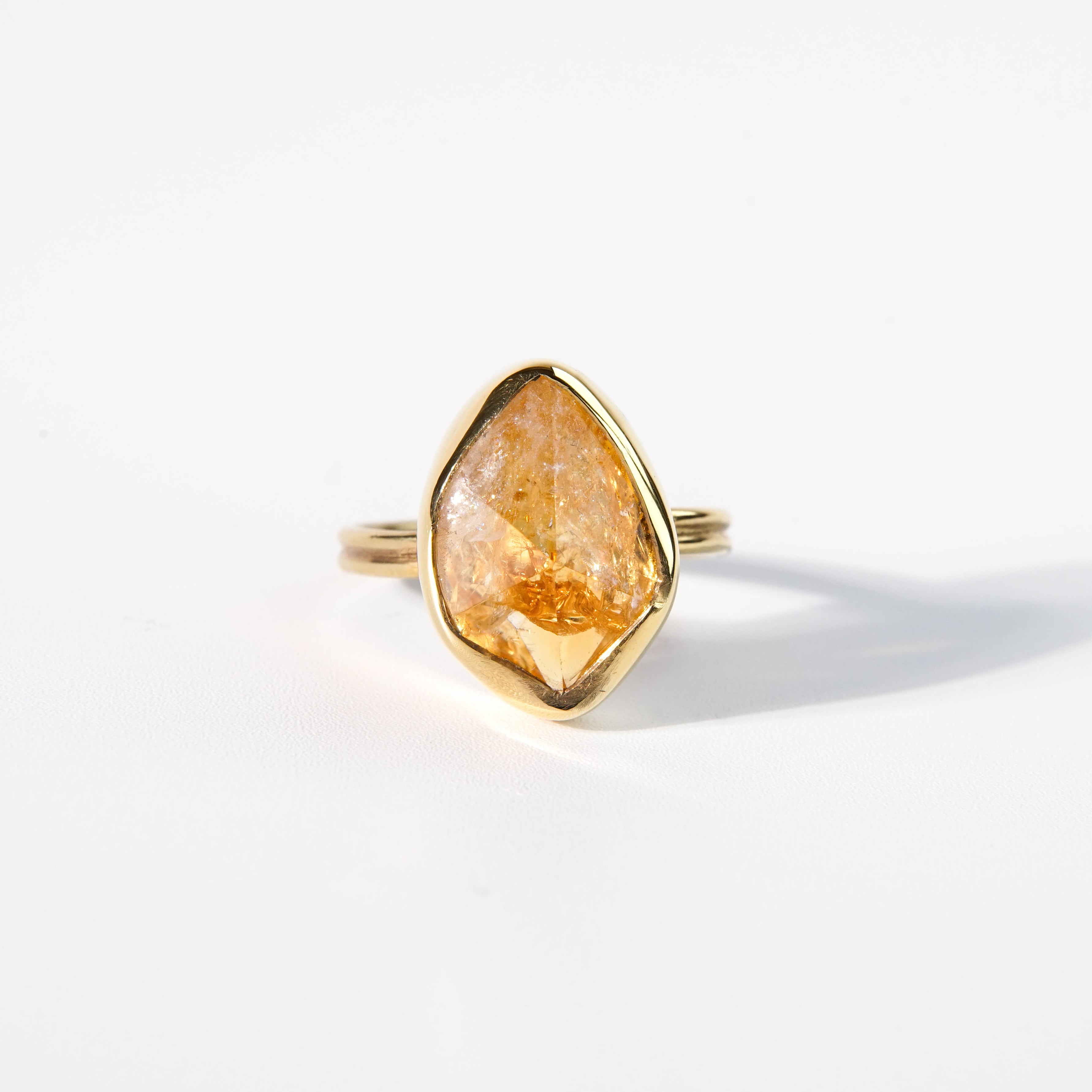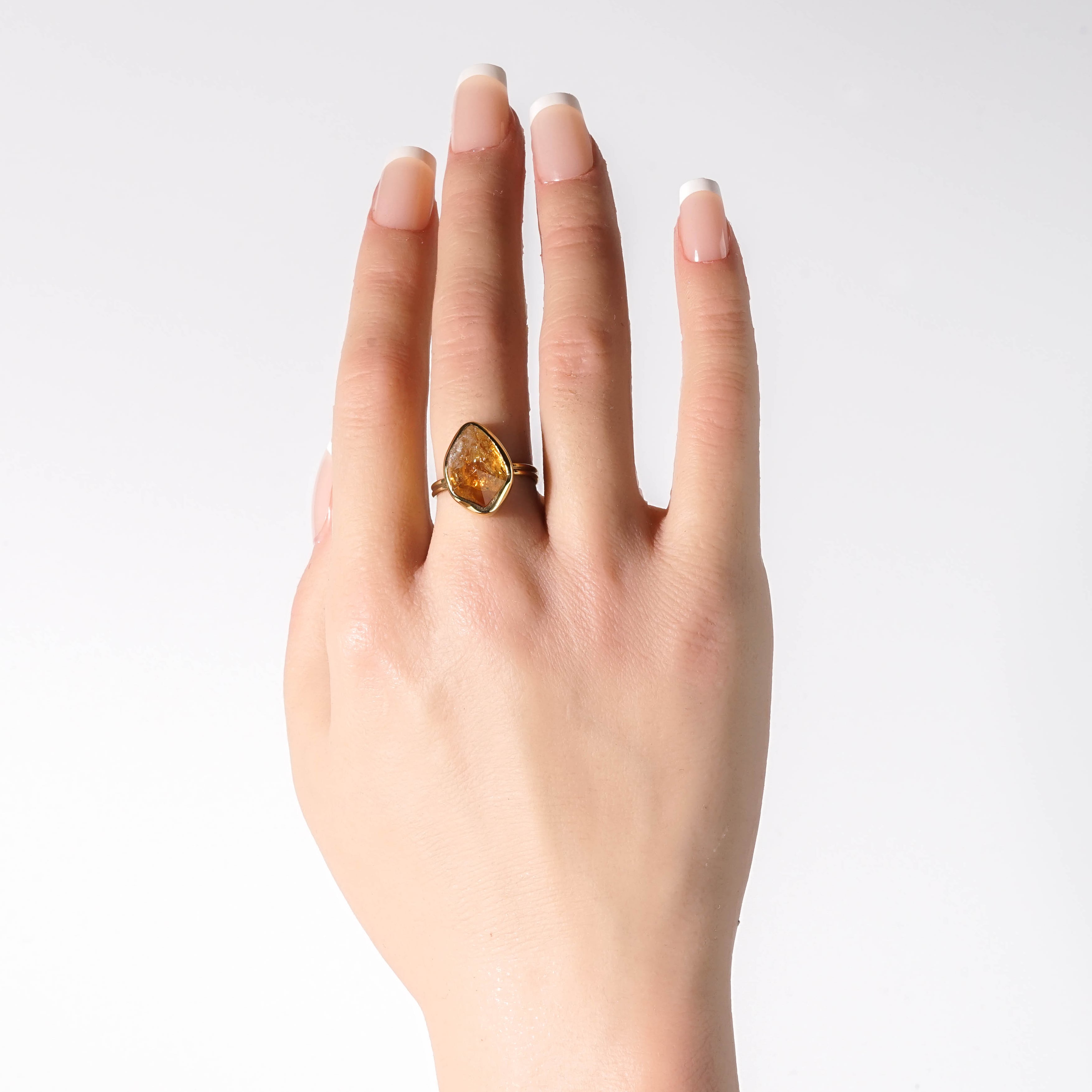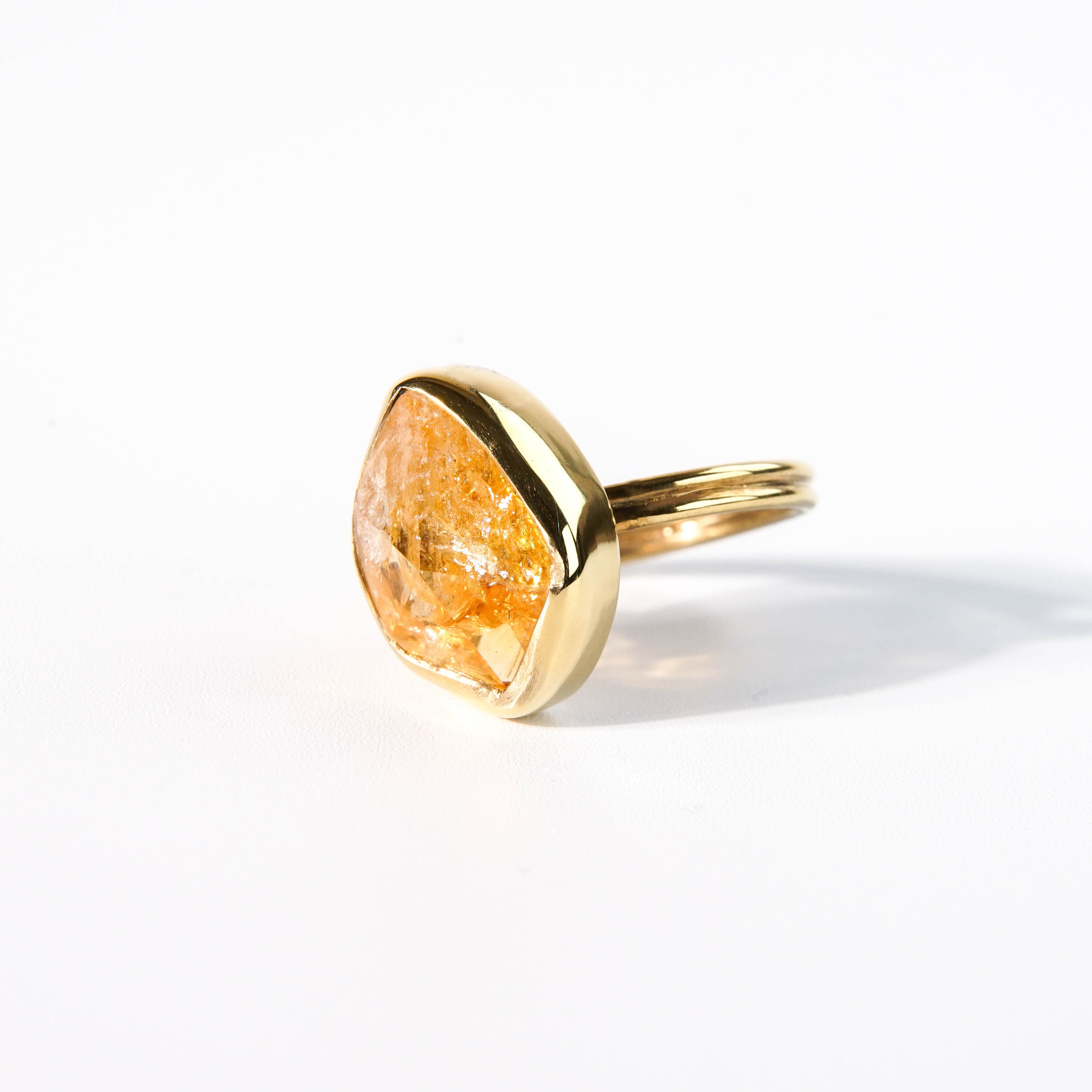 普段目にするシトリンとは違った、豊かな表情の天然石ピース。透明感と泡の様なきらめきが混在し、いろんな表情を見せてくれます。 【素材】 天然石:シトリン ヴェルメイユ(SV925+18金マイクロコーティング) 【サイズ 】 フリーサイズ (推奨 9~15号) モチーフ:16.3x11.9mm 【石言葉】 富と財産と幸運の石 ※ご購入の前に【GUIDE】を必ずご一読お願いいたします。