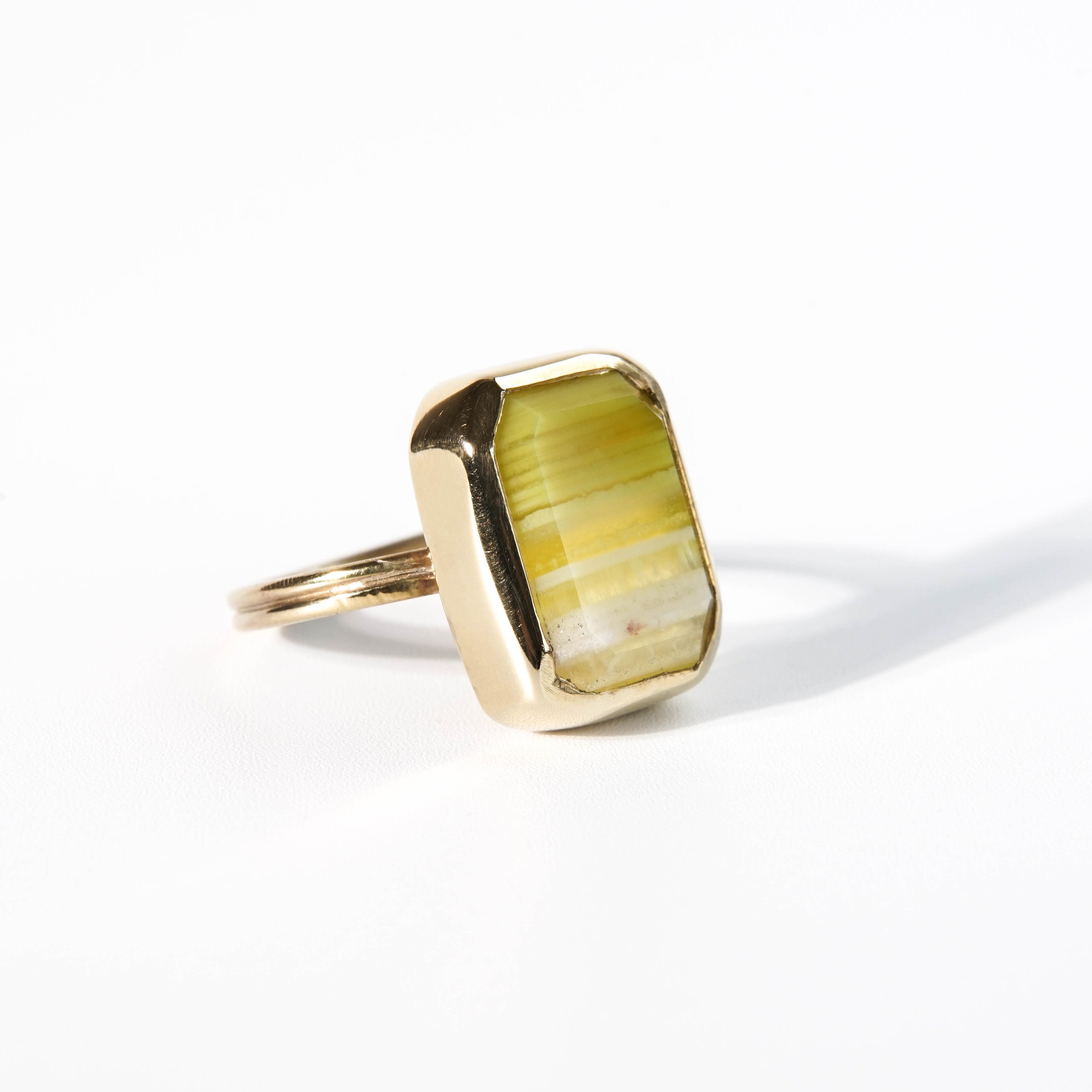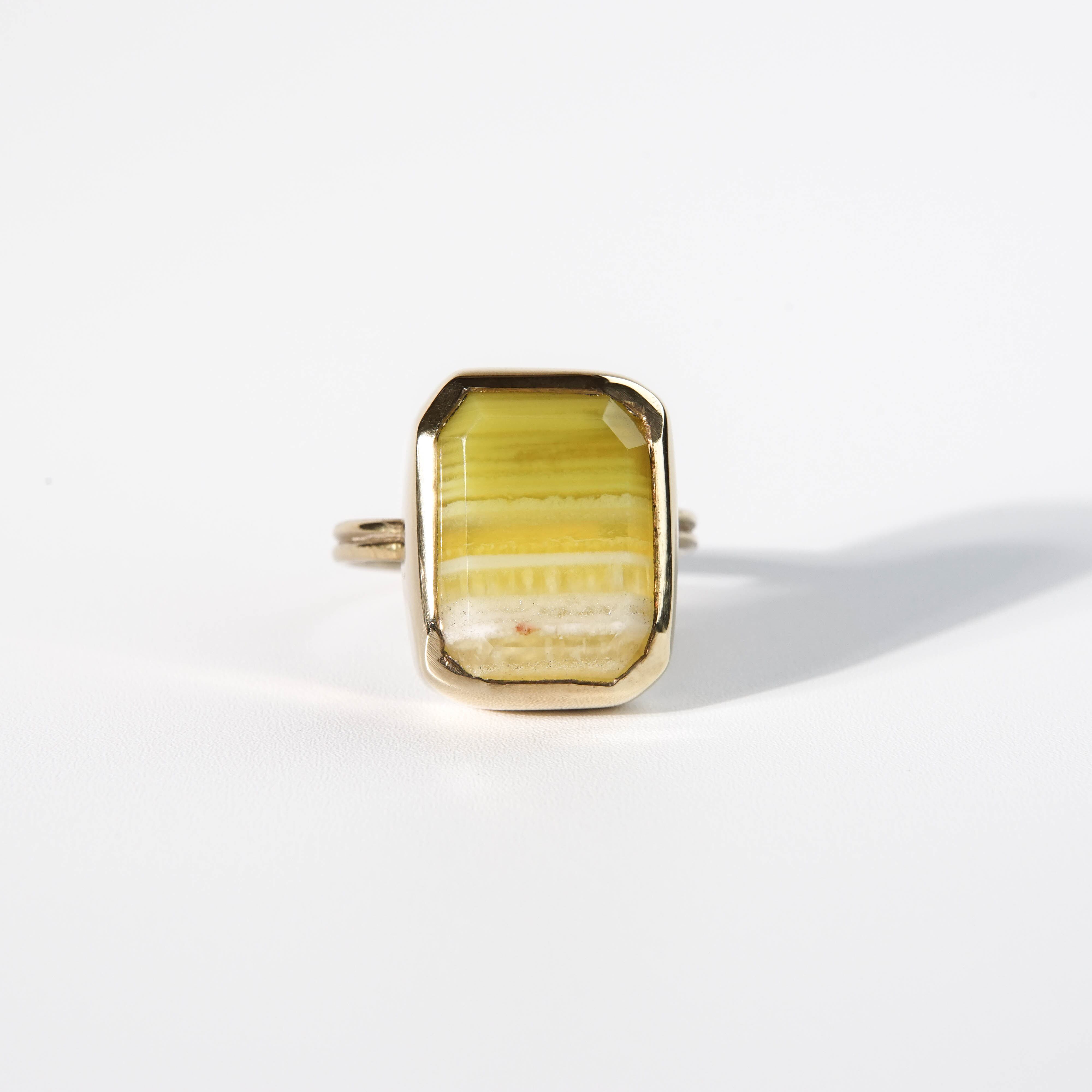 鮮やかなうぐいす色が印象的なアゲートは、色の層が幾つも重なった、素敵な表情をした天然石のピースです。 【素材】 天然石:ウグイスアゲート ヴェルメイユ(SV925+18金マイクロコーティング) 【サイズ 】 フリーサイズ (推奨 9~15号) モチーフ:17.4x13.8mm 【石言葉】 魔除けの石 ※ご購入の前に【GUIDE】を必ずご一読お願いいたします。