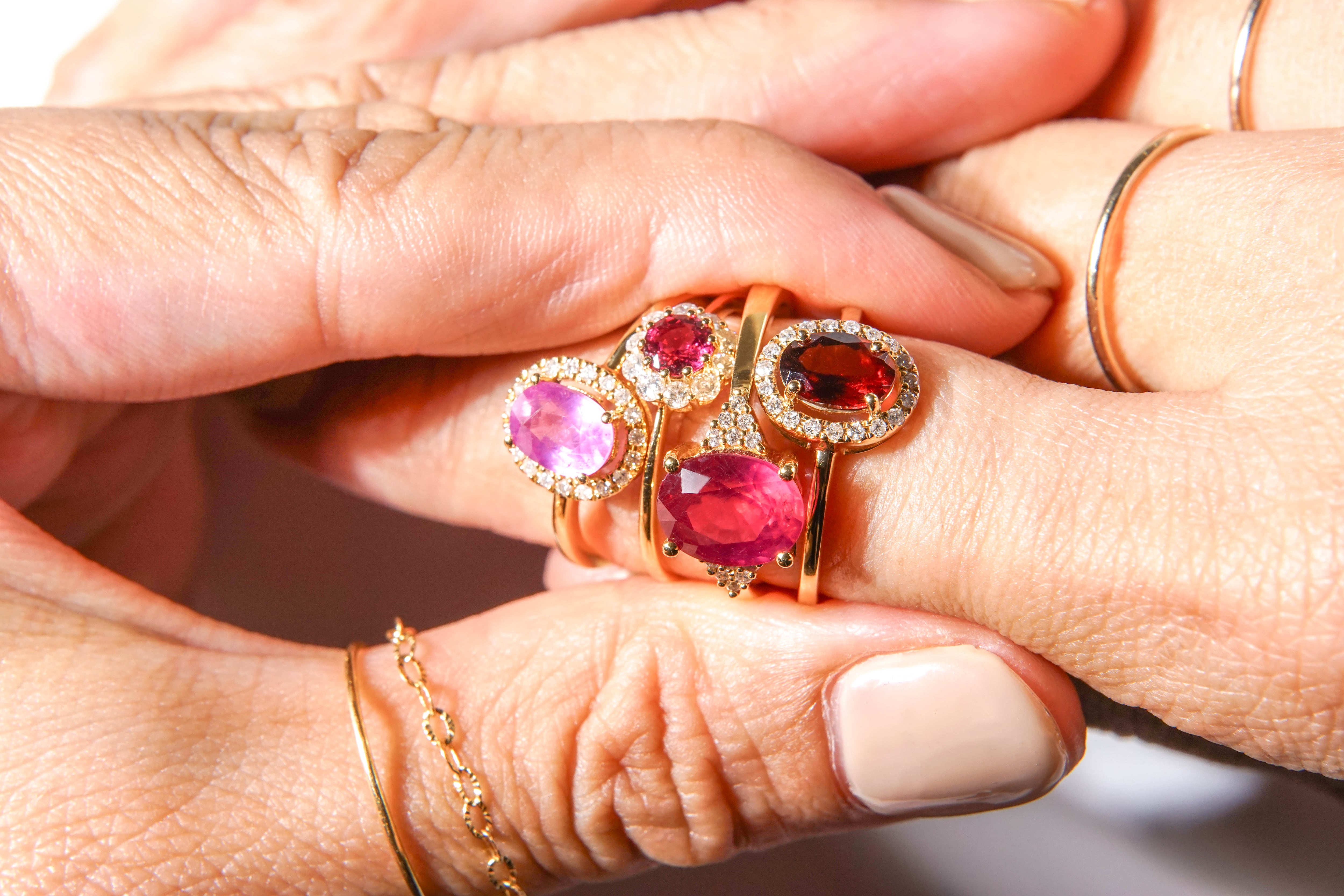 1点モノの厳選された天然石のピースを贅沢にダイヤモンドで取り囲んだ少しレトロで可愛らしいリングです。 美しいカットを最大限生かしたデザインになっております。 人差し指や中指に着けてアクセントに、薬指には可愛らしくおしゃれにお召頂けます。一生モノとしてトレンドに左右されず、長くお召いただけます。 【素材】 天然石:ガーネットxダイヤモンド K18 (18金) 【サイズ 】 12号 モチーフ:10x8.4mm ガーネット:1ct ダイヤモンド:0.1ct 【石言葉】 ガーネット:信頼と愛情の石 ※こちらのリングはサイズ変更可能(無料)の商品となります。 サイズ変更は商品サイズの±3号までになります。ご希望のサイズを購入時の「備考欄」にご記入ください。サイズ変更の場合は納期は約1ヶ月半~いただきますので、ご了承ください。 ※ご購入の前に【GUIDE】を必ずご一読お願いいたします。