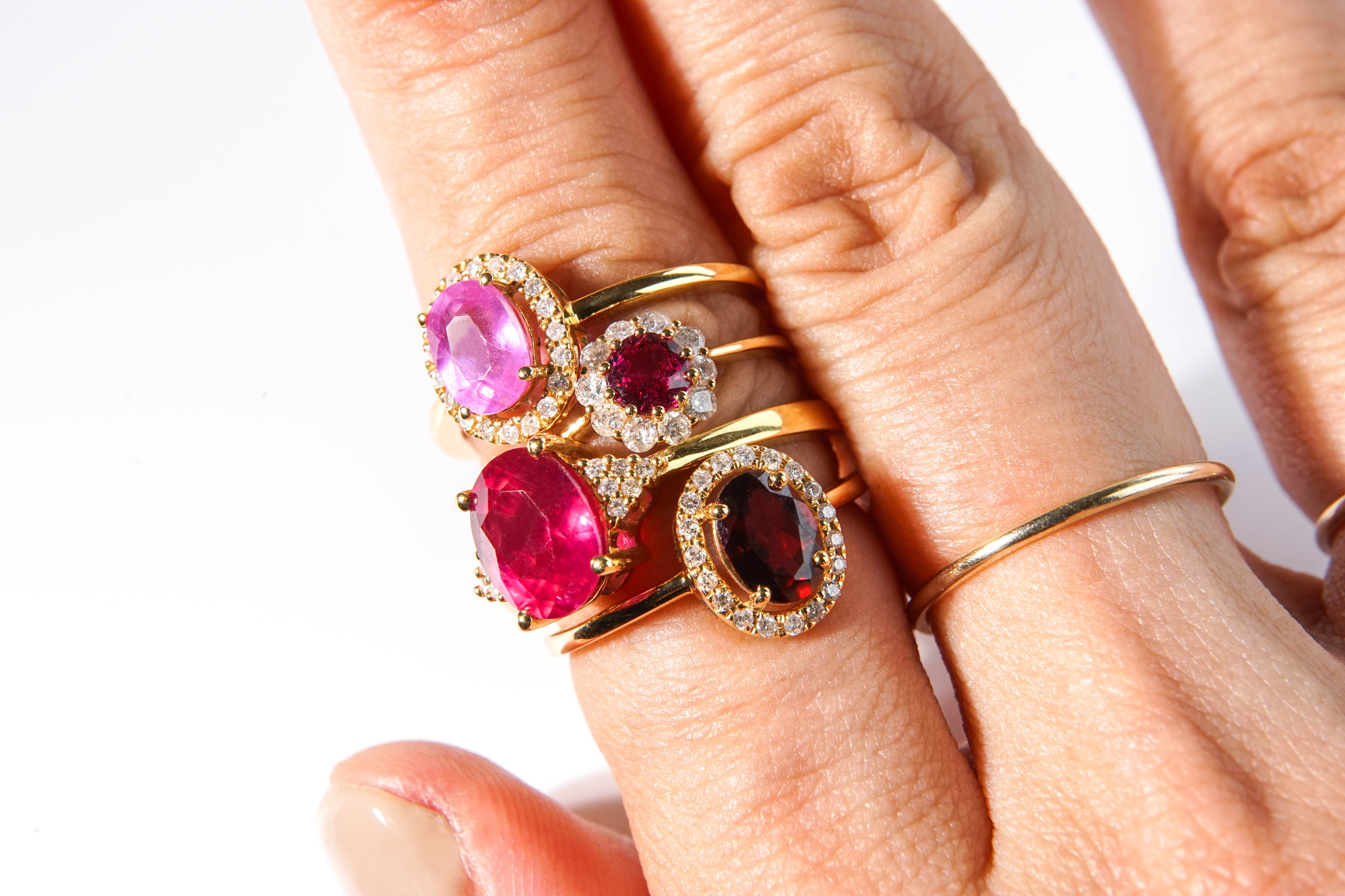 1点モノの厳選された天然石のピースを贅沢にダイヤモンドで取り囲んだ少しレトロで可愛らしいリングです。 美しいカットを最大限生かしたデザインになっております。 人差し指や中指に着けてアクセントに、薬指には可愛らしくおしゃれにお召頂けます。一生モノとしてトレンドに左右されず、長くお召いただけます。 【素材】 天然石:ルビーxダイヤモンド K18 (18金) 【サイズ 】 14号 モチーフ(ルビー):8.5x7.5mm ルビー:2.6ct ダイヤモンド:0.06ct 【石言葉】 ルビー:勝利と情熱を象徴する石 ※こちらのリングはサイズ変更可能(無料)の商品となります。 サイズ変更は商品サイズの±3号までになります。ご希望のサイズを購入時の「備考欄」にご記入ください。サイズ変更の場合は納期は約1ヶ月半~いただきますので、ご了承ください。 ※ご購入の前に【GUIDE】を必ずご一読お願いいたします。