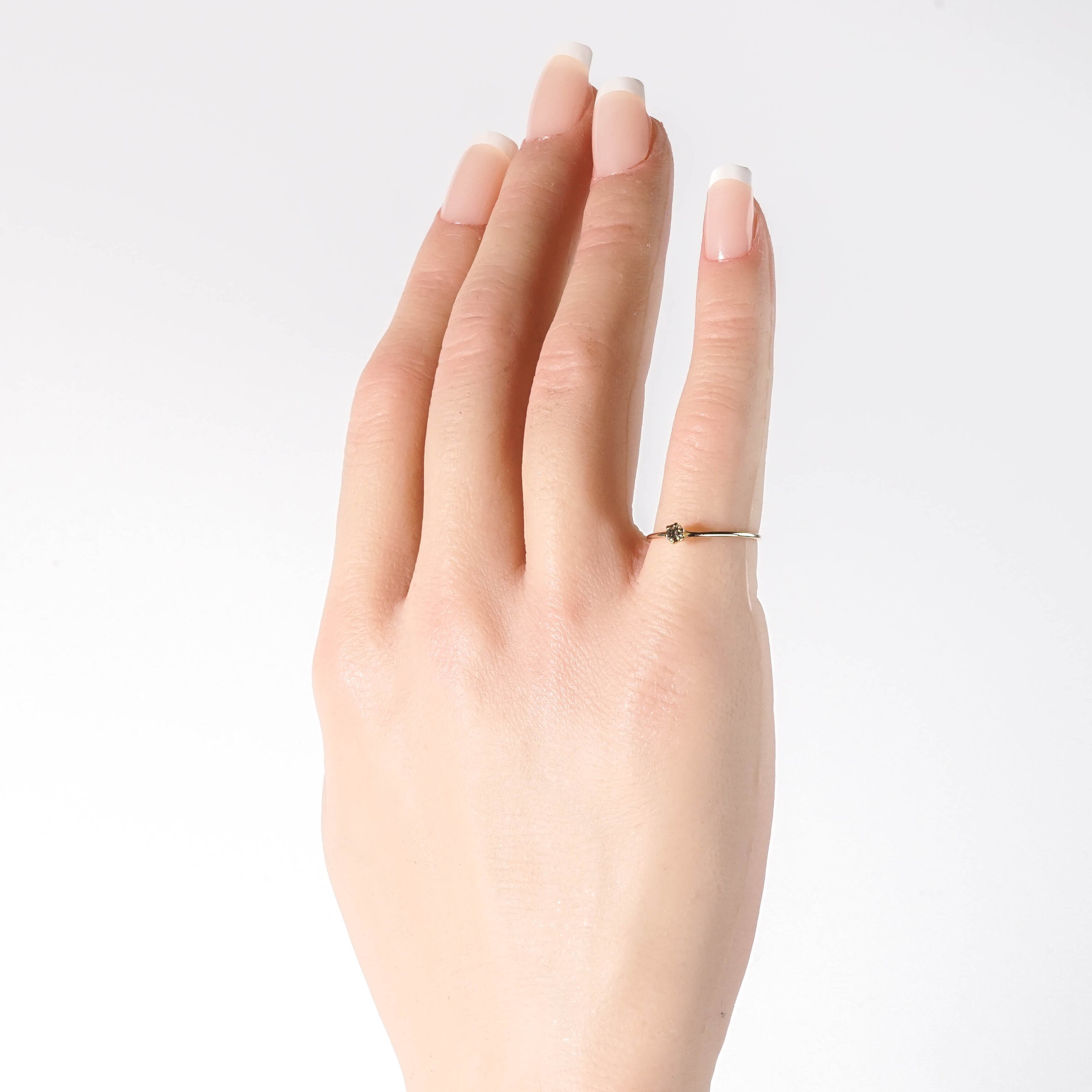 【Essence Premium(エッセンス プレミアム)】 「Essence Collection」の中でも、さらに上質な輝きを求める方へ。 K18を用いたプレミアムラインは、日常に寄り添いながらも、永く愛される本物の輝きをお届けします。 「ブラウンダイヤモンド リング」―深みのある色合いが魅力のブラウンダイヤモンド。 落ち着いた輝きがK18ゴールドと調和し、日常に溶け込みながらも特別感を漂わせます。 本質=Essence に忠実でありながら、素材や石が放つ格別の深み。シンプルなアームに小さなダイヤが浮かぶデザインは、日常に溶け込みながらも確かな存在感を放ちます。 ブラウンダイヤ特有のニュアンスカラーは、ゴールドの色味と調和し、大人の女性にふさわしいシックな輝きを演出します。 【素材】 ブラウンダイヤモンド K18(18金) 【サイズ 】 9号 モチーフ:3.2mm ※ご購入の前に【GUIDE】を必ずご一読お願いいたします。