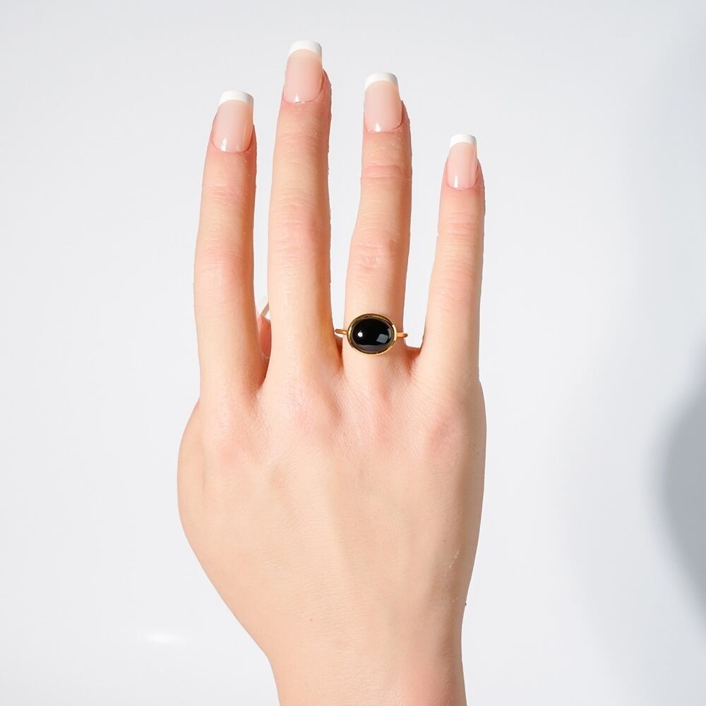 【素材】 ヴェルメイユ(SV925+18金マイクロコーティング) 天然石:ブラックオニキス 【サイズ 】 9号 モチーフ:13.4x11.4mm 【石言葉】 厄除けの石 ※ご購入の前に【GUIDE】を必ずご一読お願いいたします。
