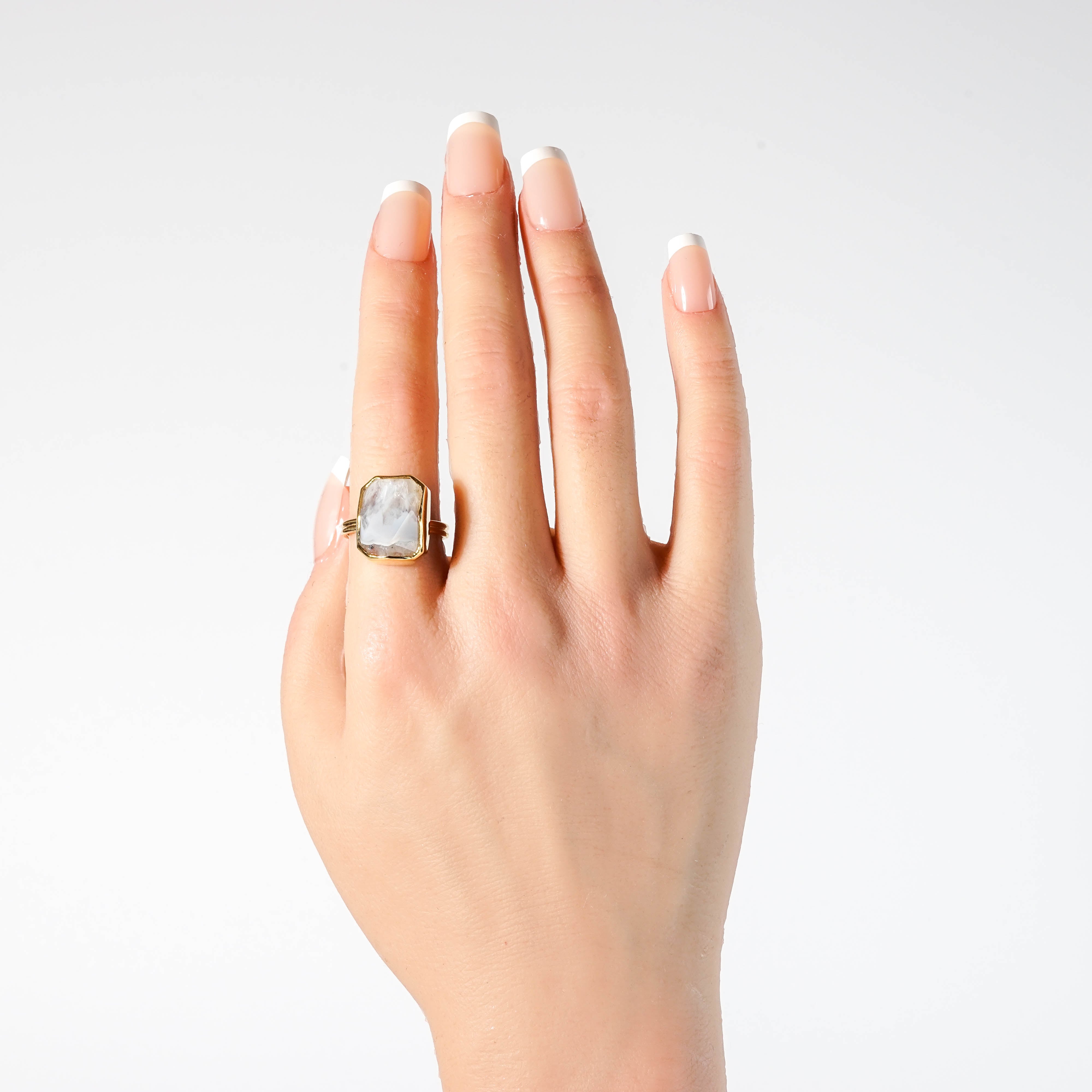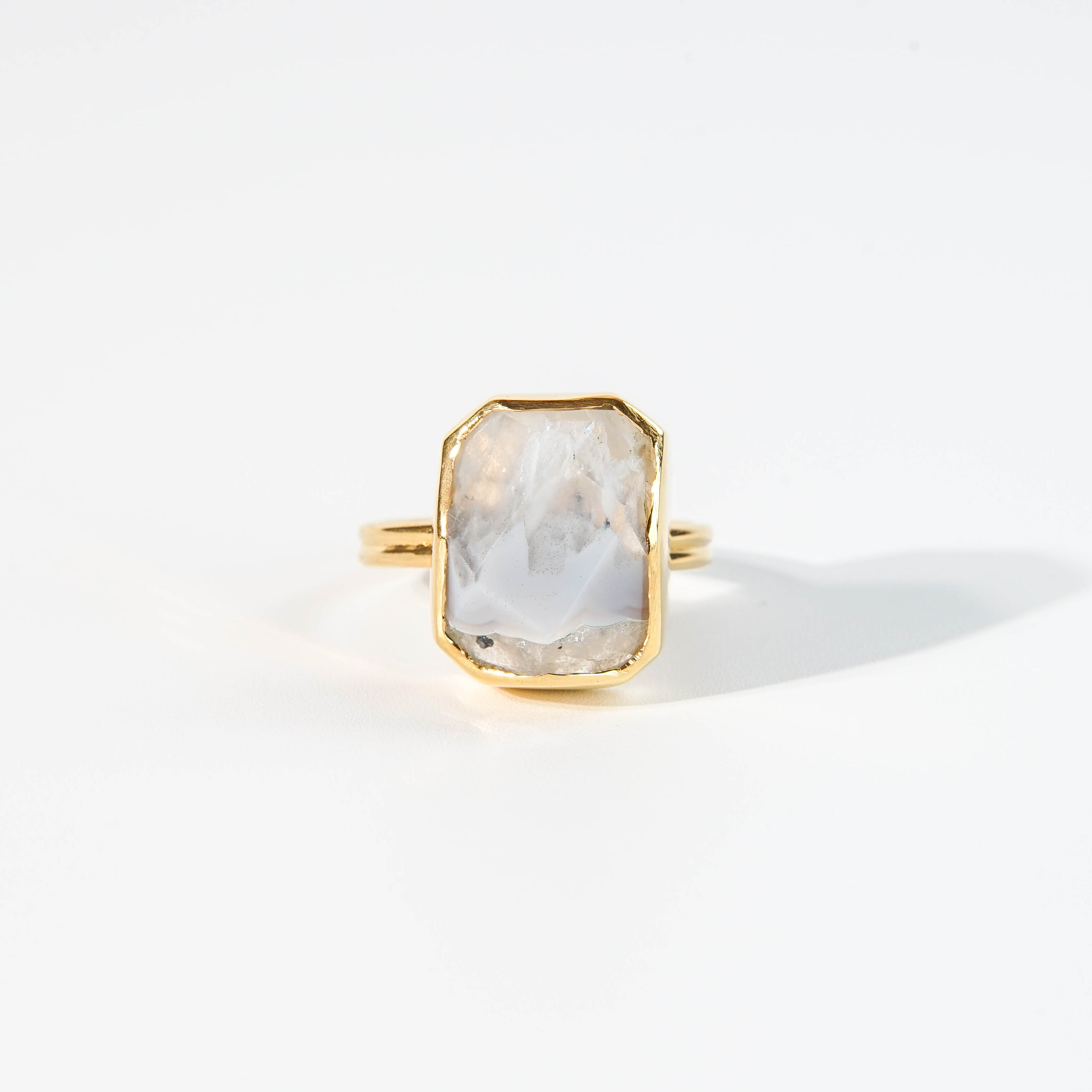 乳白の部分と半透明の部分の合わさった模様が地層のような、自然を感じる多様な表情を見せてくれる天然石ピースです。オシャレなシルエットで、どんなコーディネートにも合わせやスリリングです。 【素材】 天然石:アゲート ヴェルメイユ(SV925+18金マイクロコーティング) 【サイズ 】 フリーサイズ (推奨 10~15号) モチーフ:16.2x13.1mm 【石言葉】 魔除の石 ※ご購入の前に【GUIDE】を必ずご一読お願いいたします。 ※リングの推奨サイズ (推奨 10~15号)以外の号数をご希望の場合は、購入前にお問い合わせください。